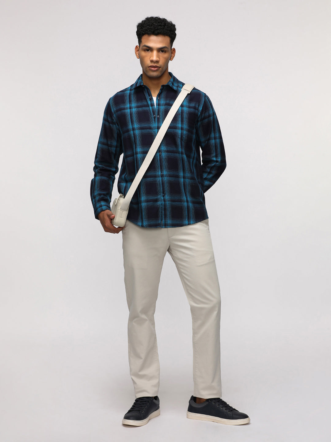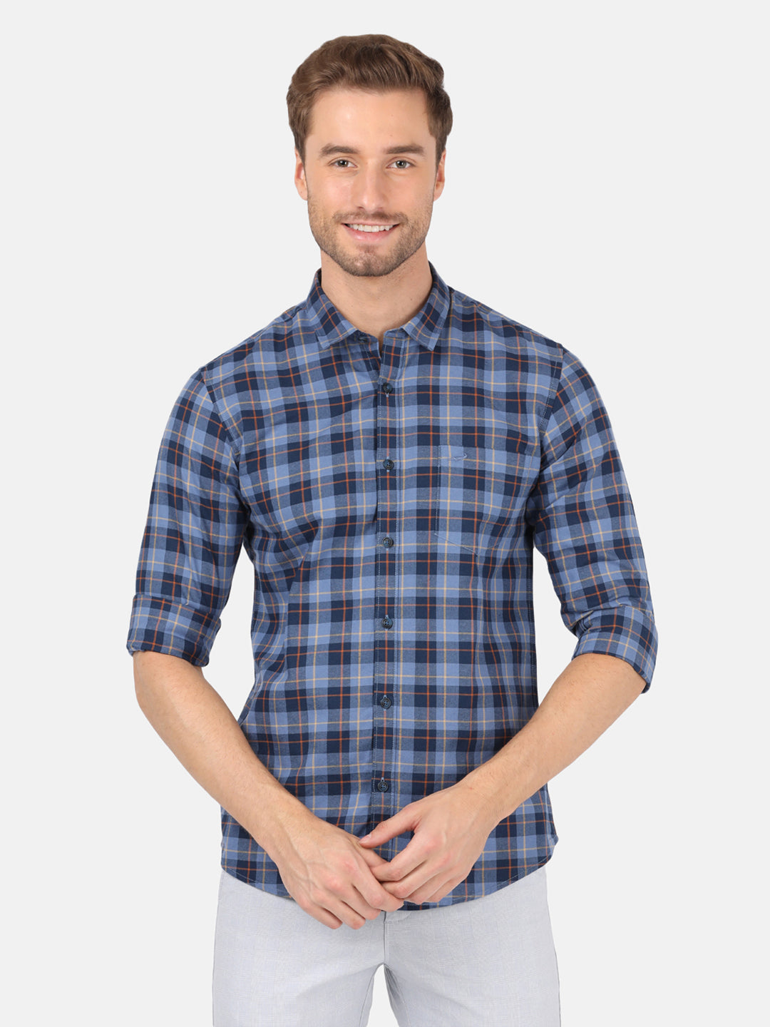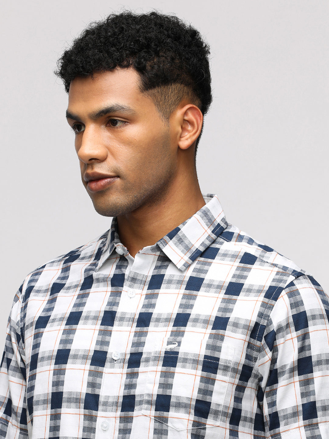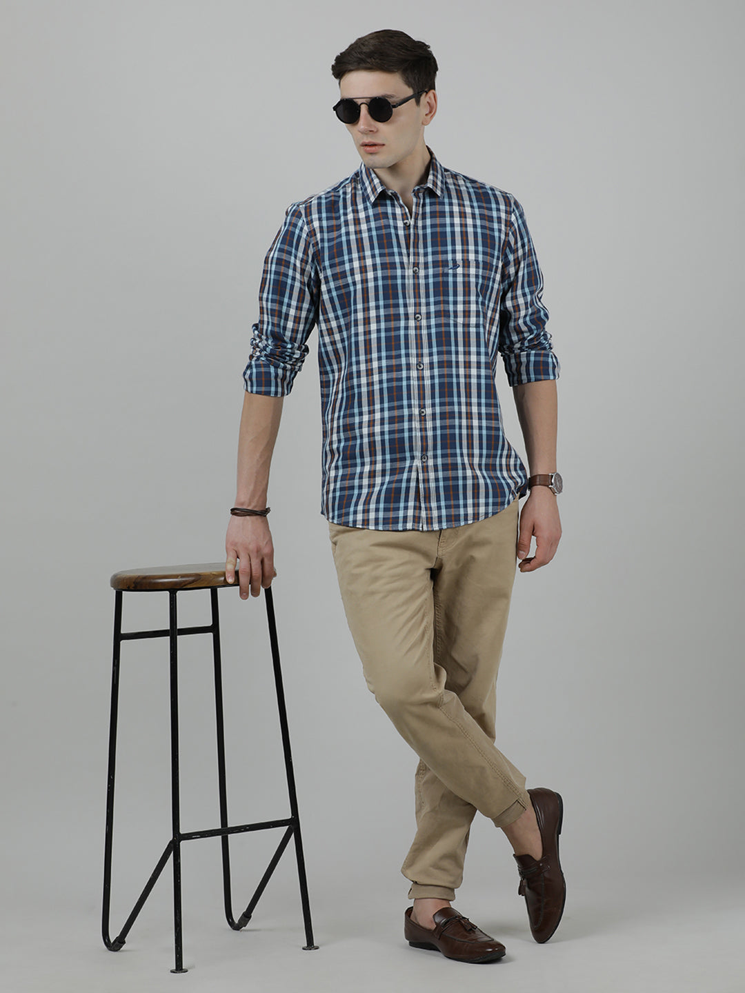 Checked Navy Full Sleeve Casual 100% Cotton Shirt