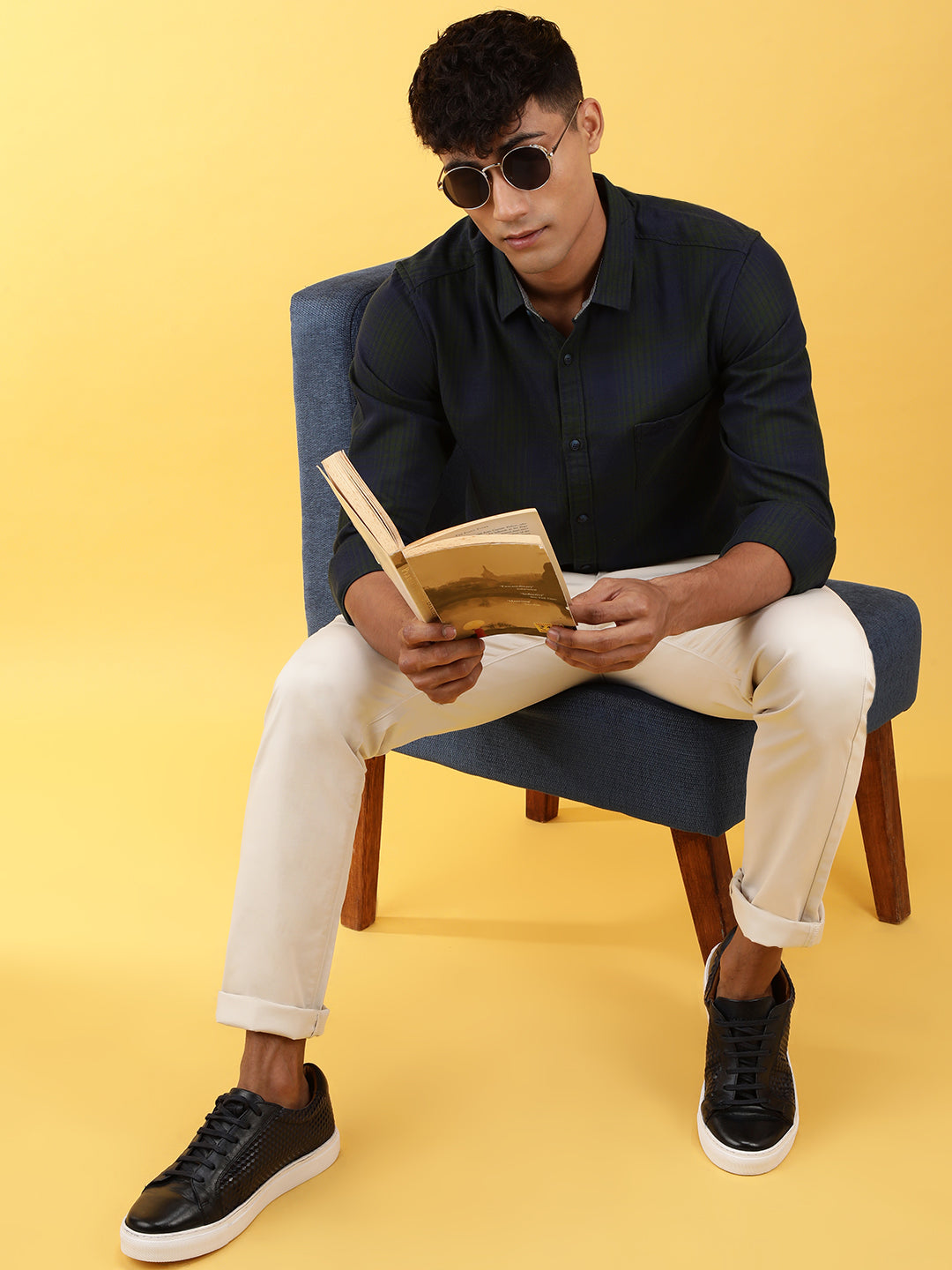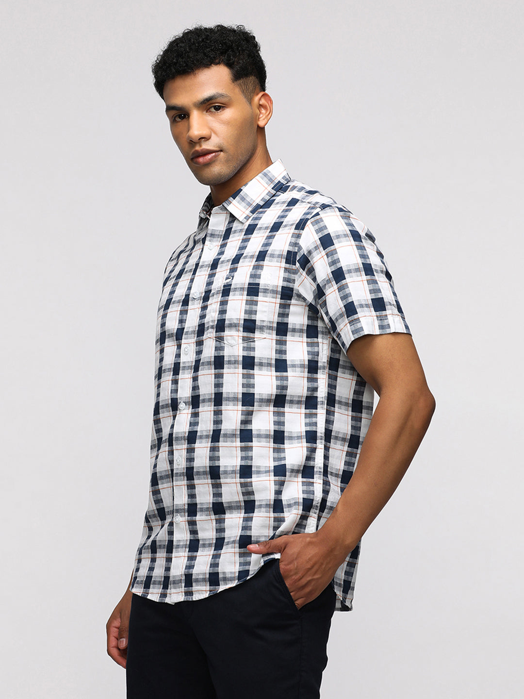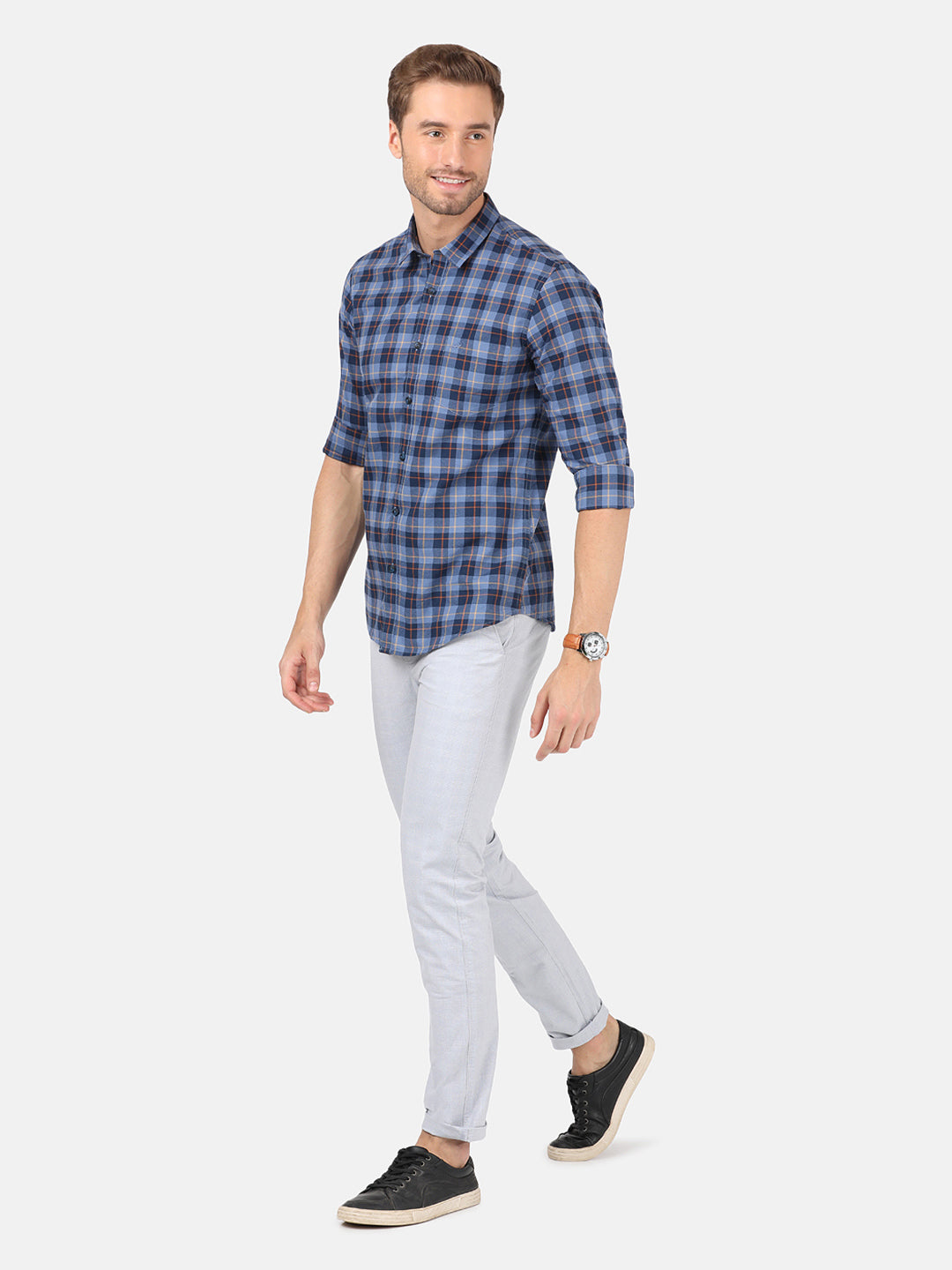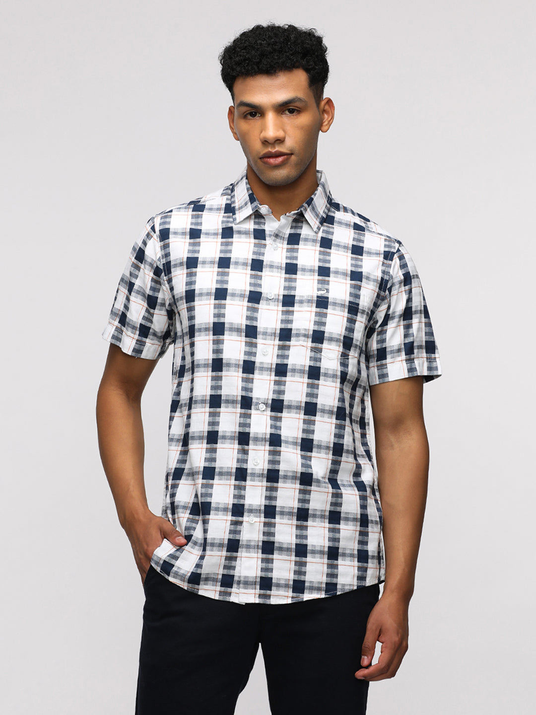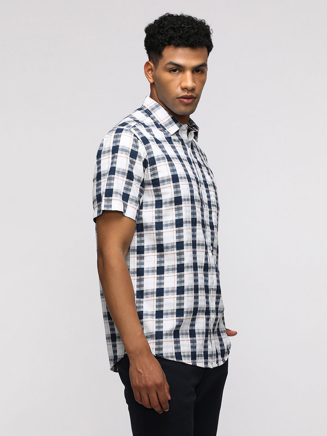 Checked Navy Full Sleeve Casual 100% Cotton Shirt