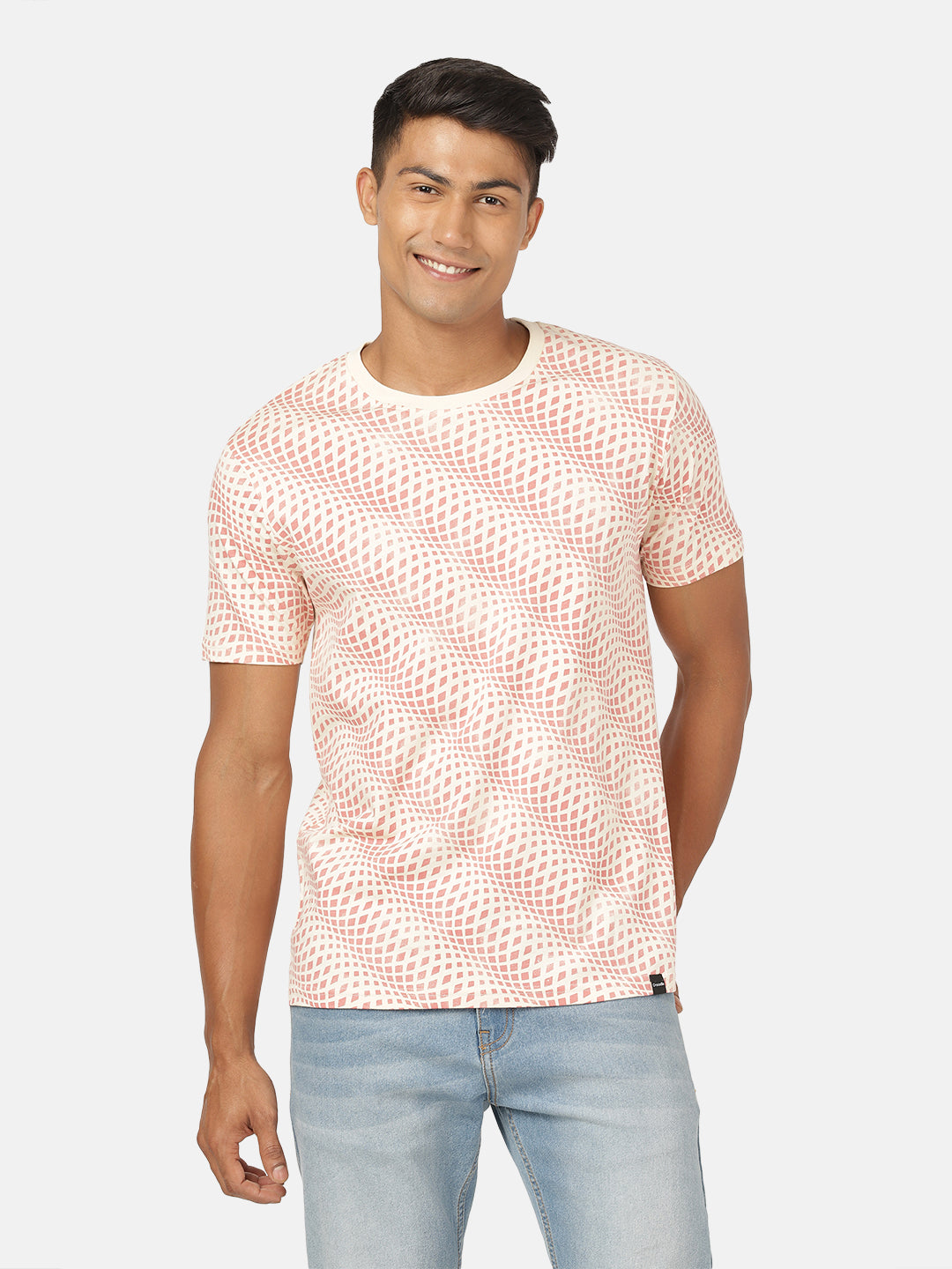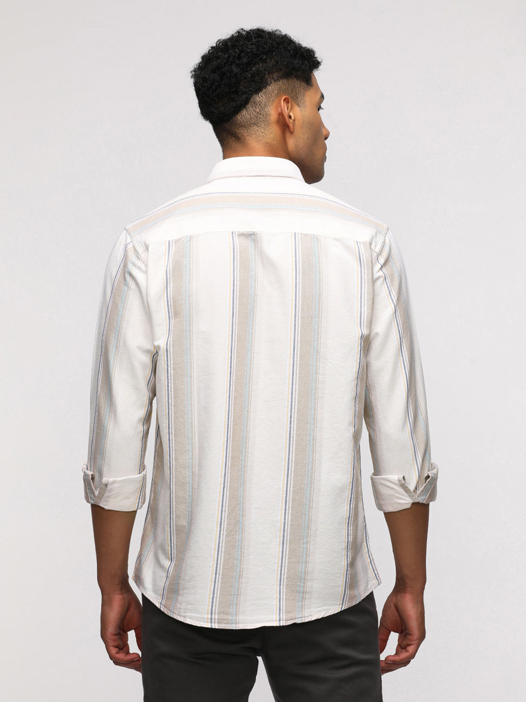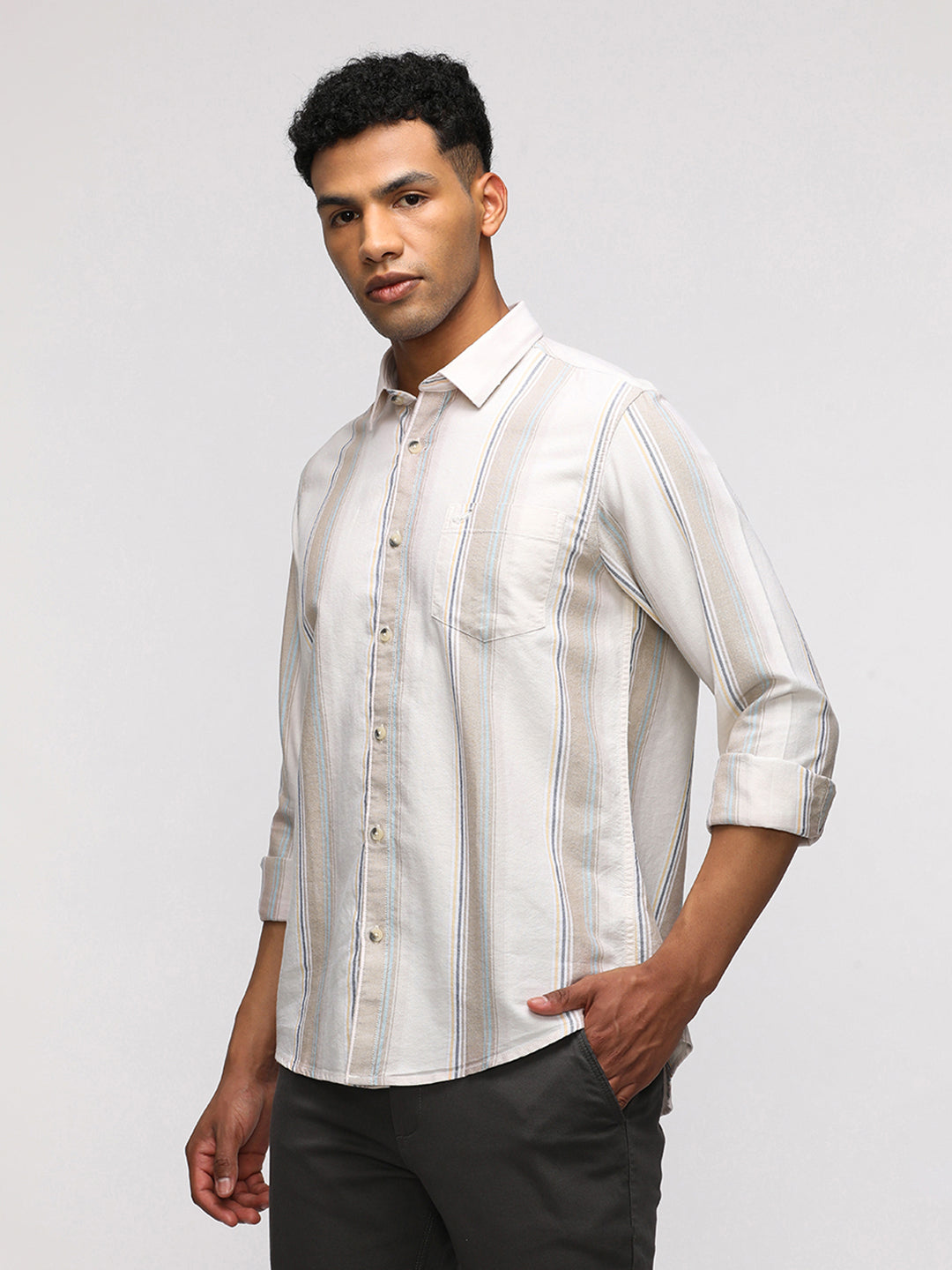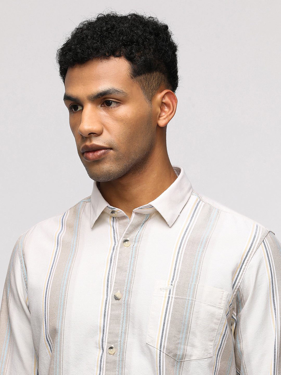 Cream Abstract Print Nylon Textured Fabric Relax Fit Relaxed Fit Shirts