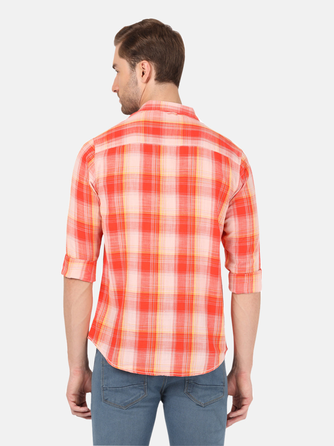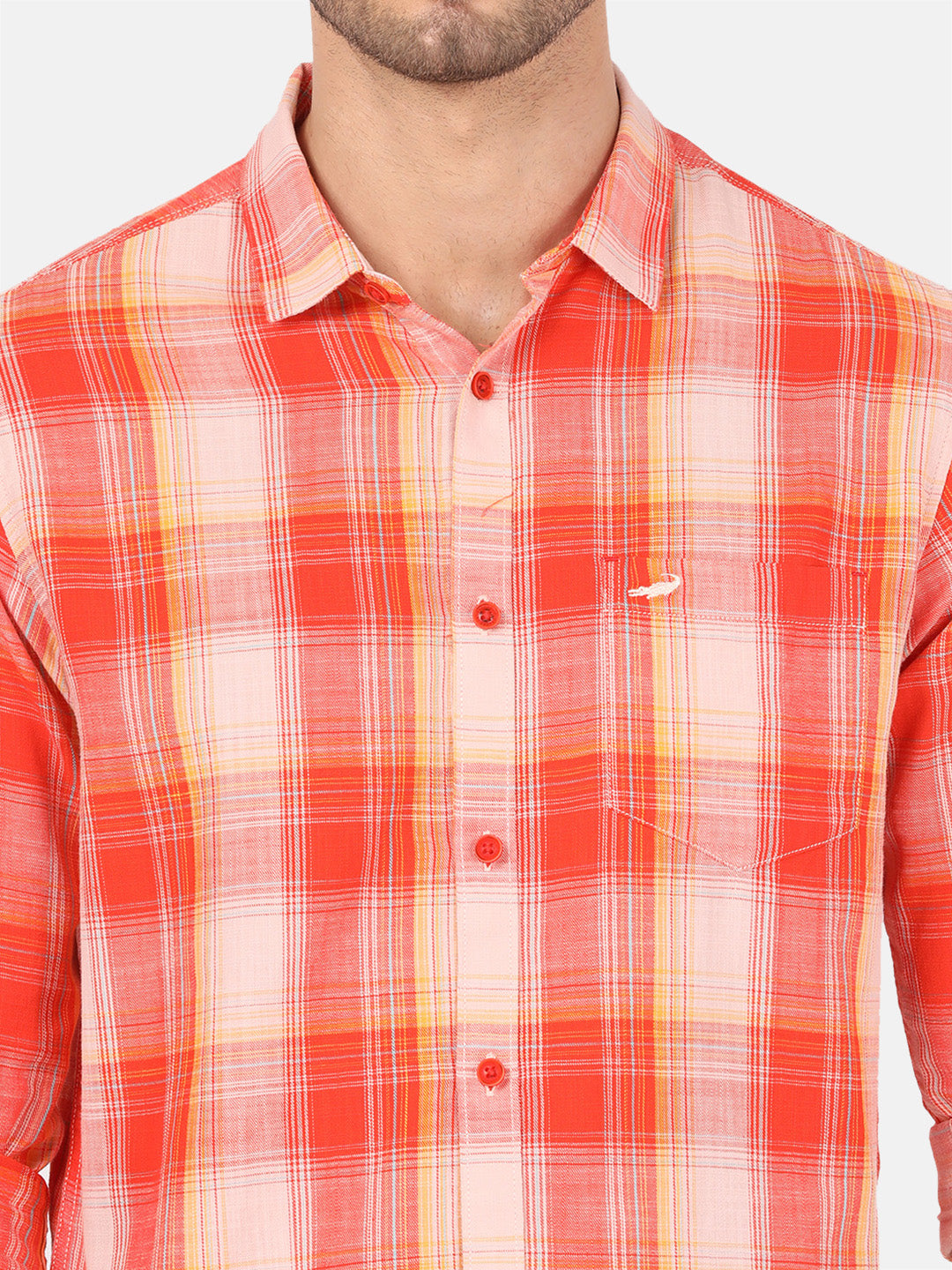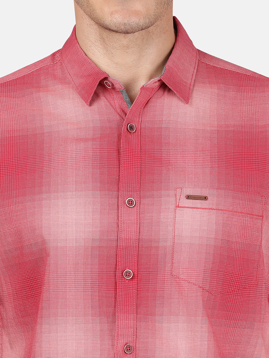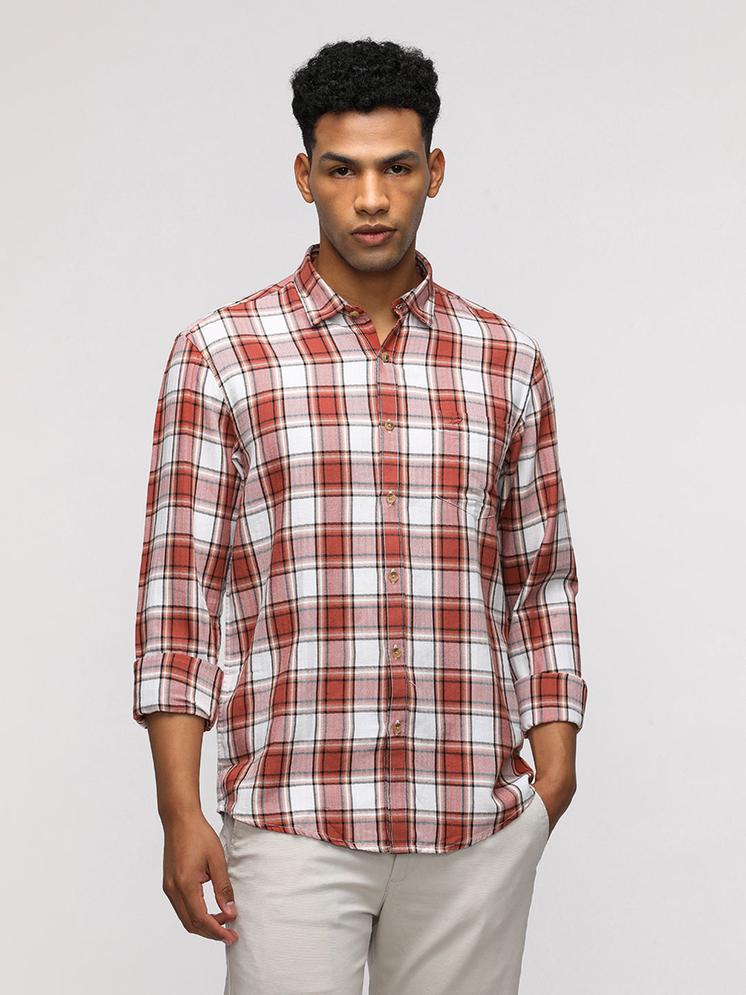 Checked Red Full Sleeve 100% Cotton Casual Shirt