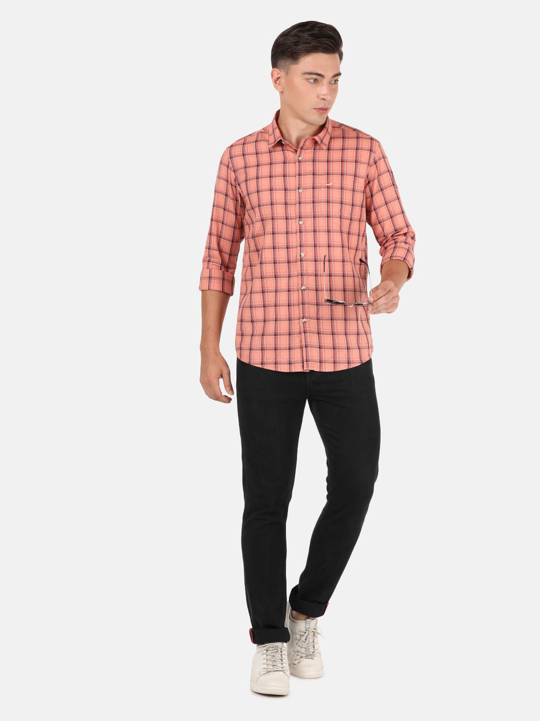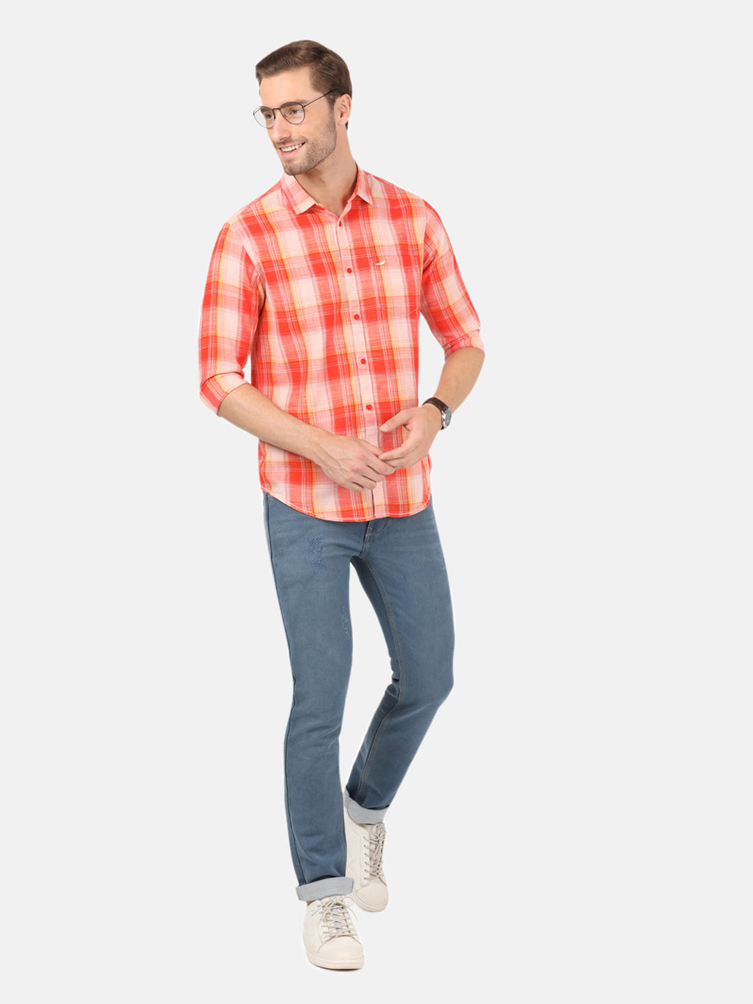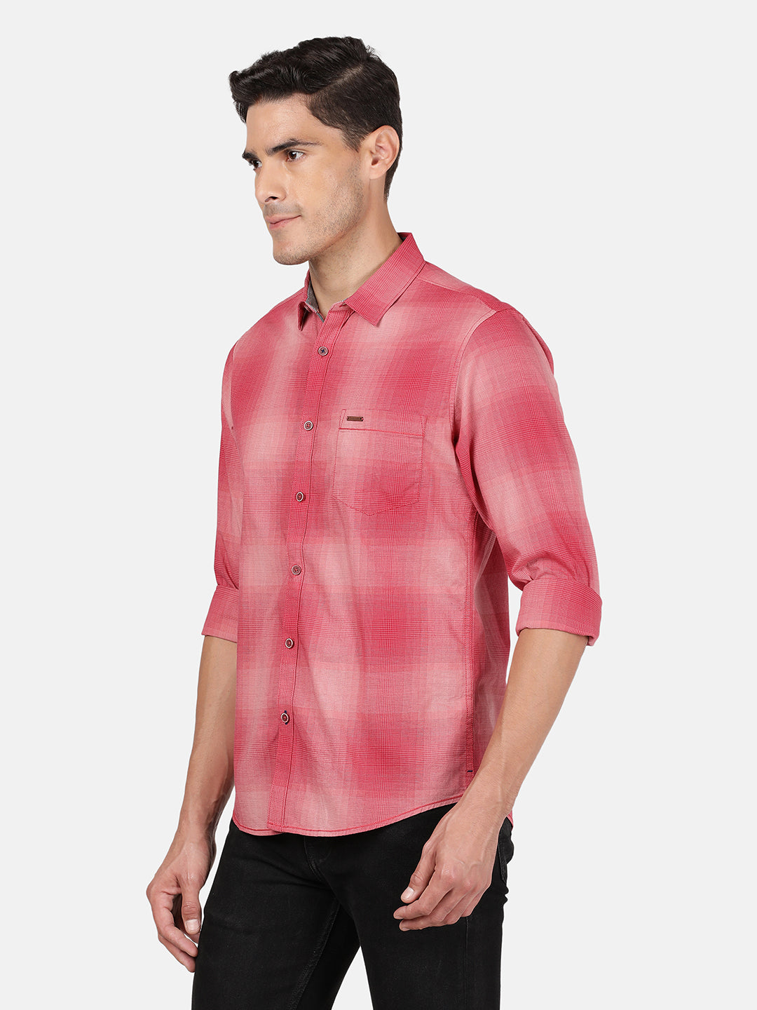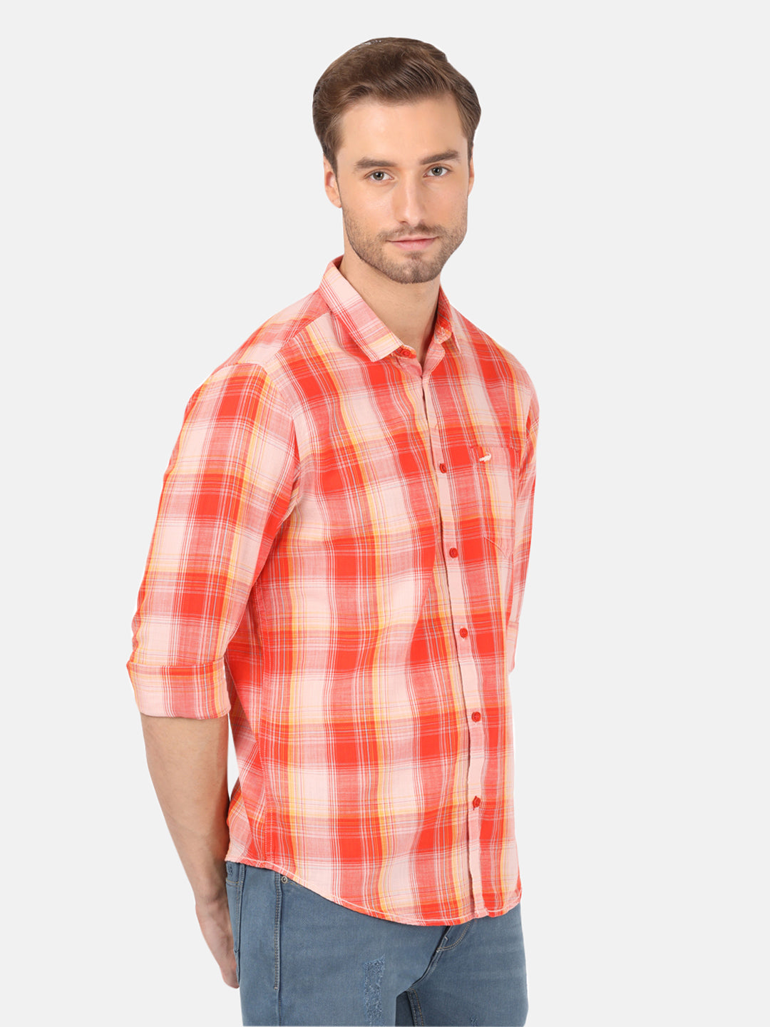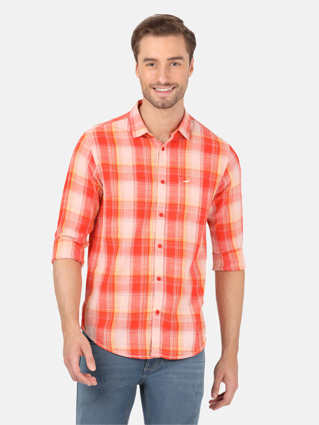Checked Red Full Sleeve 100% Cotton Casual Shirt