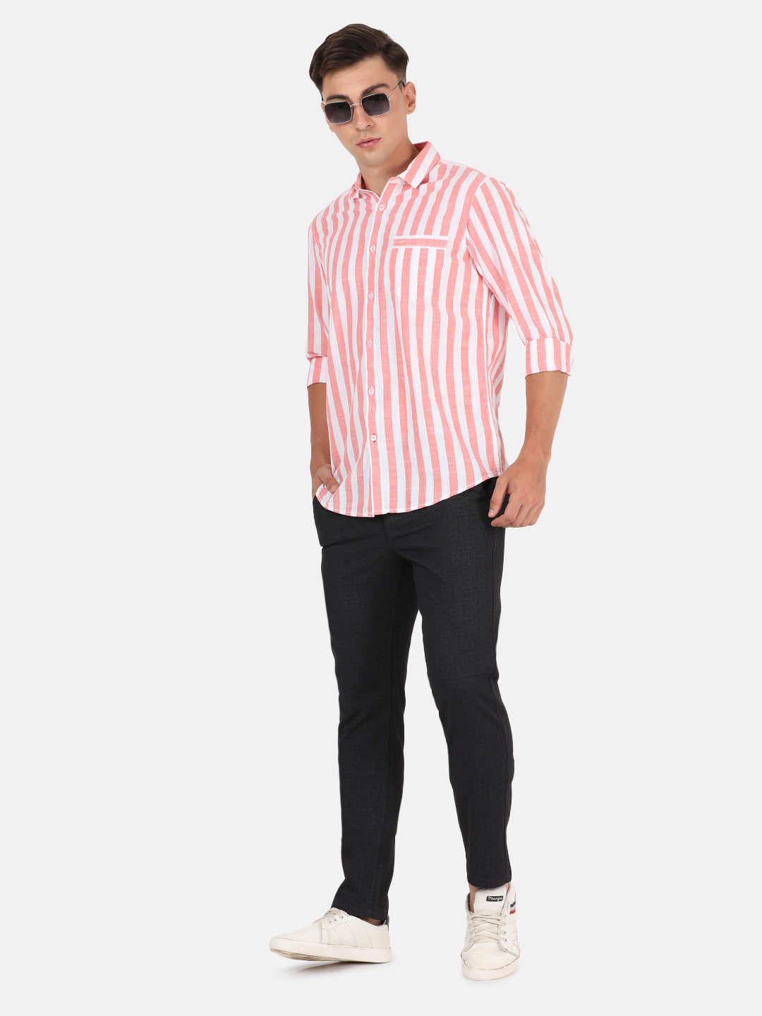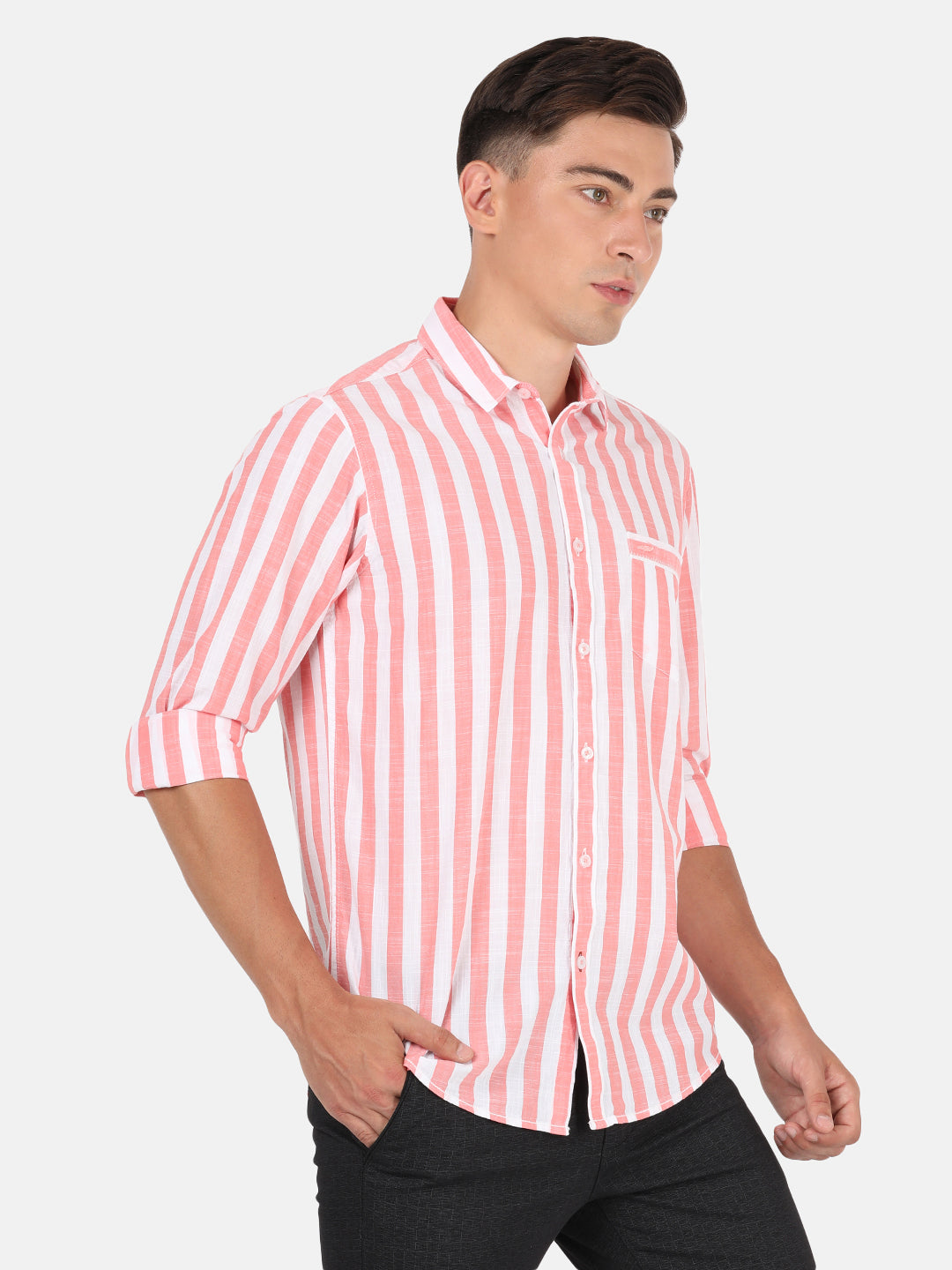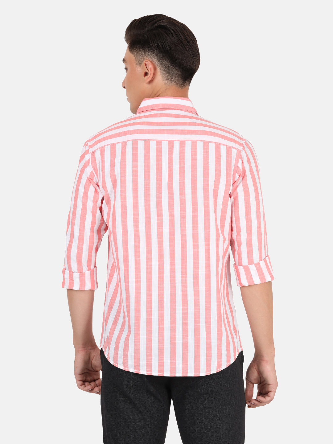 Coral Red Striped Full Sleeve 100% Cotton Shirt