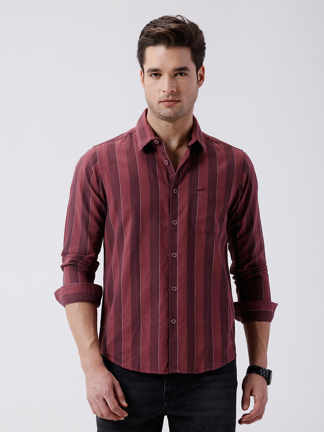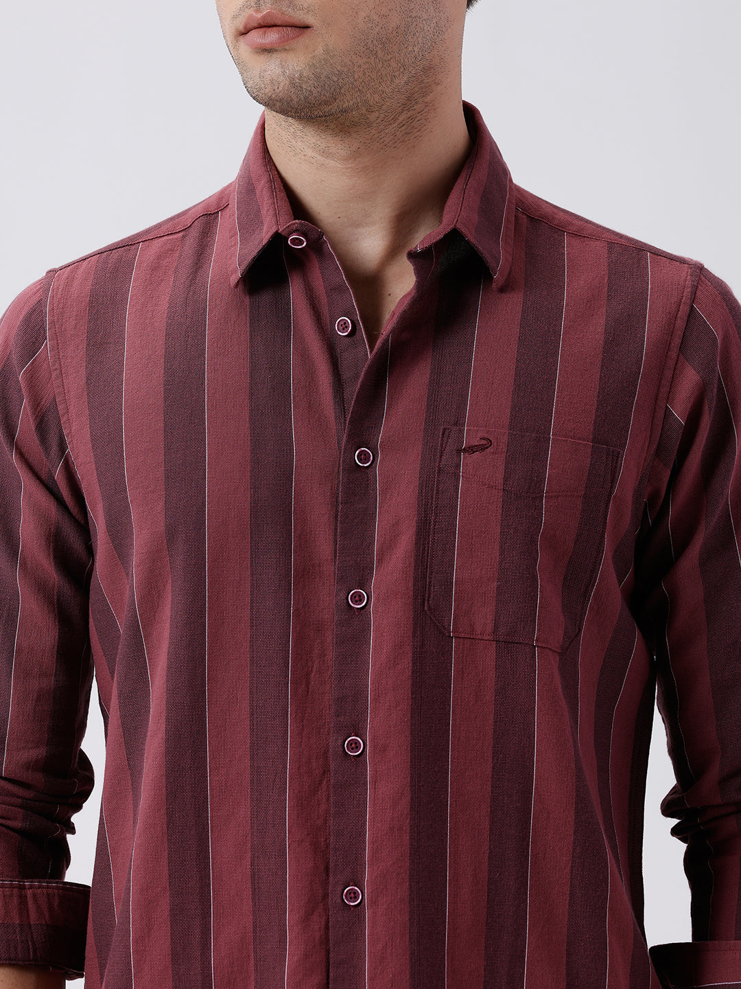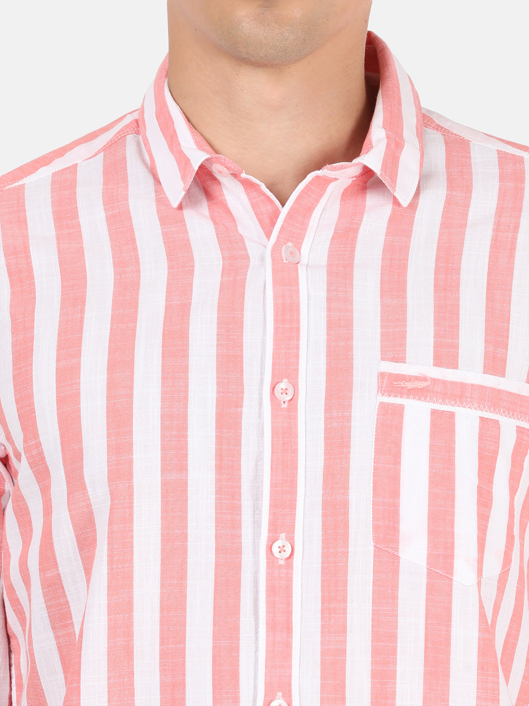 Coral Red Striped Full Sleeve 100% Cotton Shirt
