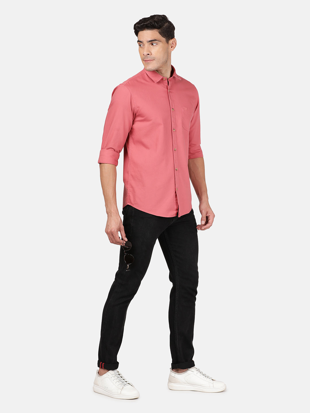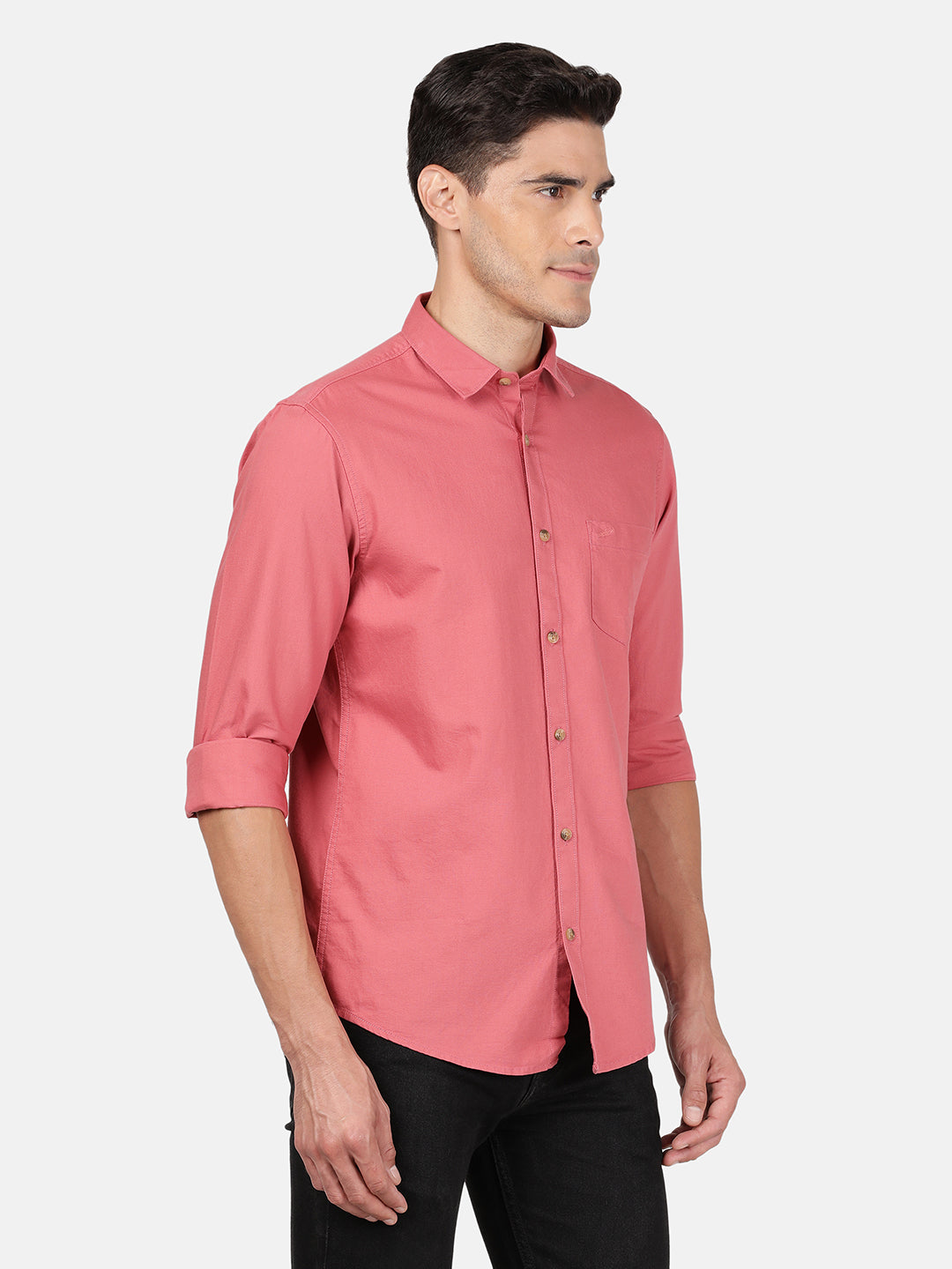 Coral Red Solid Full Sleeve 100% Cotton Shirt