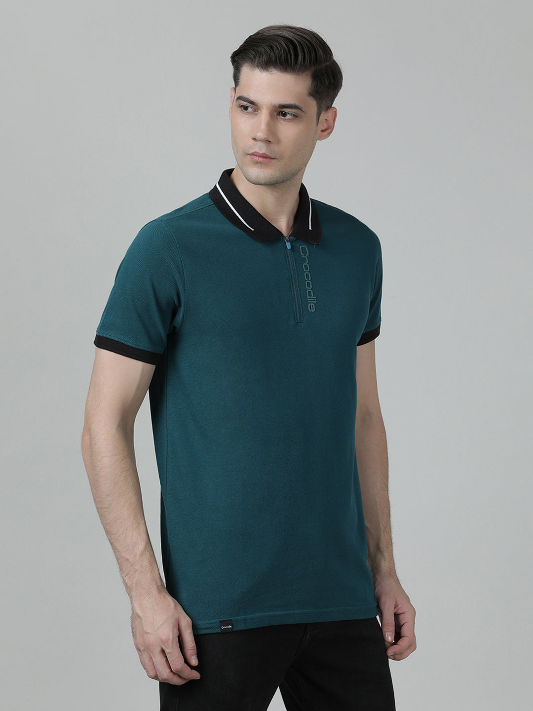 Classic Green T-Shirt with Slim Fit And Collared Design
