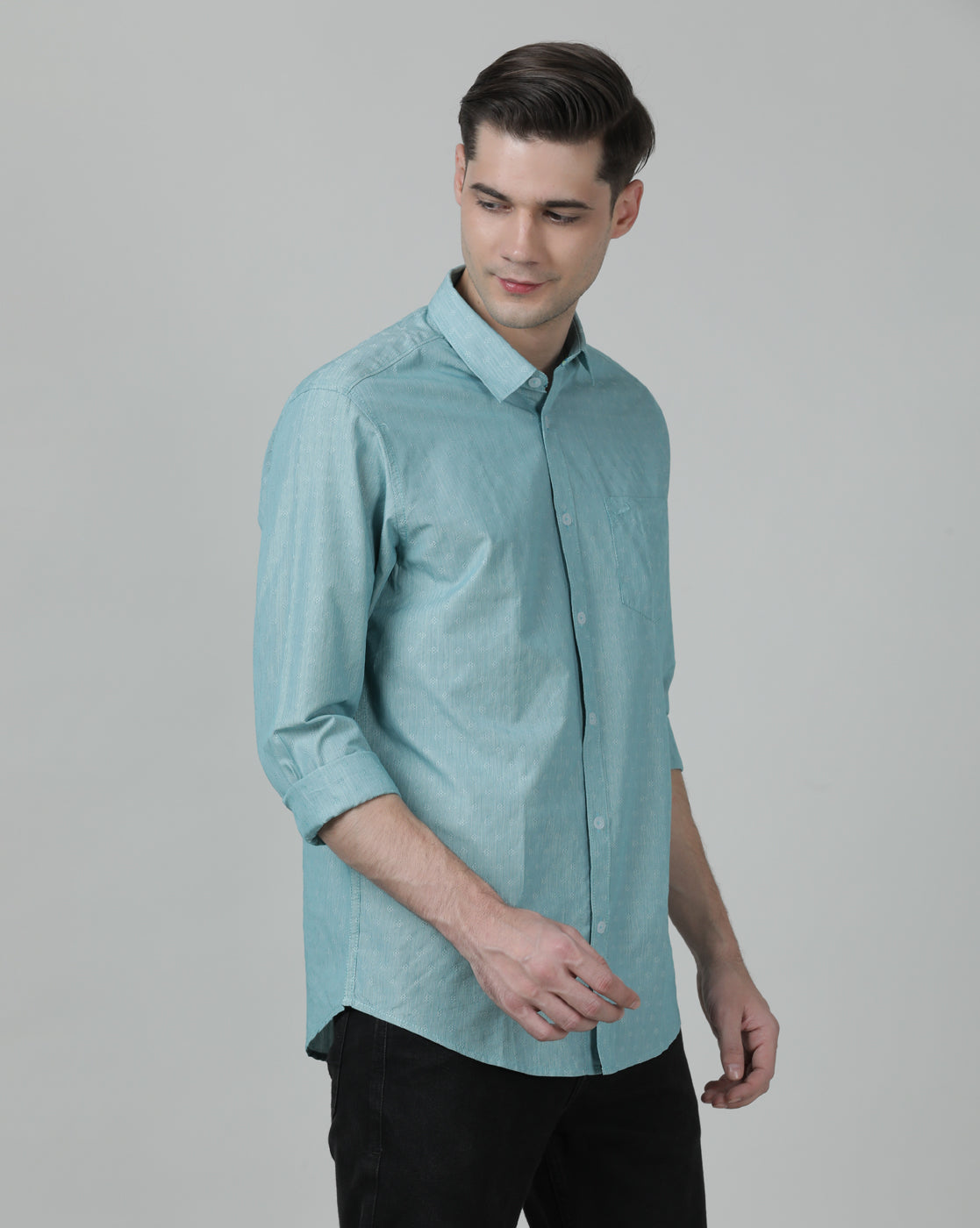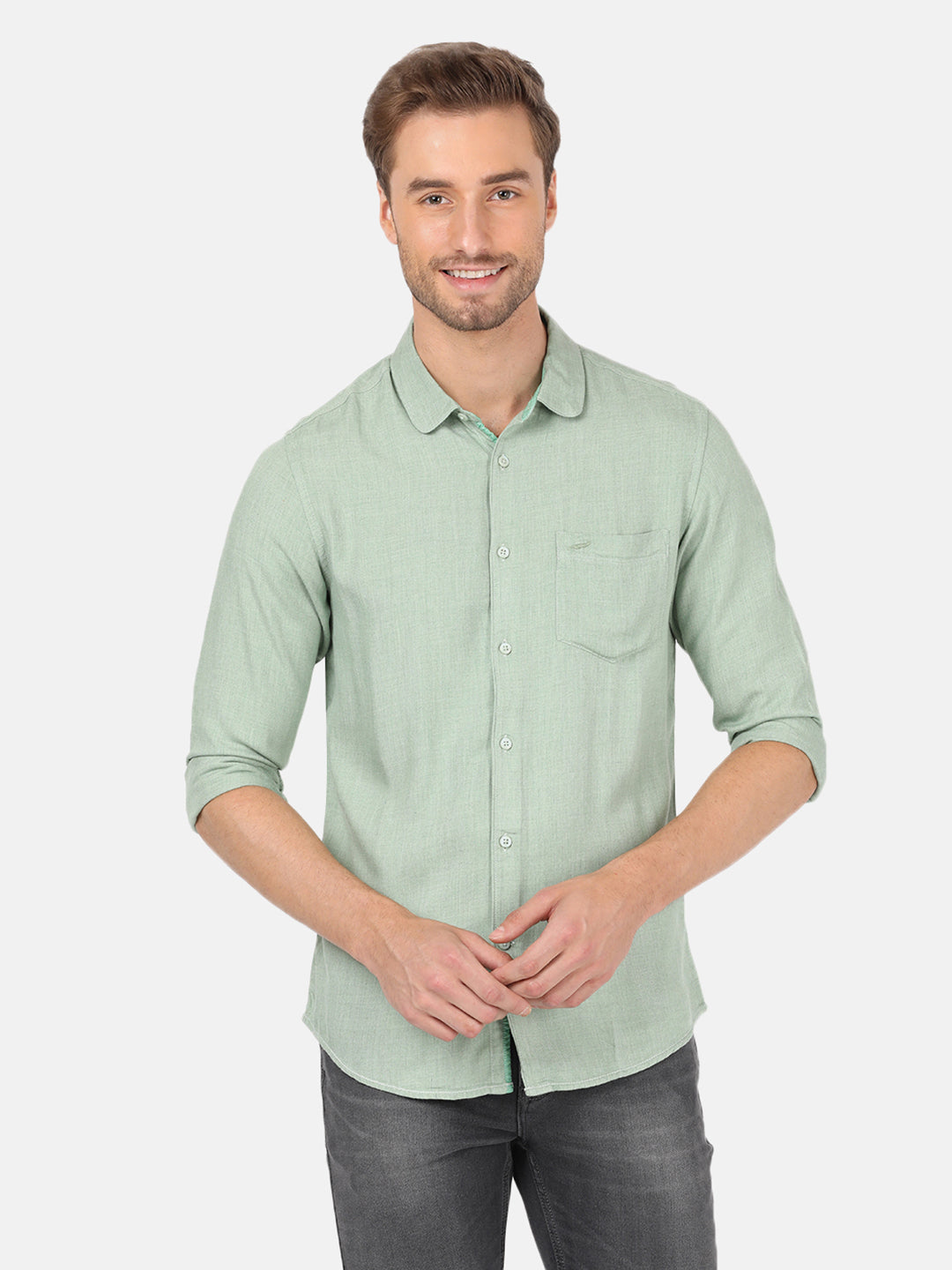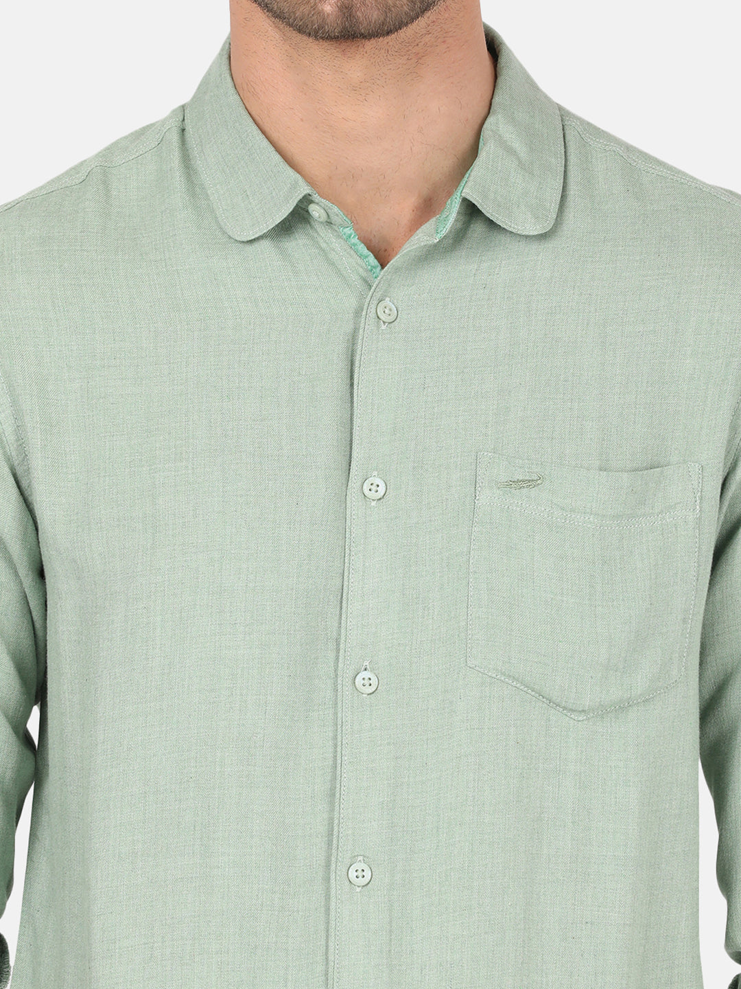 Green Variegated Textured Chisel Shape Pocket Comfort Fit Shirts
