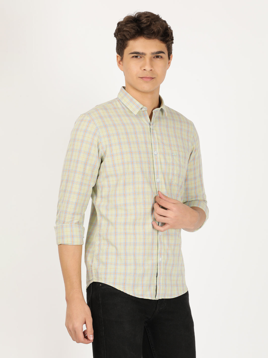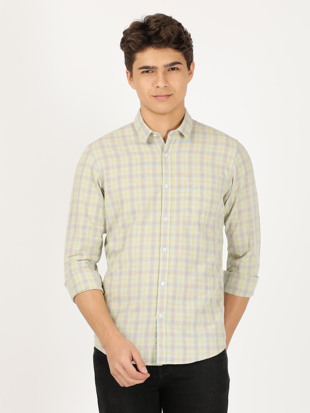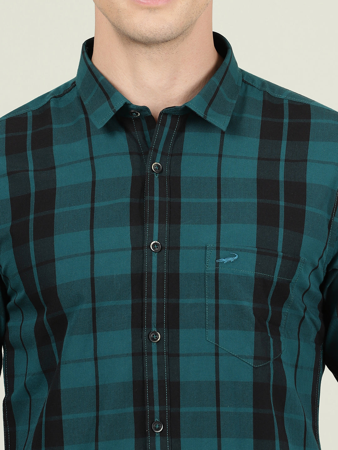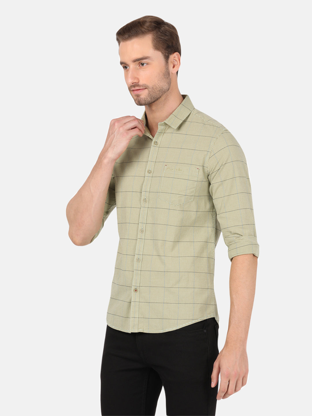Green Variegated Textured Chisel Shape Pocket Comfort Fit Shirts