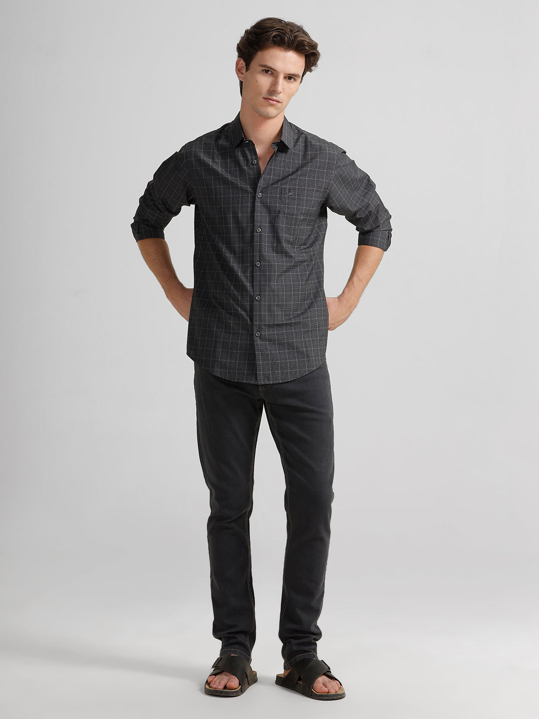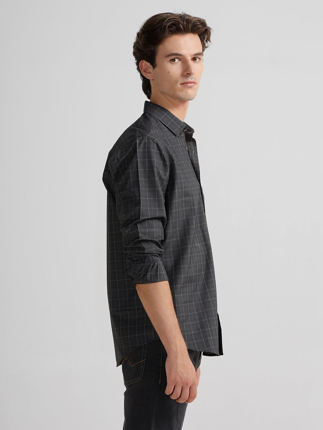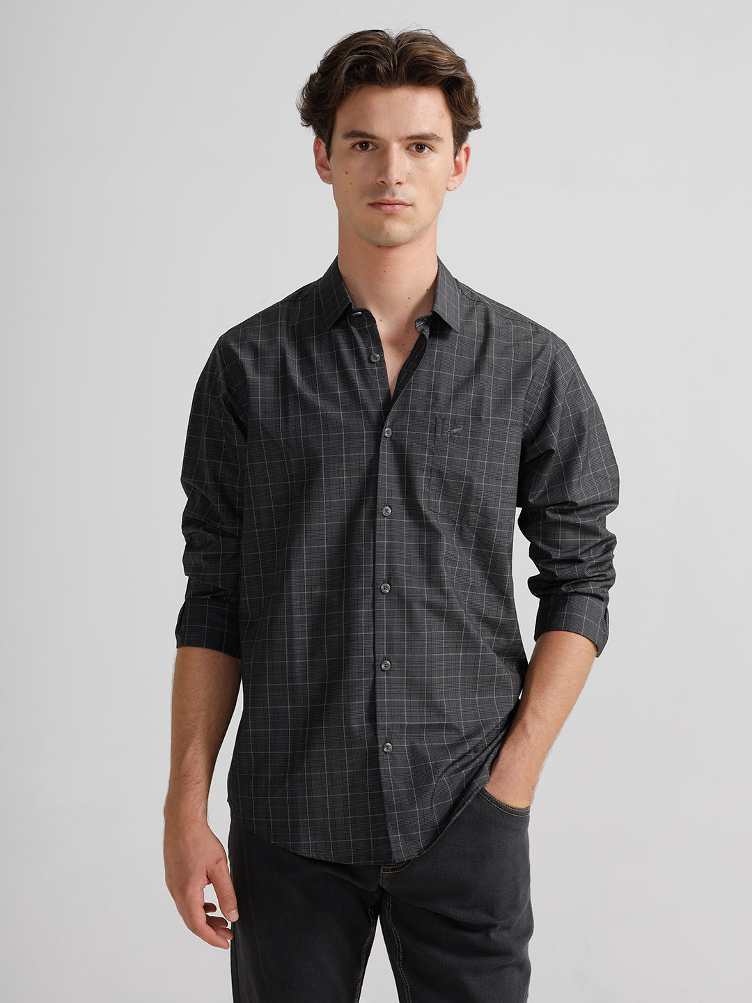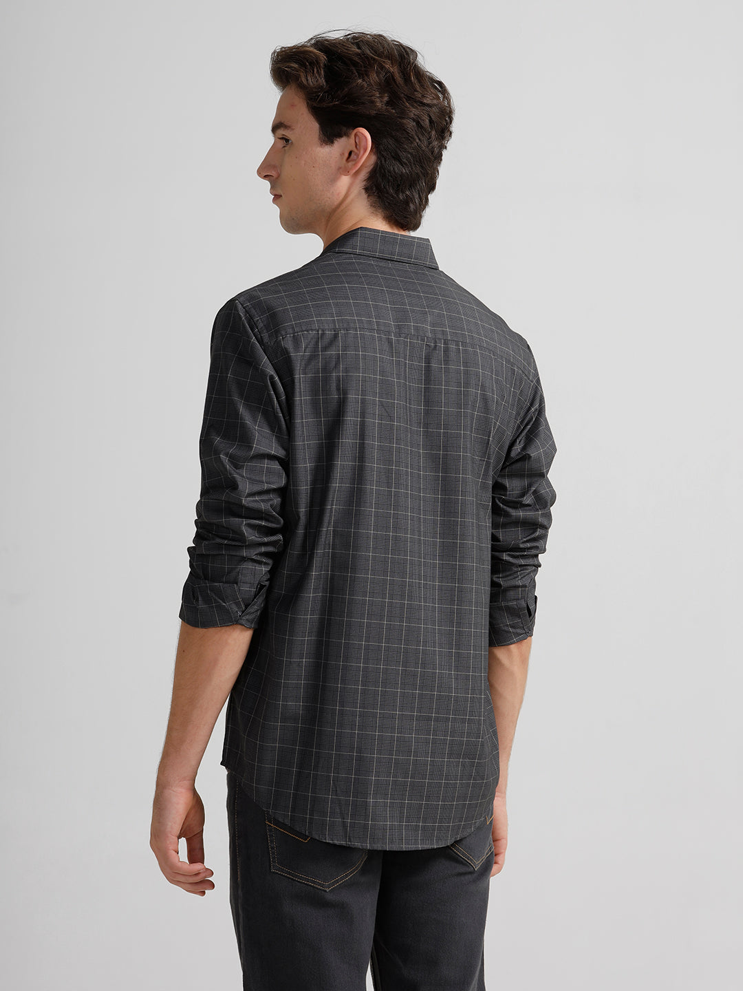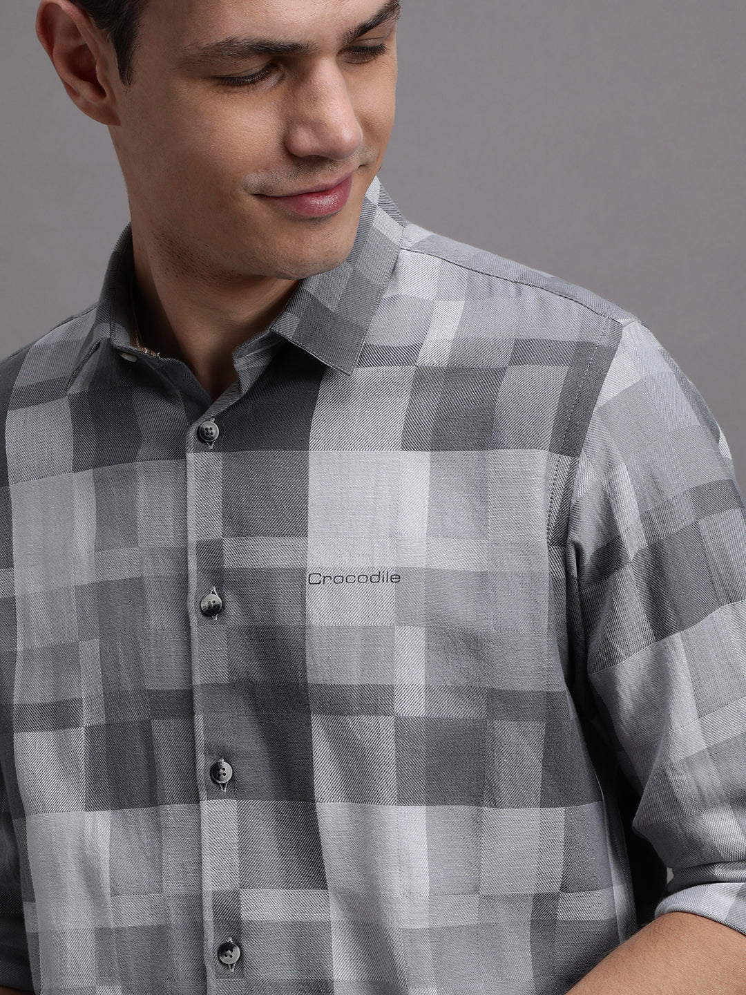 Grey Monochrome Checks Polished Attire Comfort Fit Shirts
