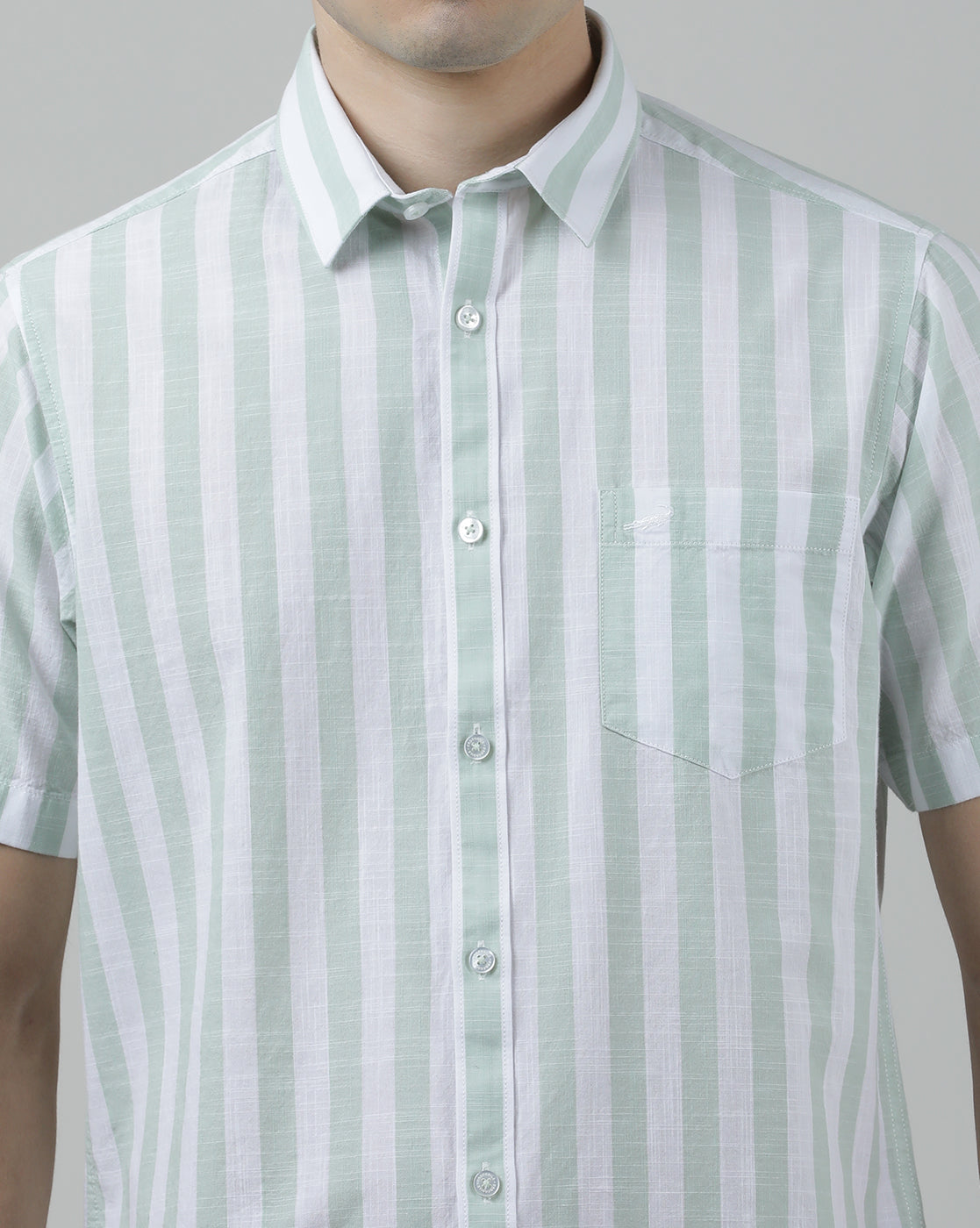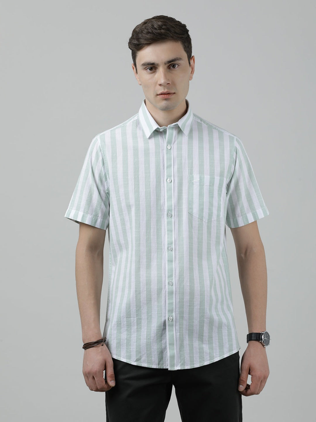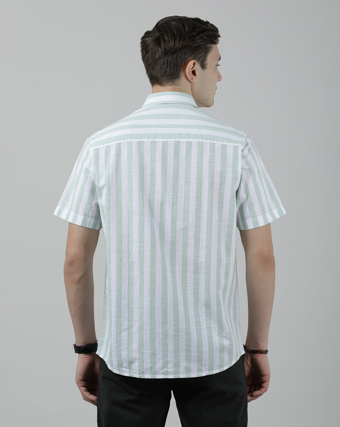 Green Striped Half Sleeve 100% Cotton Shirt
