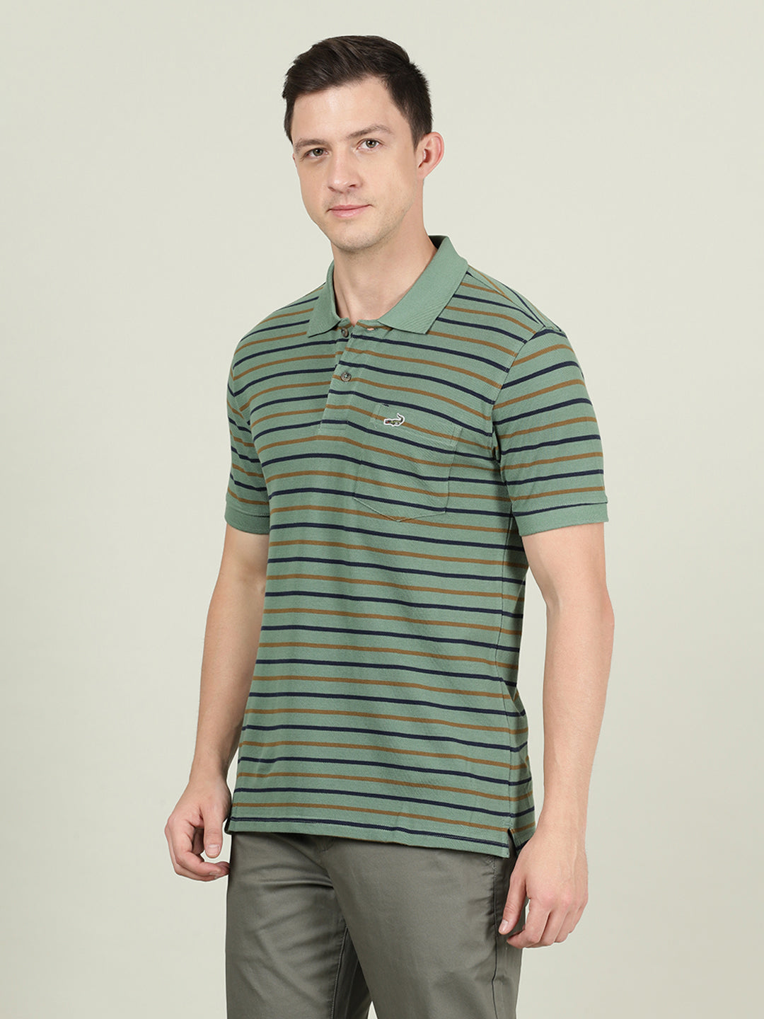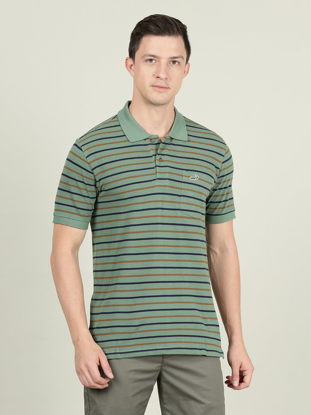 Green Striped Polo T-Shirt