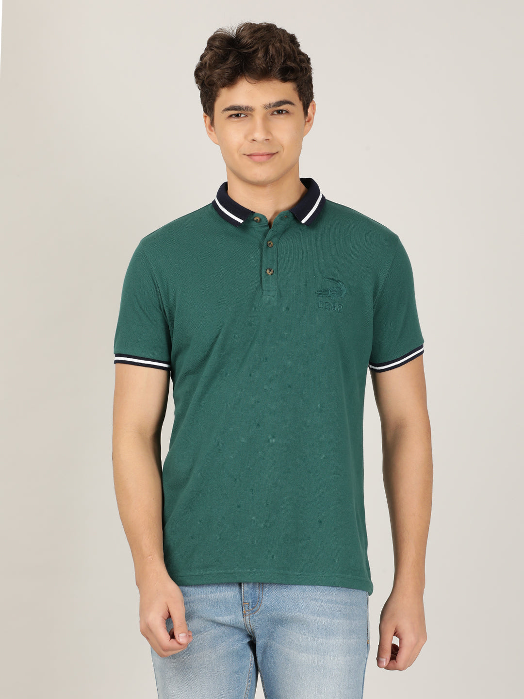 Green Solid Polo T-Shirt Slim Fit Polo T-Shirts