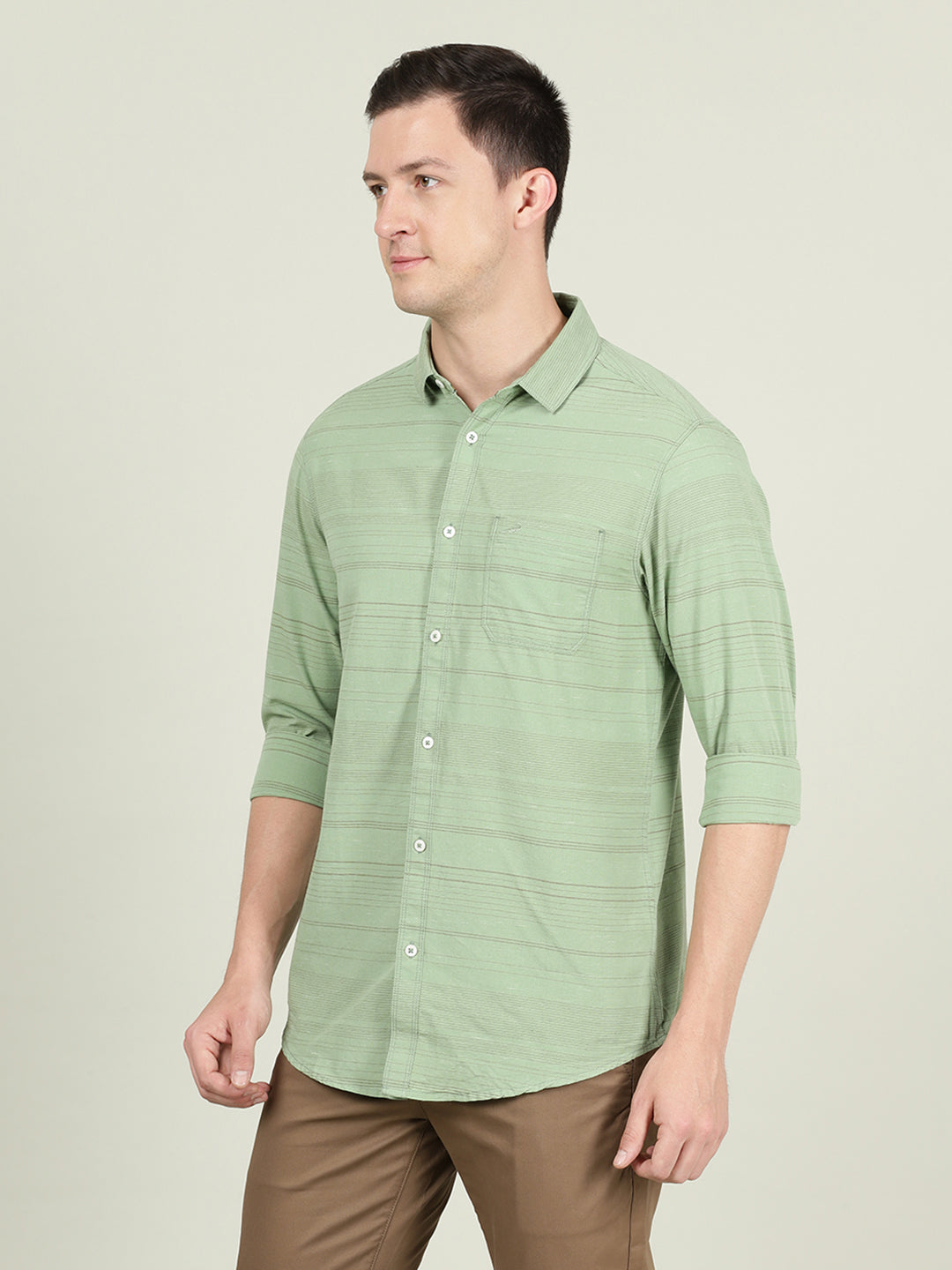 Green Striped Full Sleeve 100% Cotton Casual Shirt