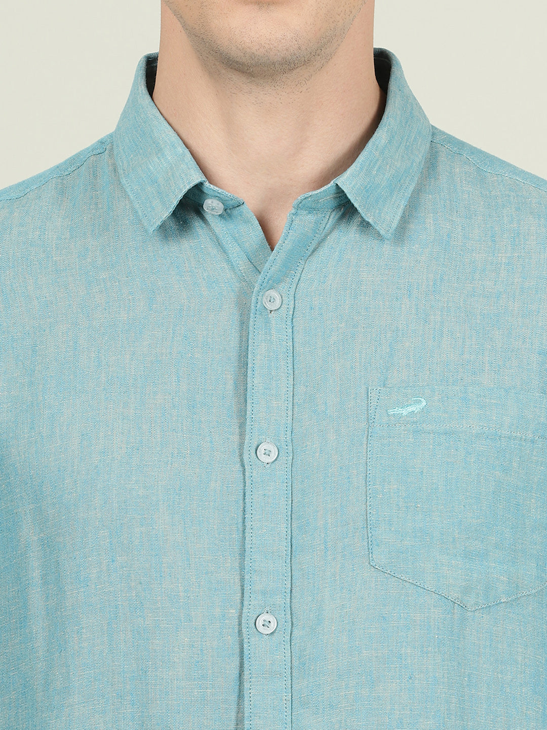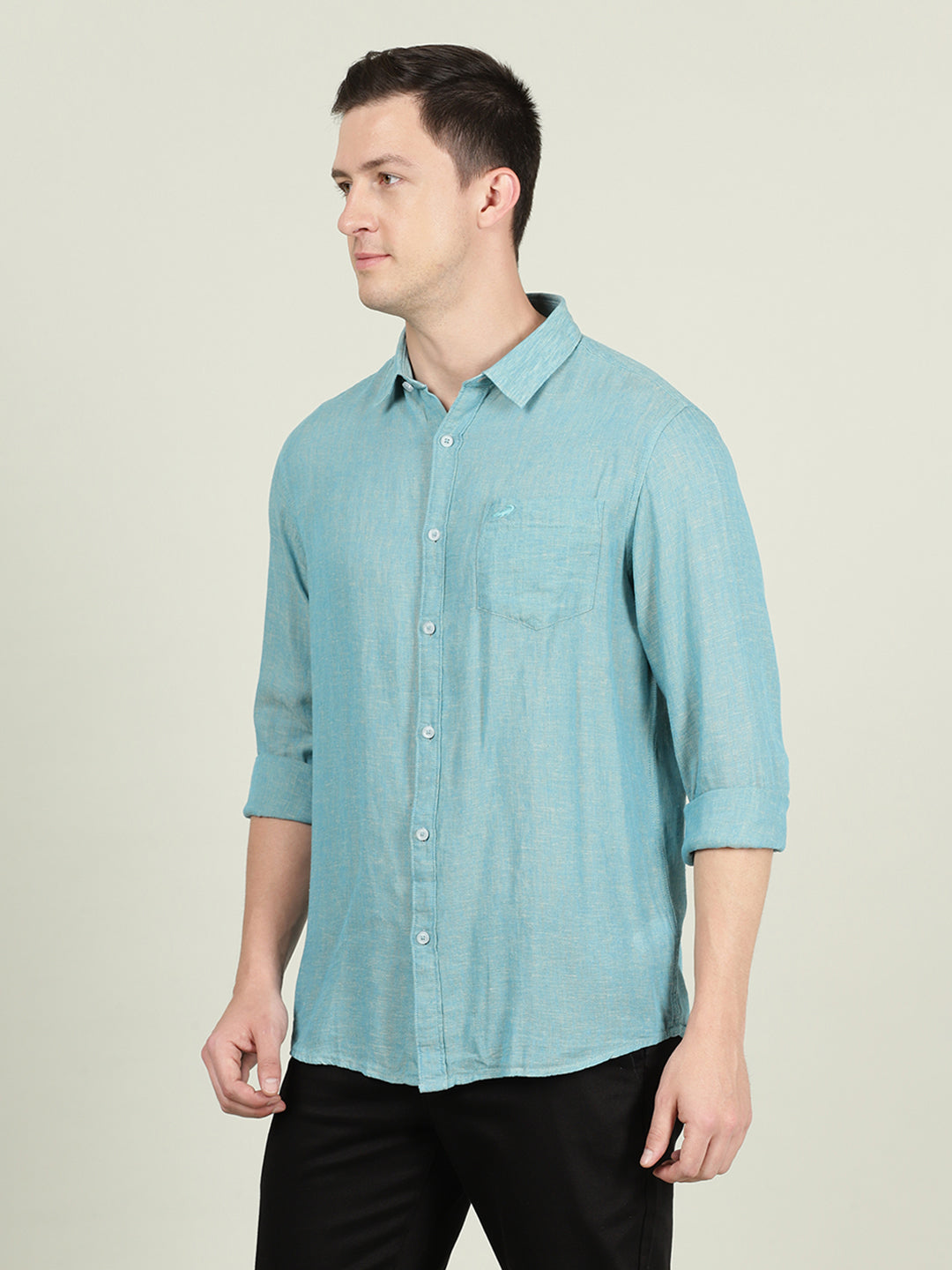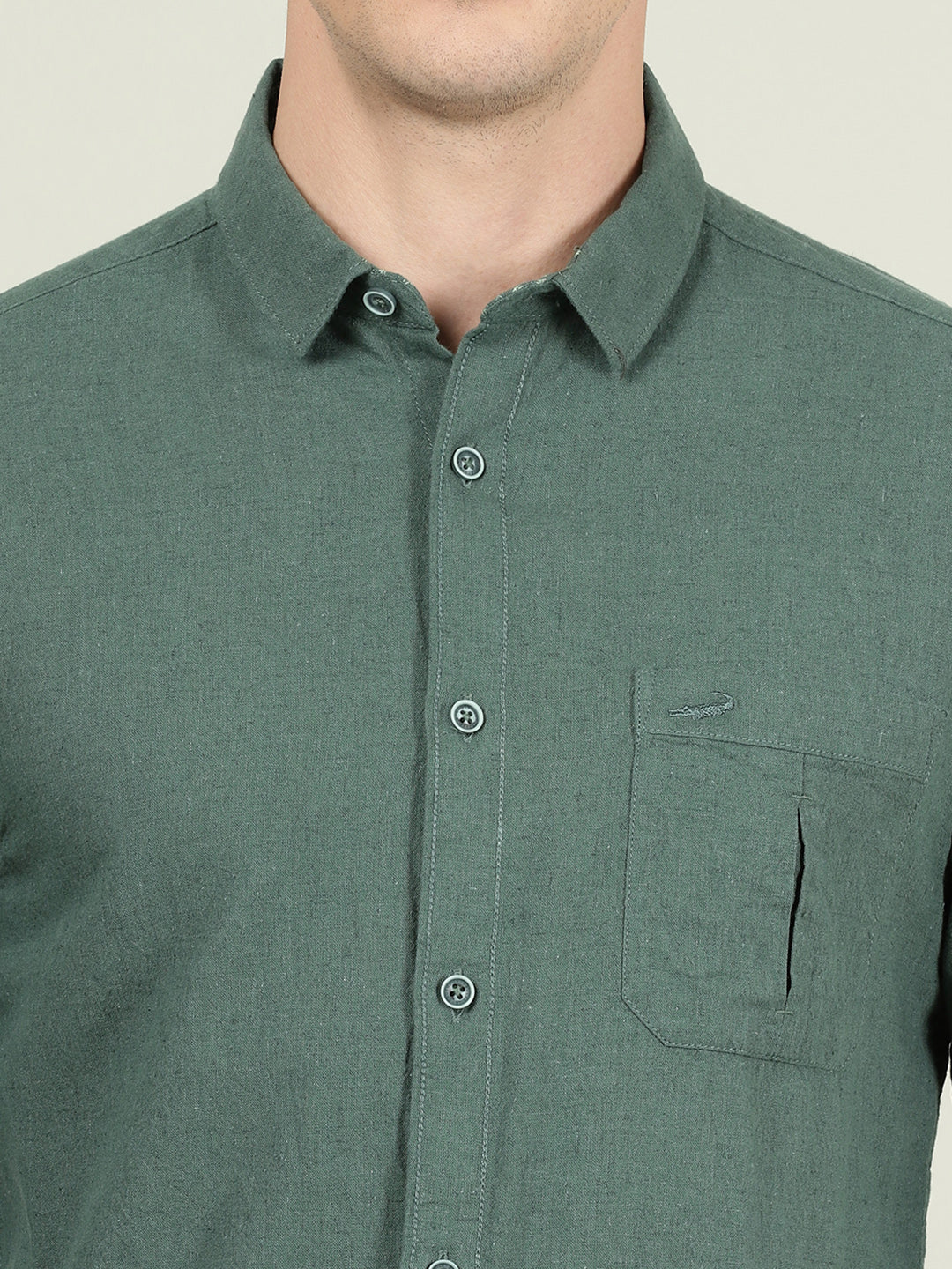 Green Solid Full Sleeve Linen Shirt