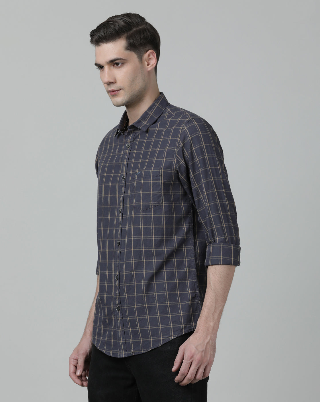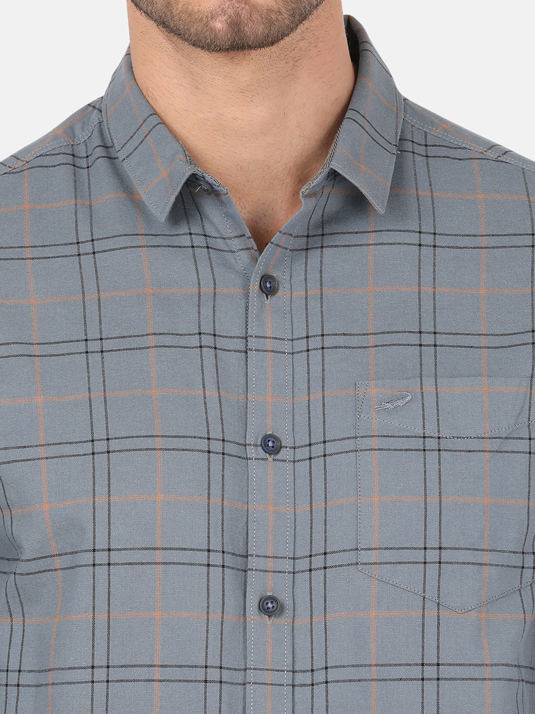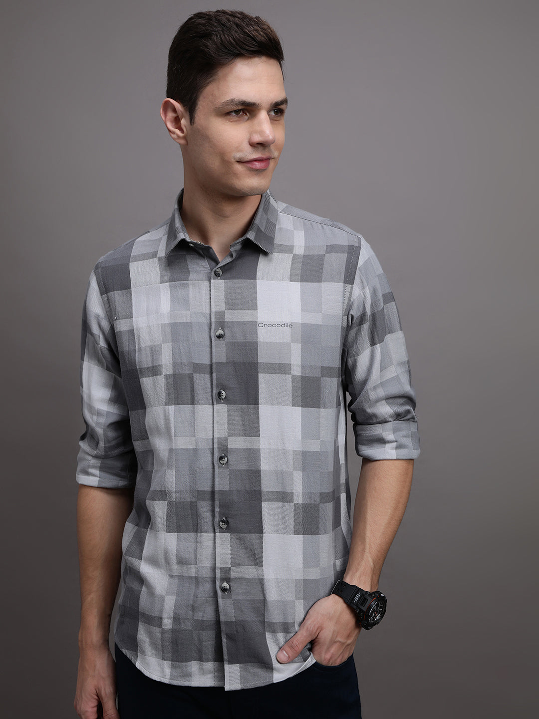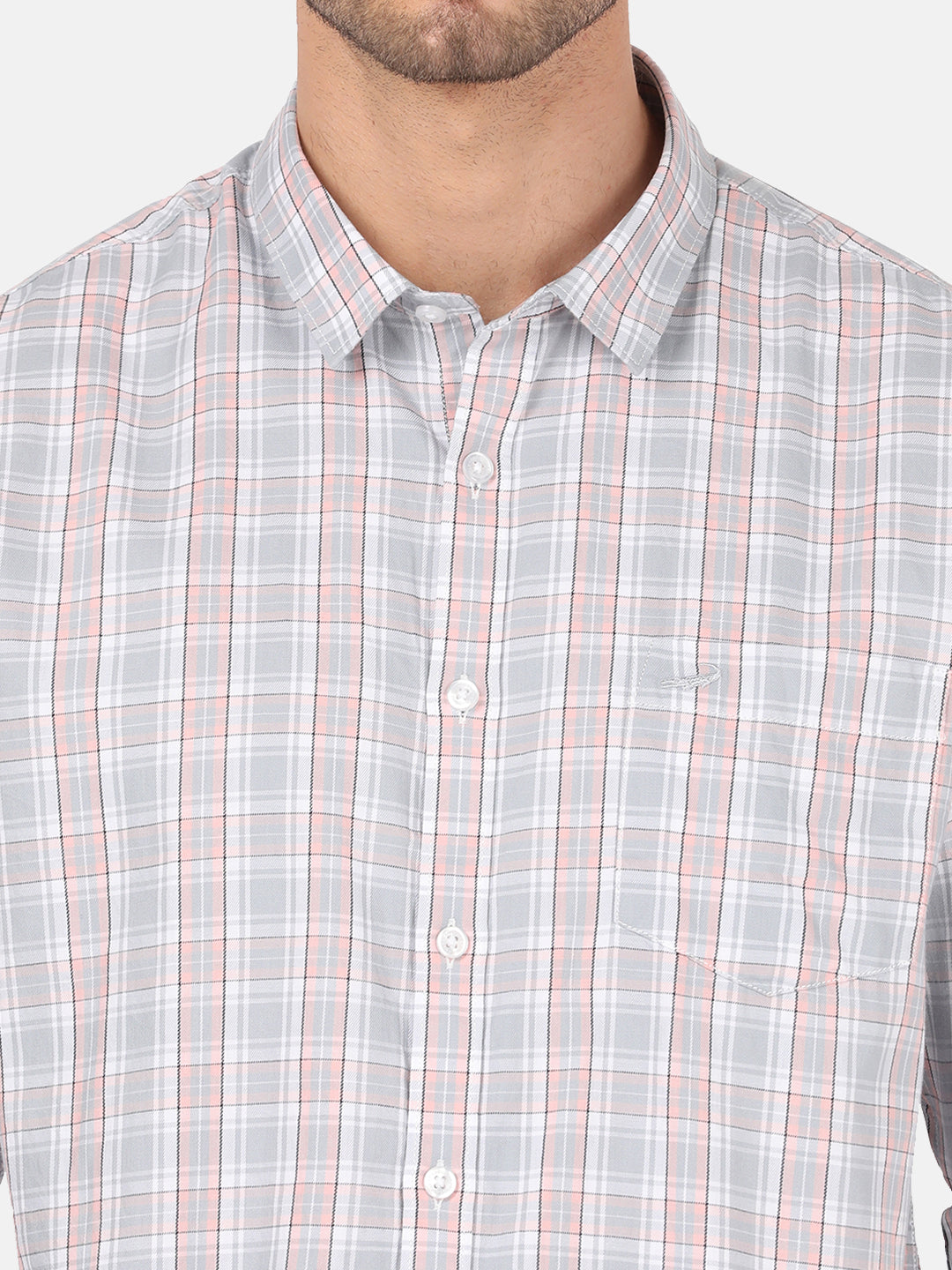 Grey Crinkled Checks Chisel Cut Pocket Crispy Handfeel Comfort Fit Shirts