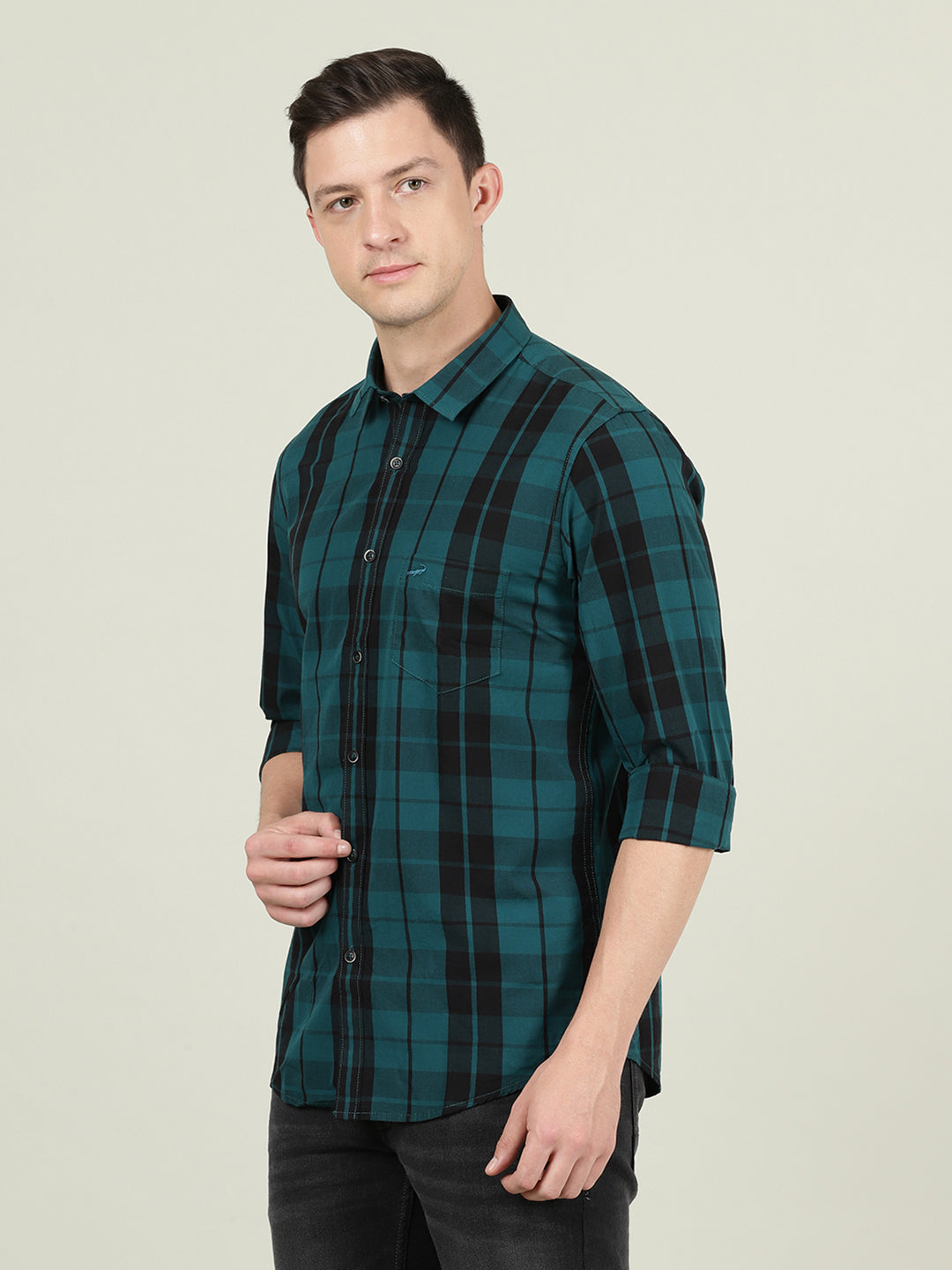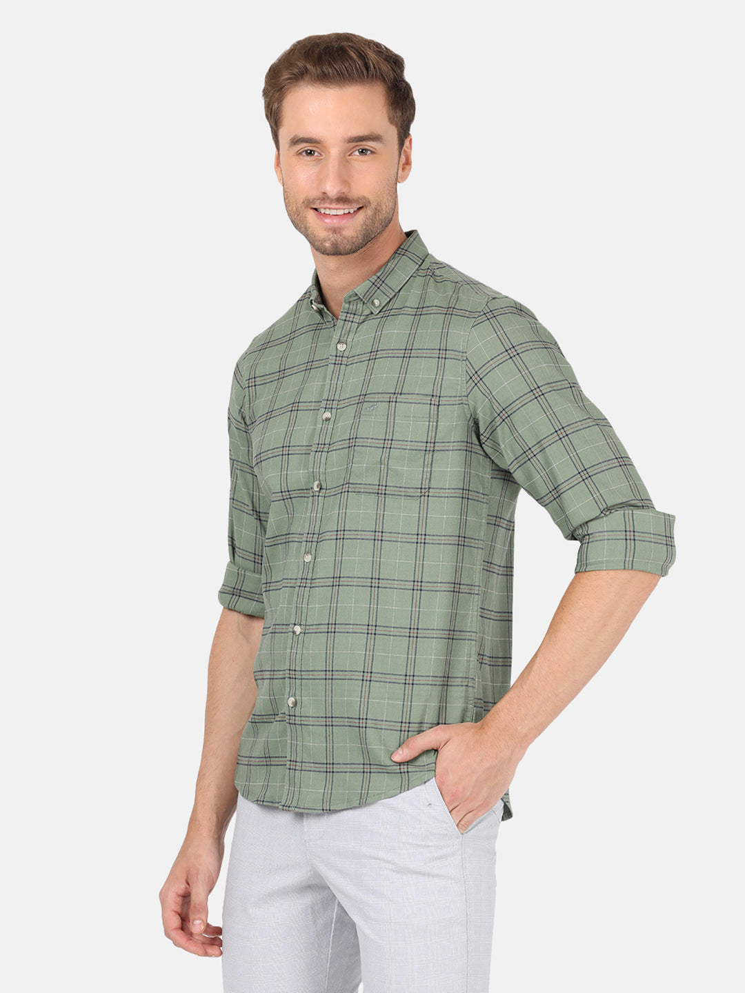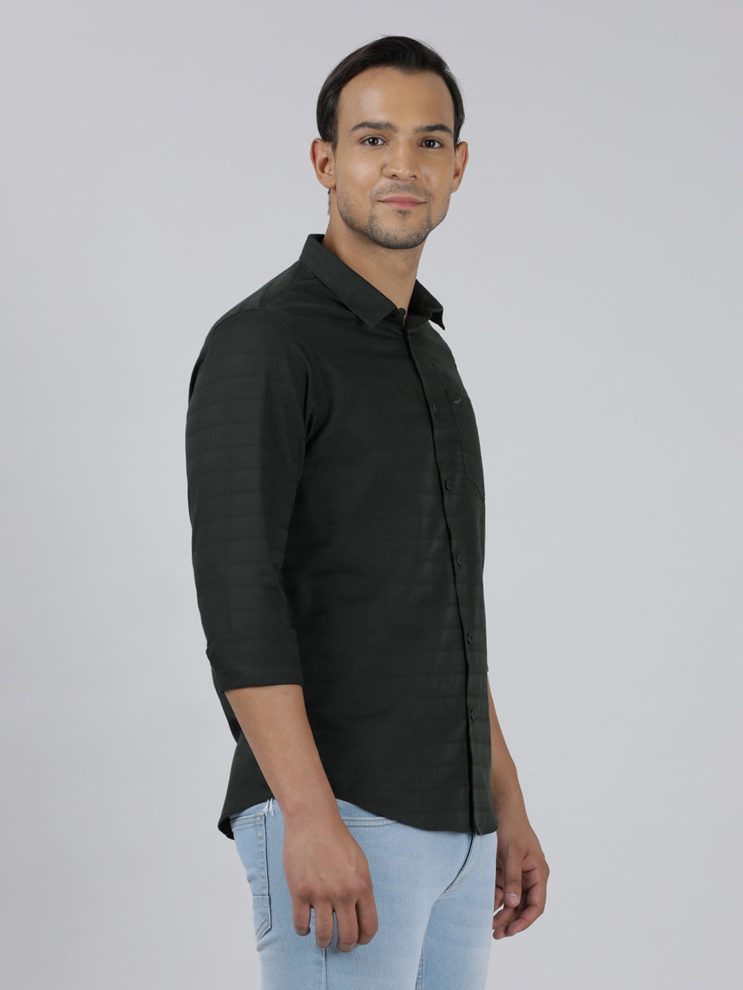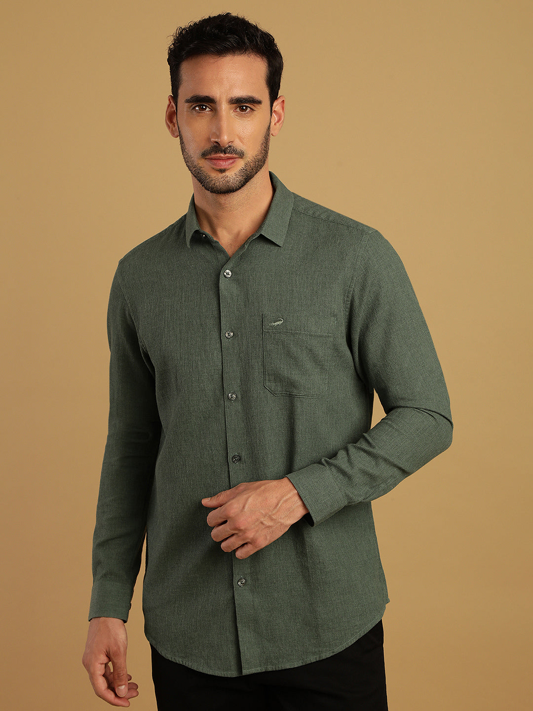 Green Textured Cozy Feel Cotton Comfort Fit Shirts
