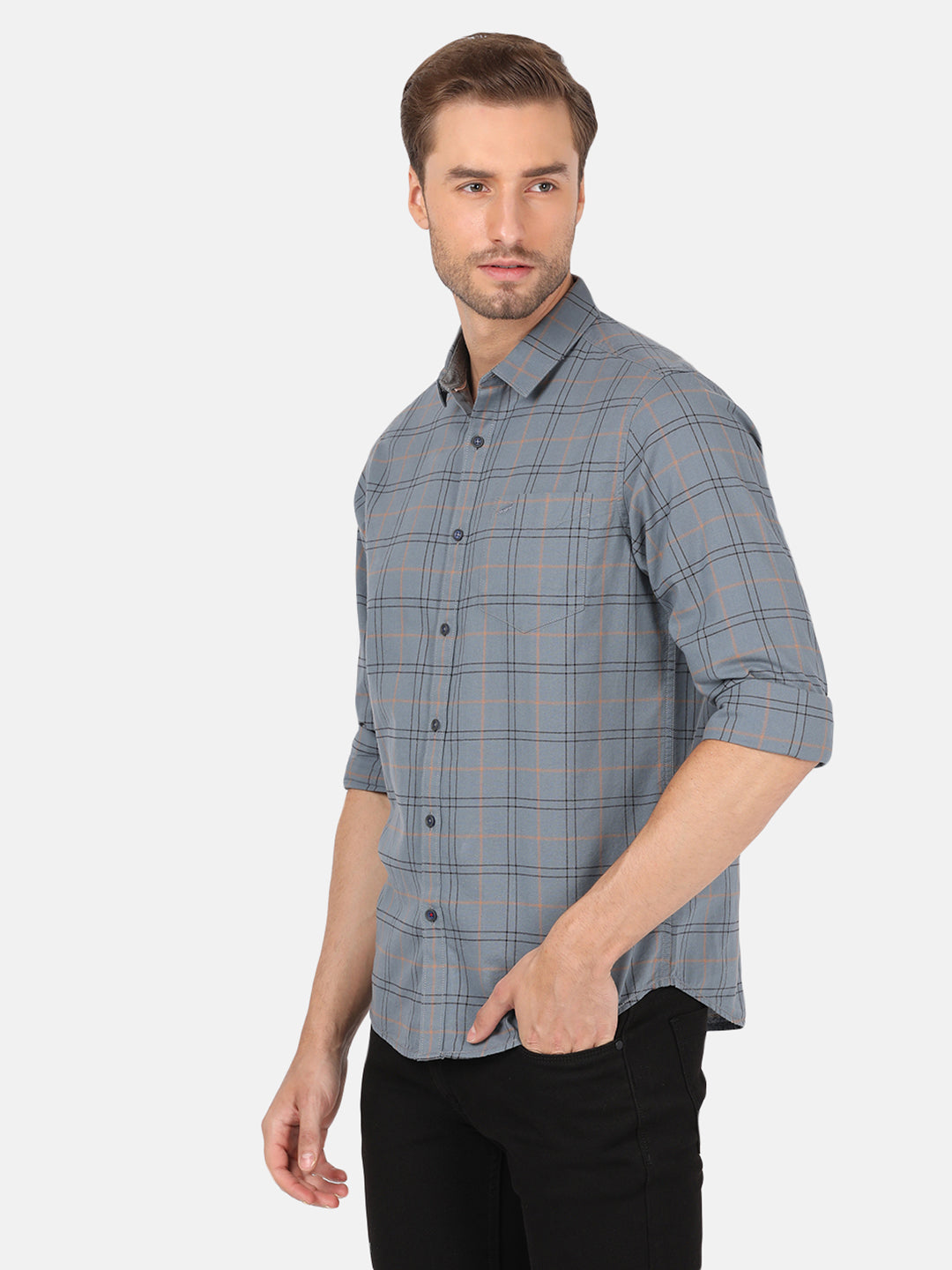Grey Checked Casual Full Sleeve 100% Cotton Shirt