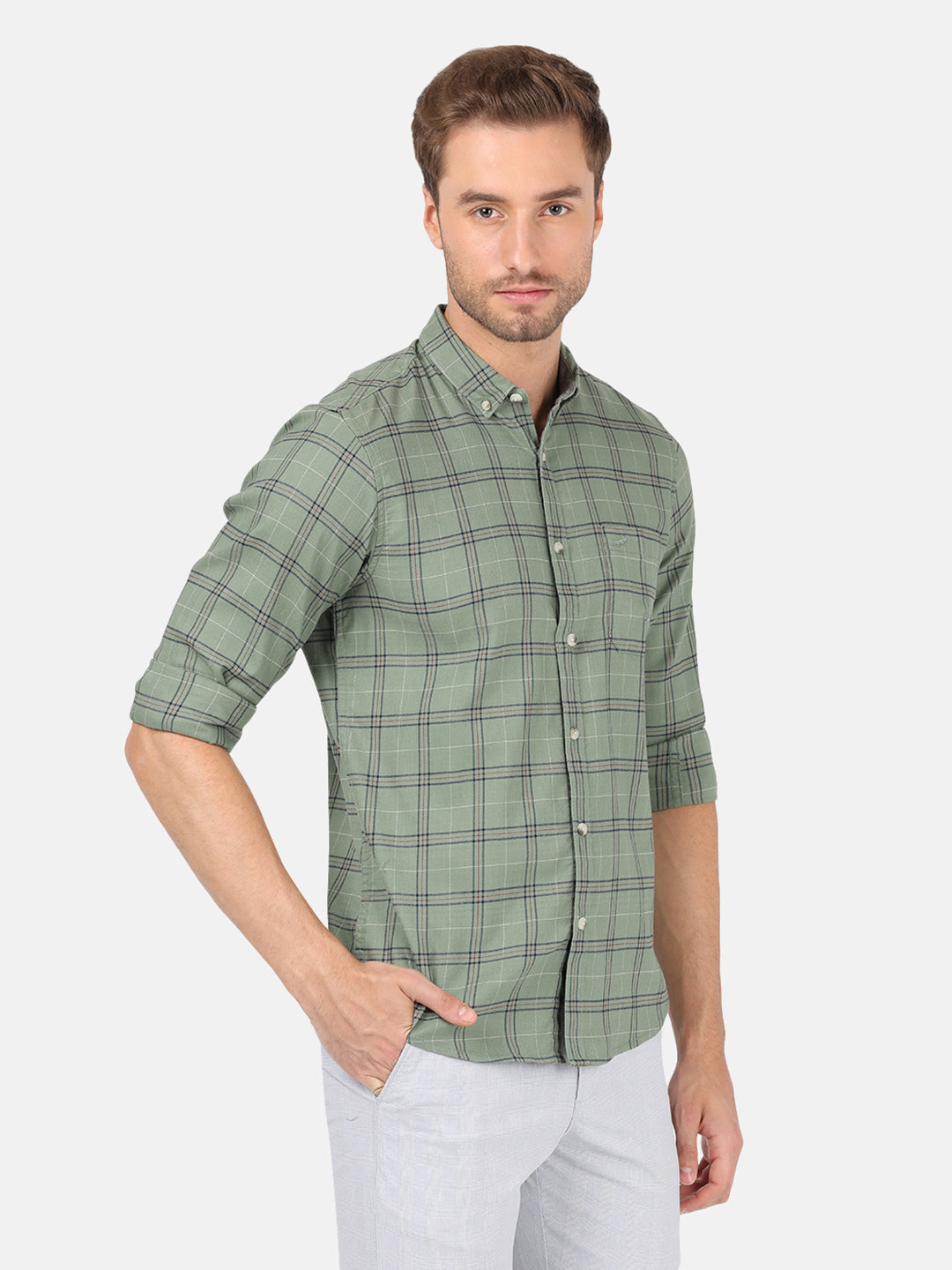 Green Utility Style Cotton Textured Comfort Fit Shirts