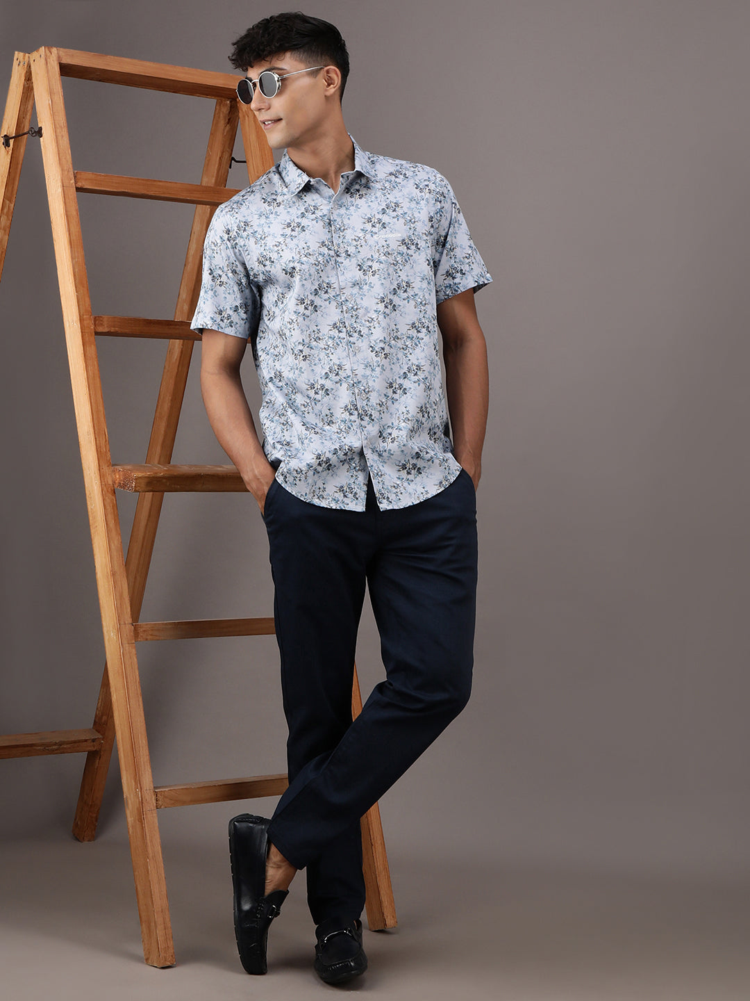 Grey Printed Half Sleeve 100% Cotton Shirt
