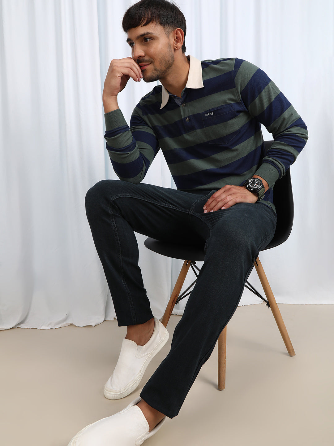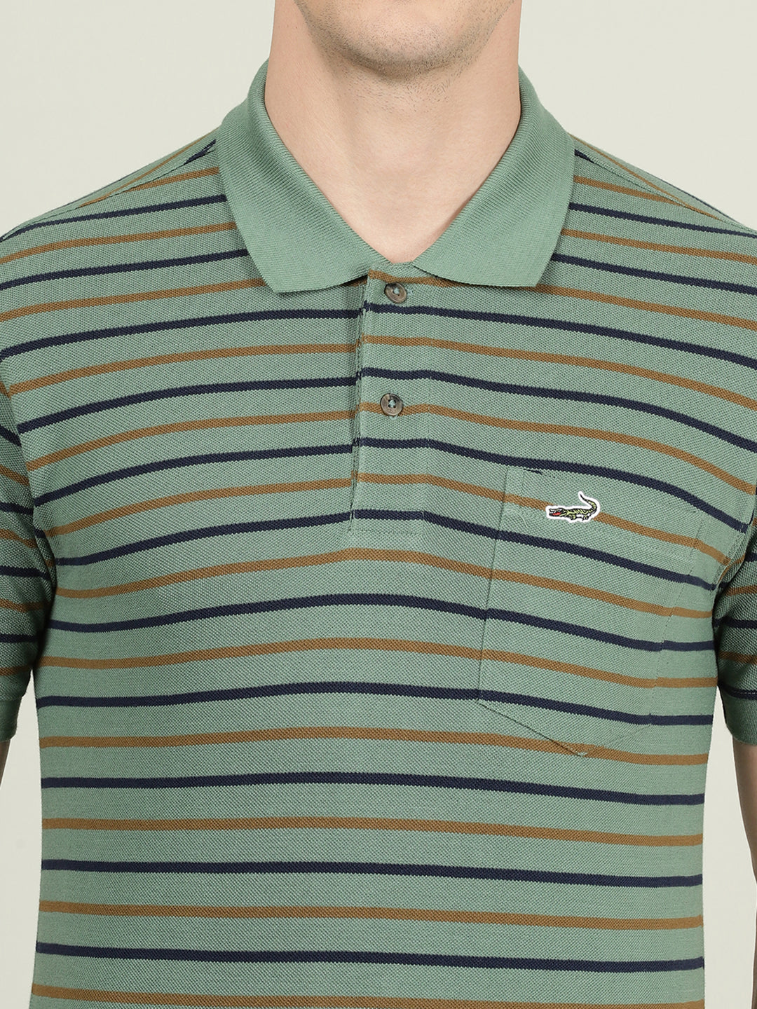 Green Striper Polo T-Shirt Comfort Fit Polo T-Shirts