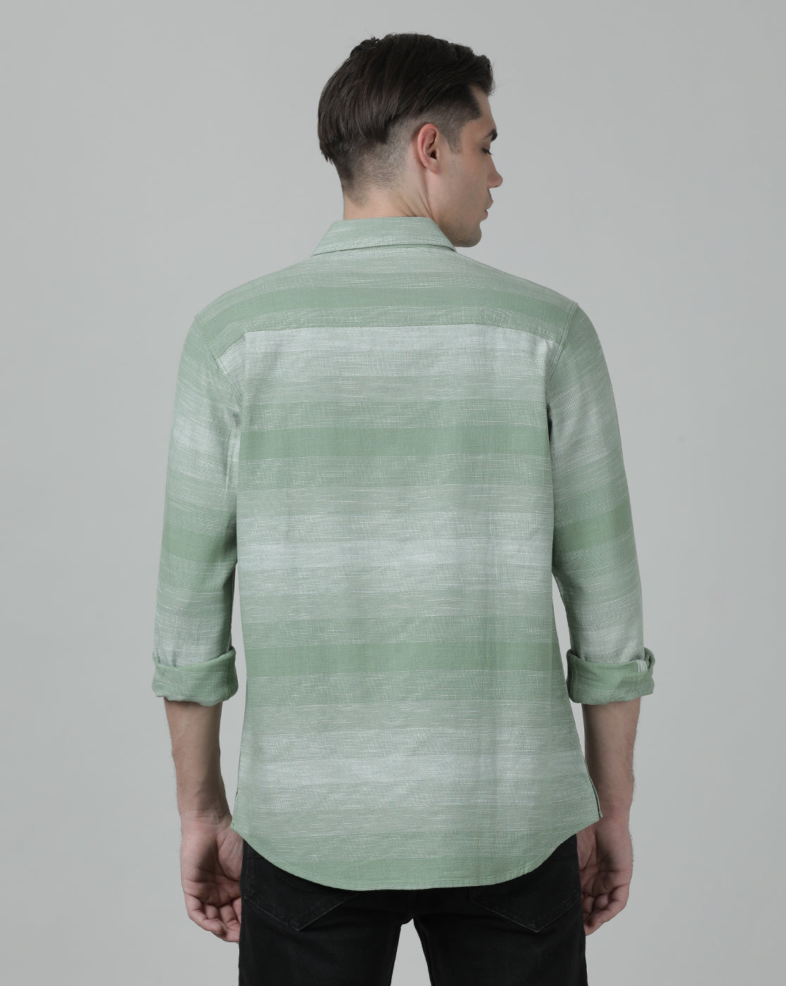 Green Textured Bold Stripe Cozy Fabric Comfort Fit Shirts