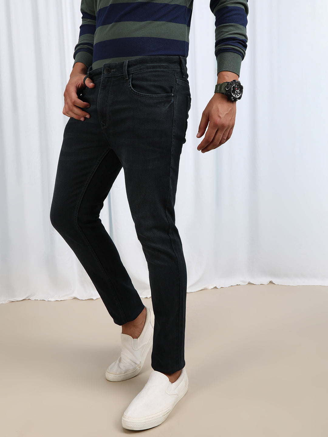 Green Solid Mid Rise Slim Fit Casual Jean