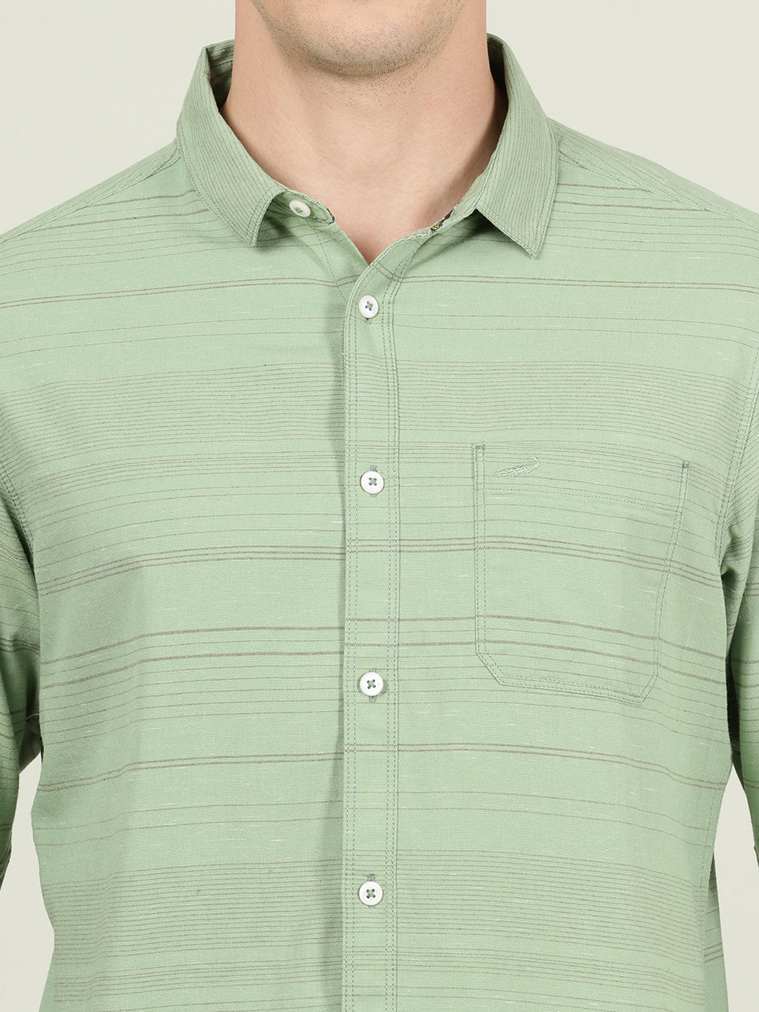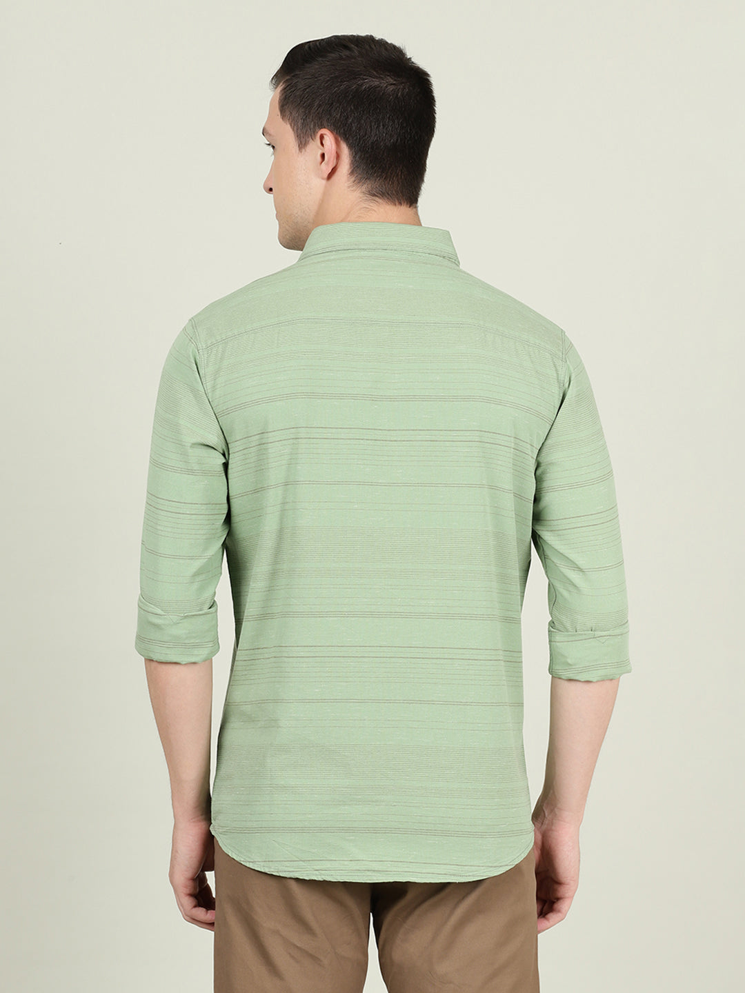 Green Striped Casual Full Sleeve 100% Cotton Shirt