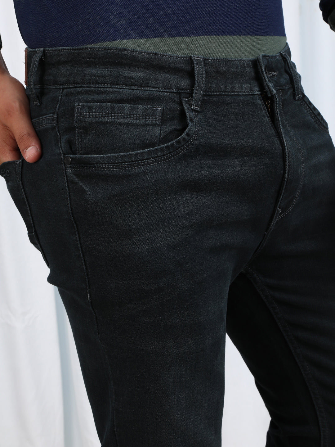 Grey Luxury Soft Premium Fabric Natural Fade Wash Crocodile Slim Fit Jeans
