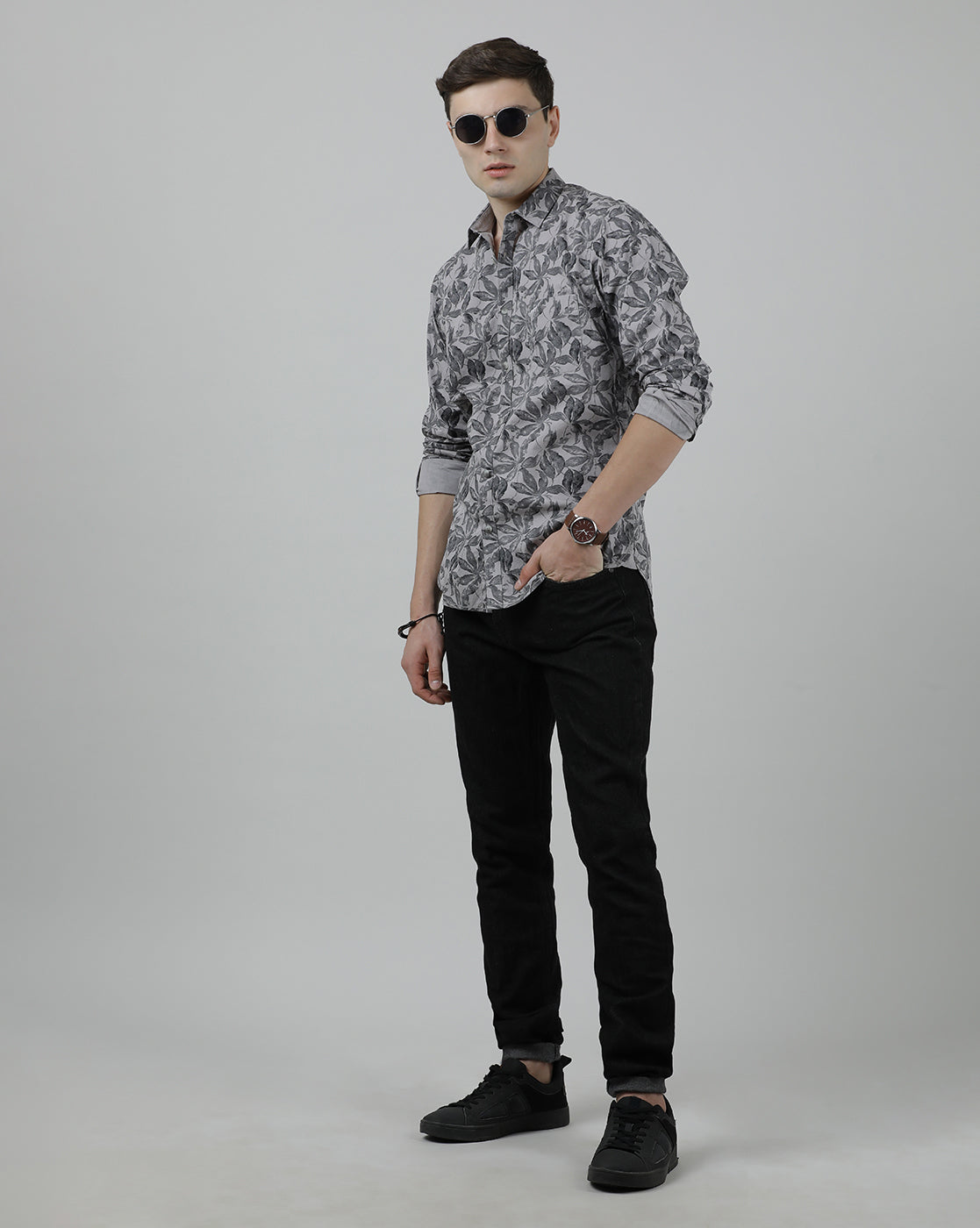 Grey Printed Full Sleeve Shirt