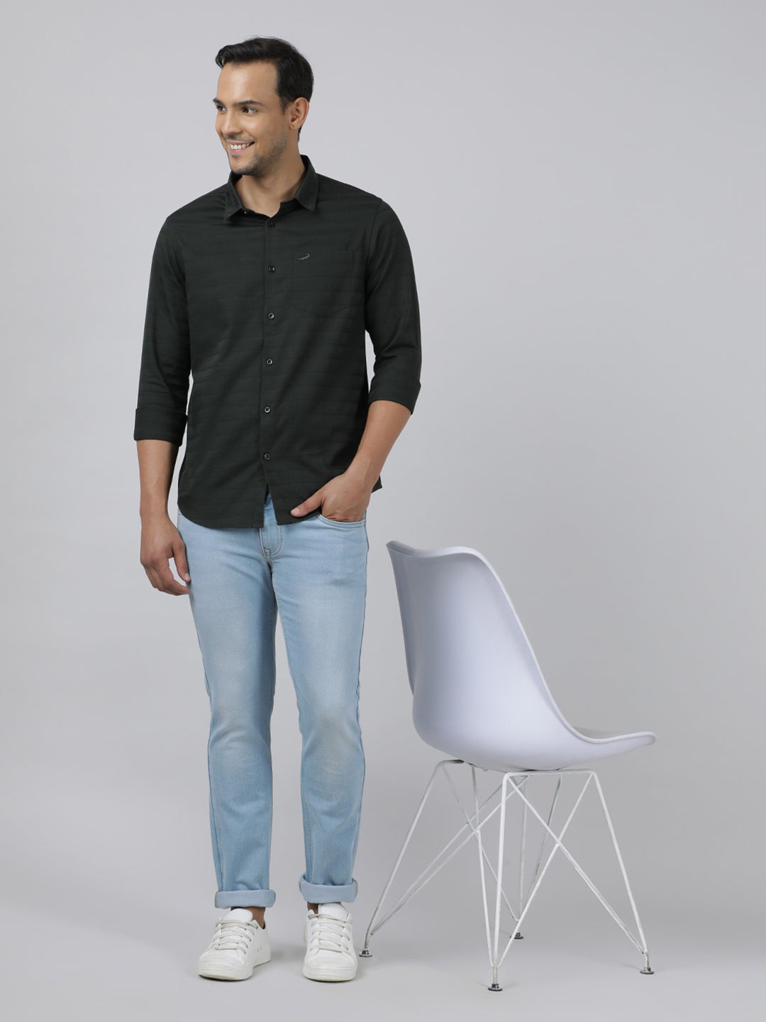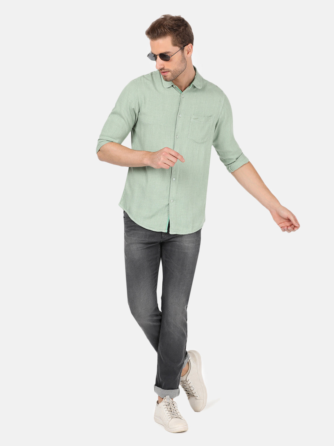 Green Solid Full Sleeve Casual Shirt
