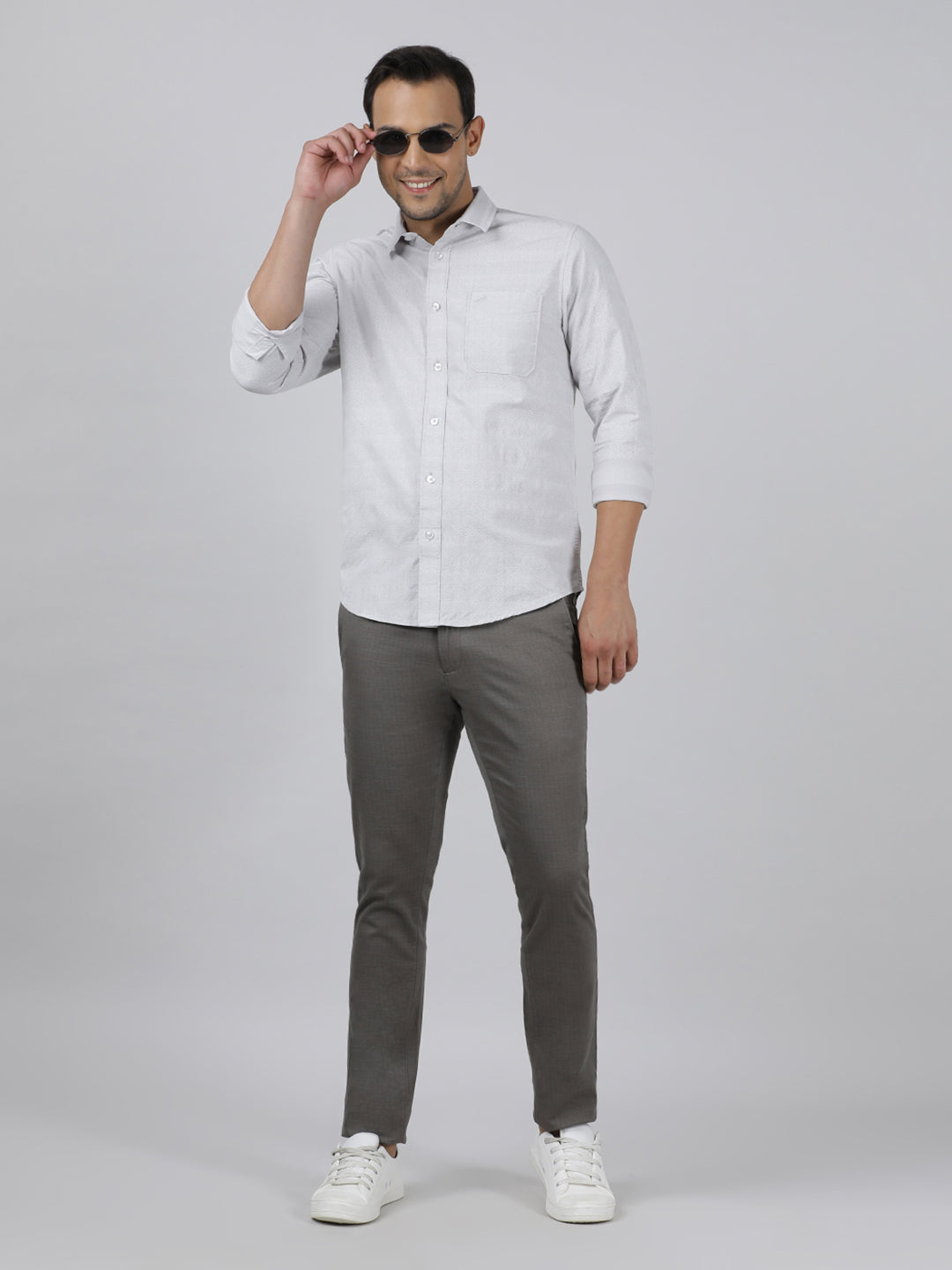 Grey Diamond Texture Fabric Cotton Comfort Fit Shirts