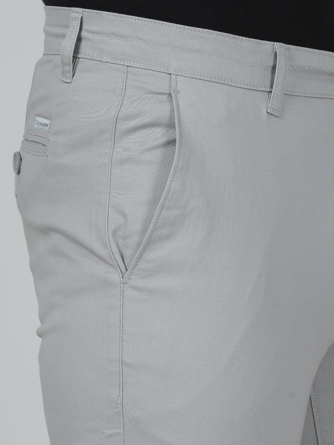 Grey Classic Chambray Fabric Tri-Blend Stitch Detailings Slim Fit Trousers