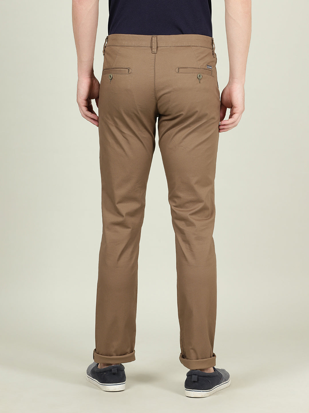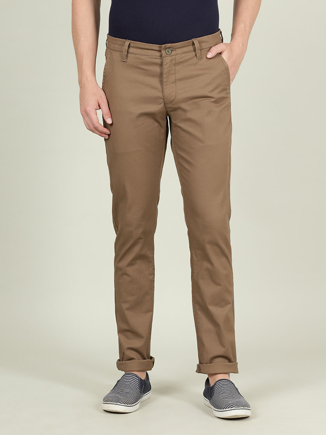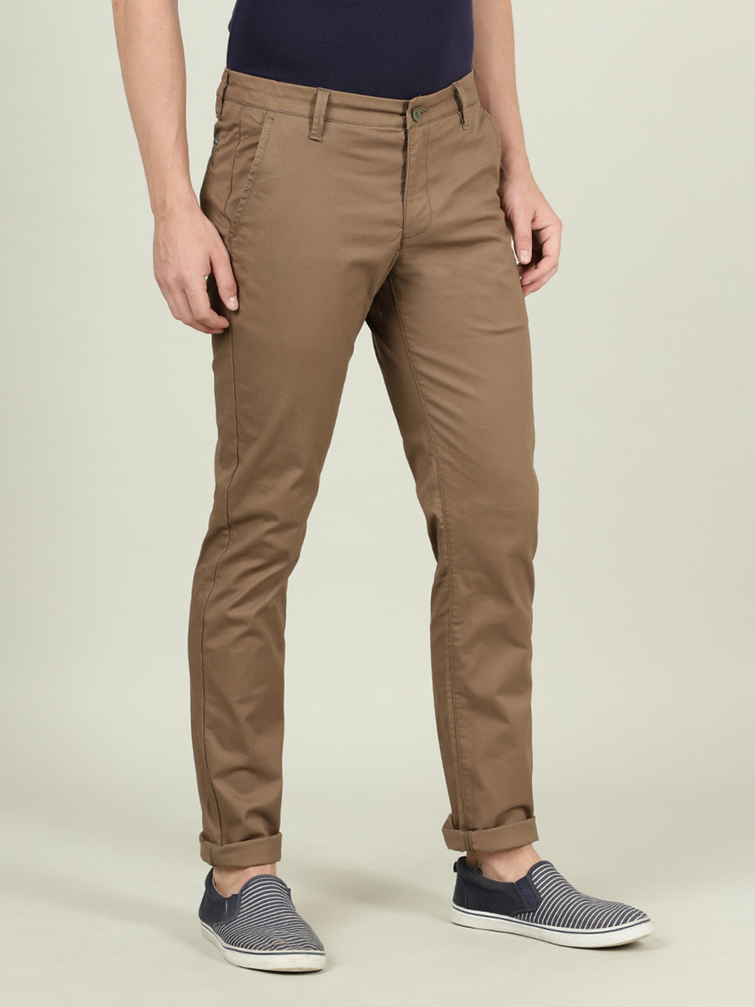 Khaki Brown Casual Solid Slim Fit Trouser