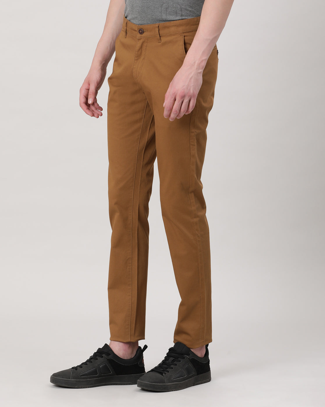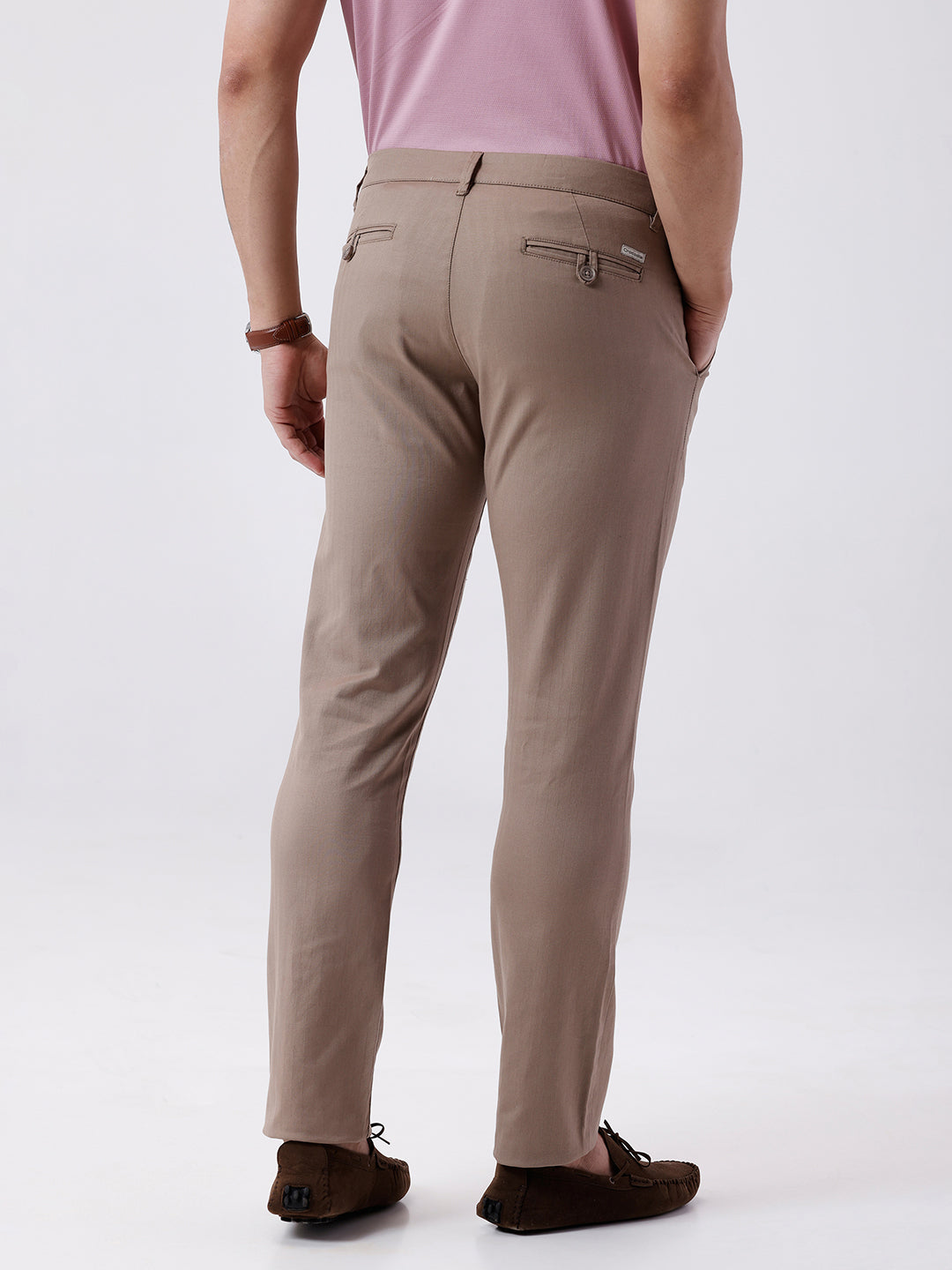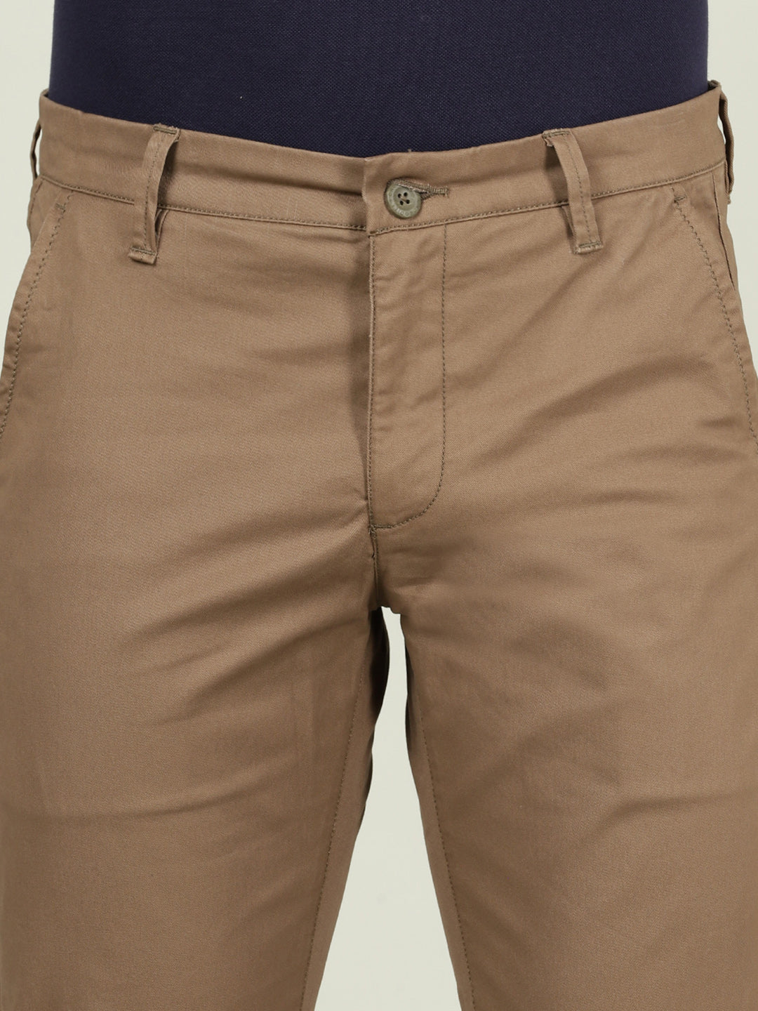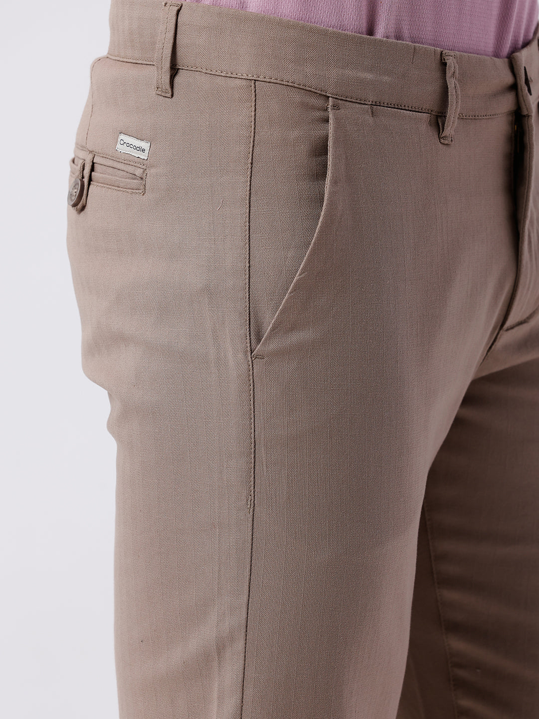 Khaki Brown Casual Solid Slim Fit Trouser