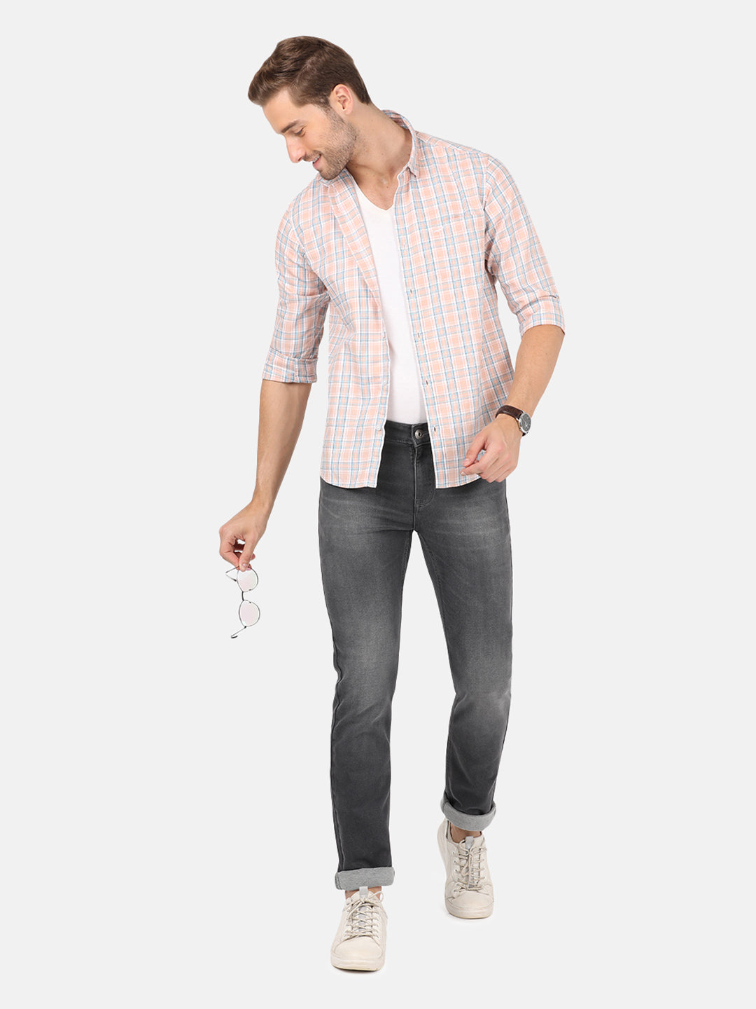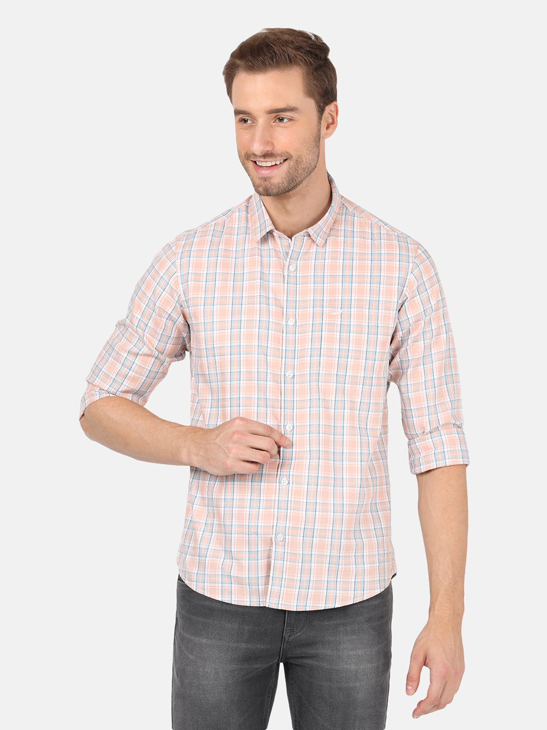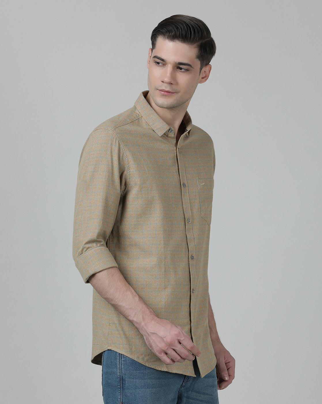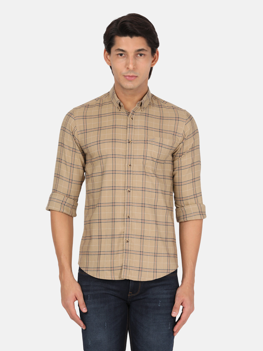 Light Brown Checked Full Sleeve Shirt