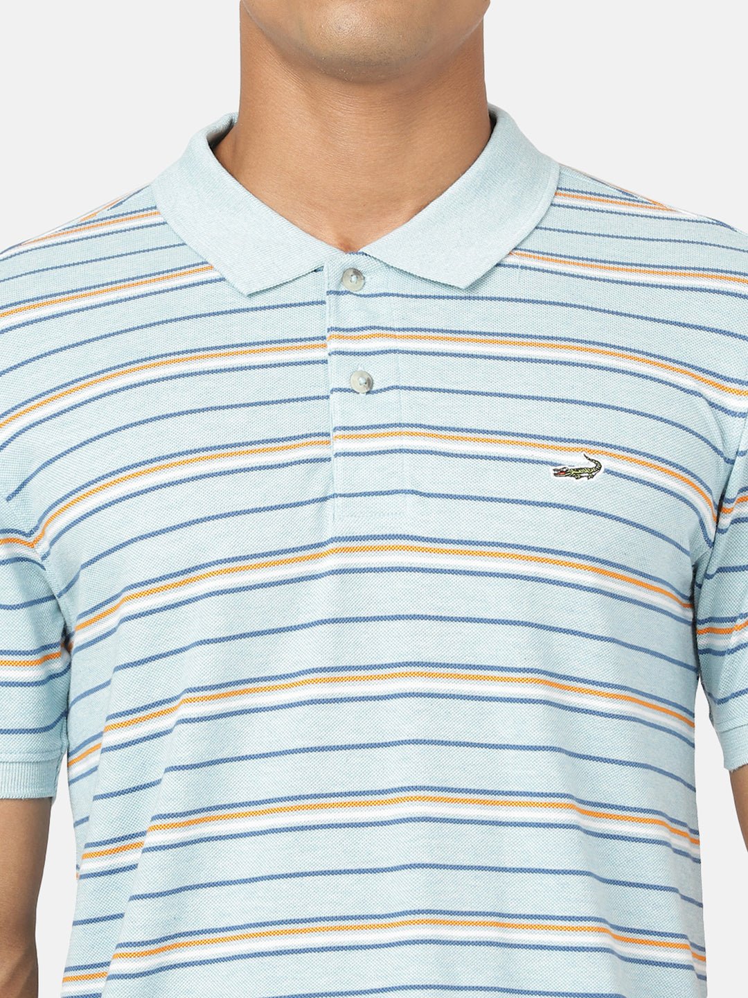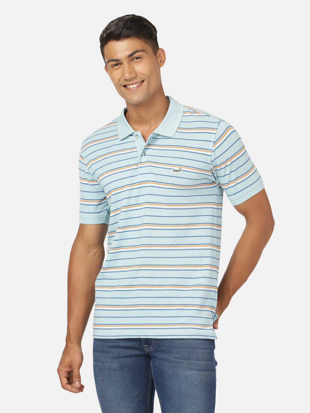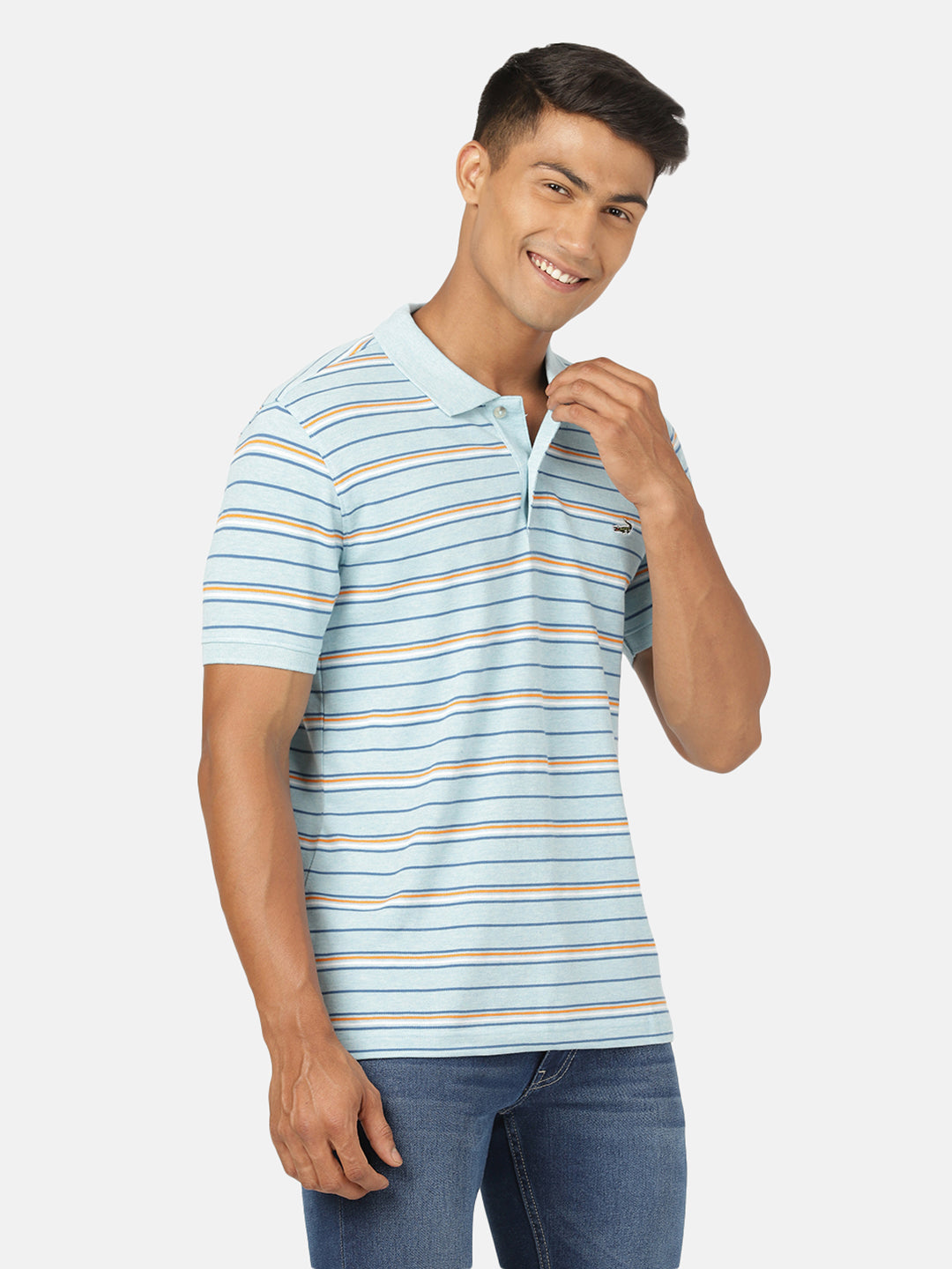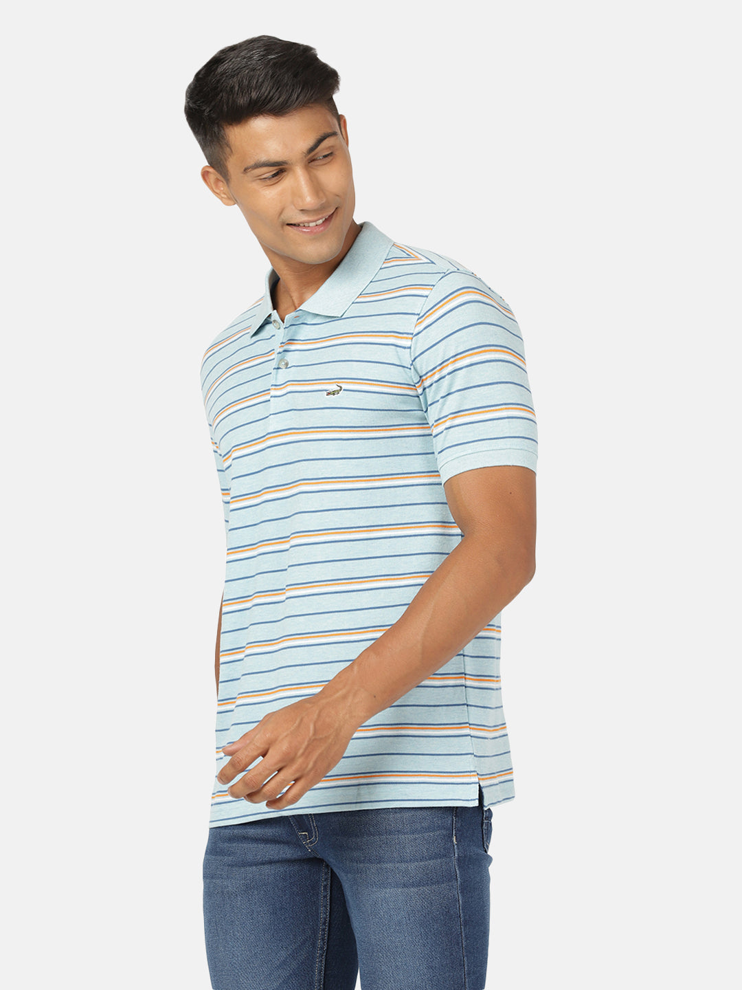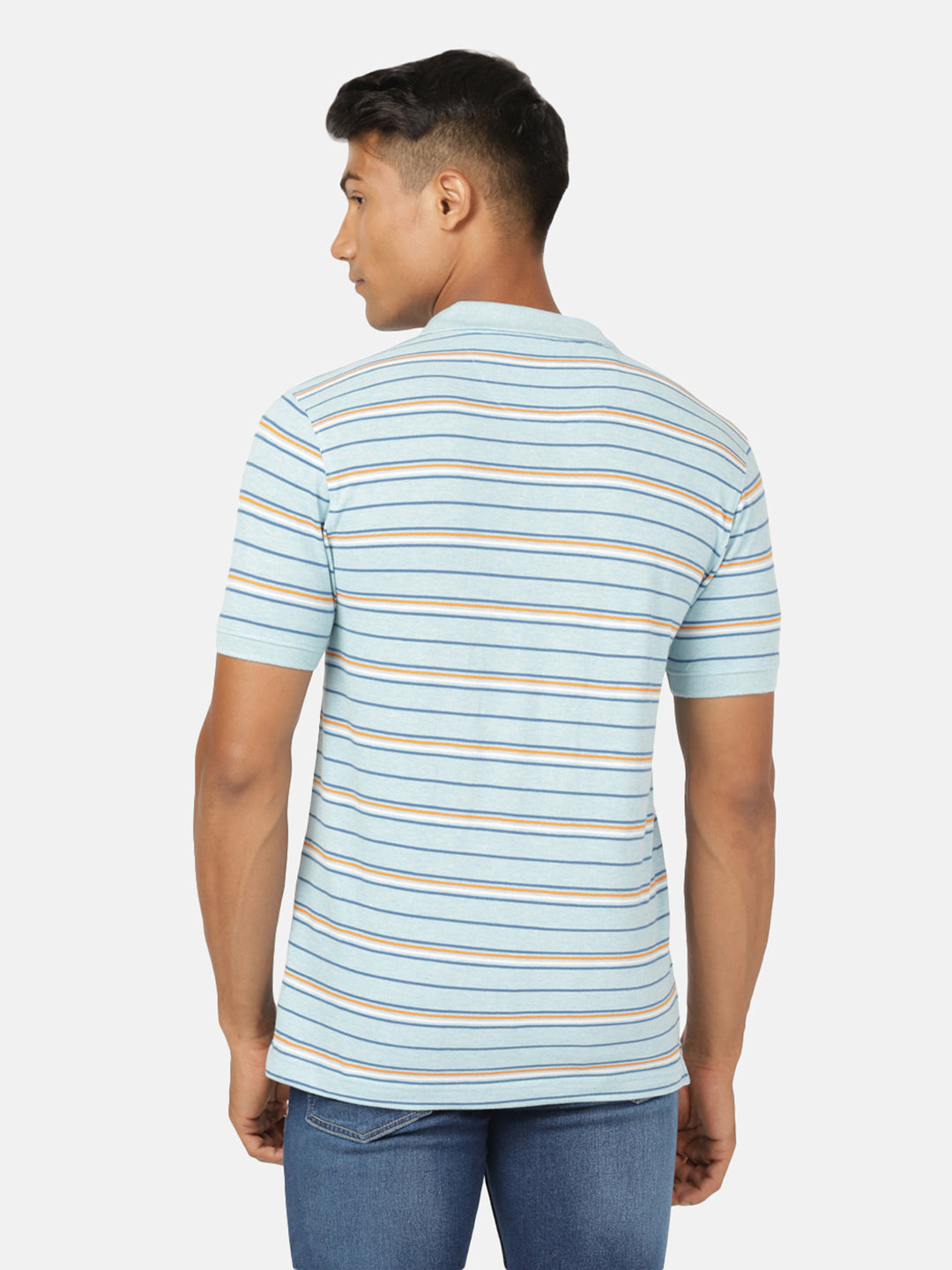 Light Blue Melange Striped Polo T-Shirt