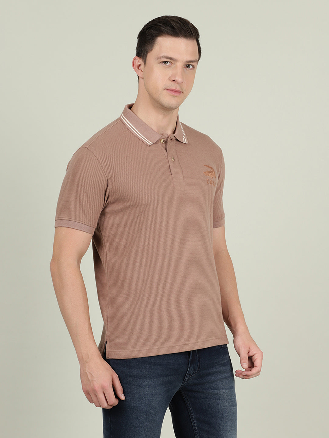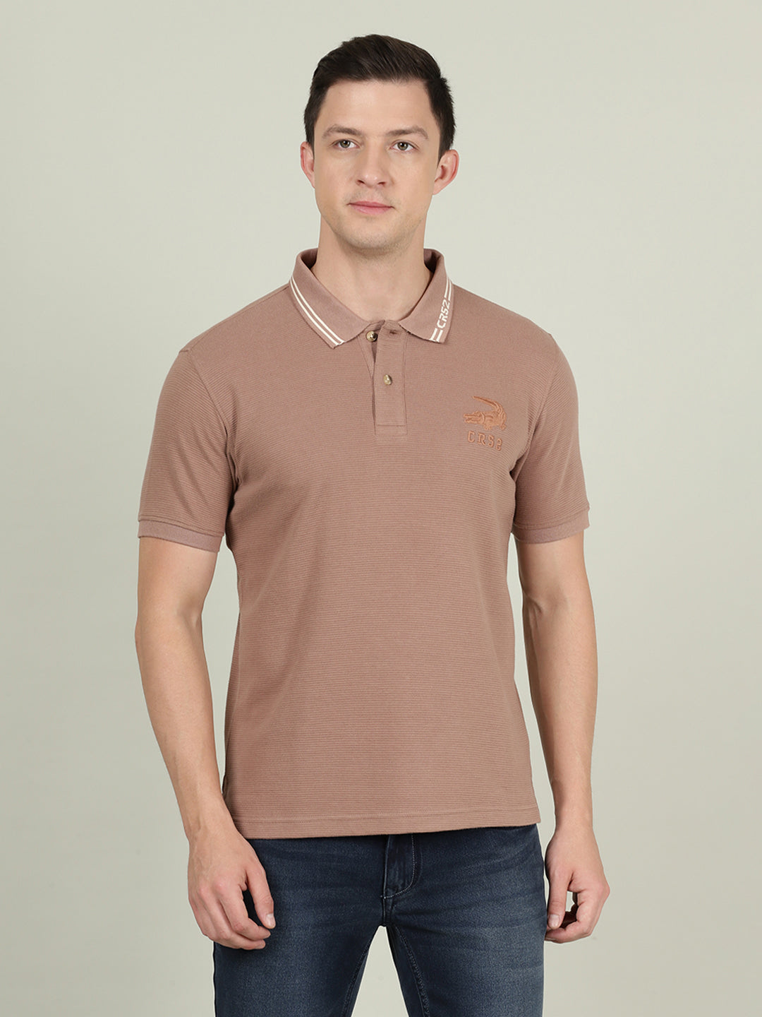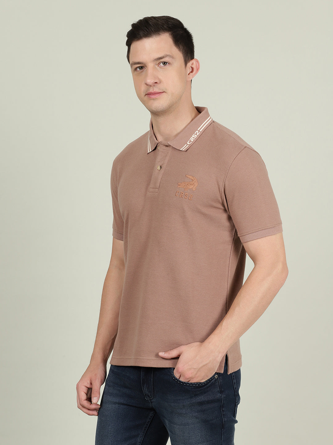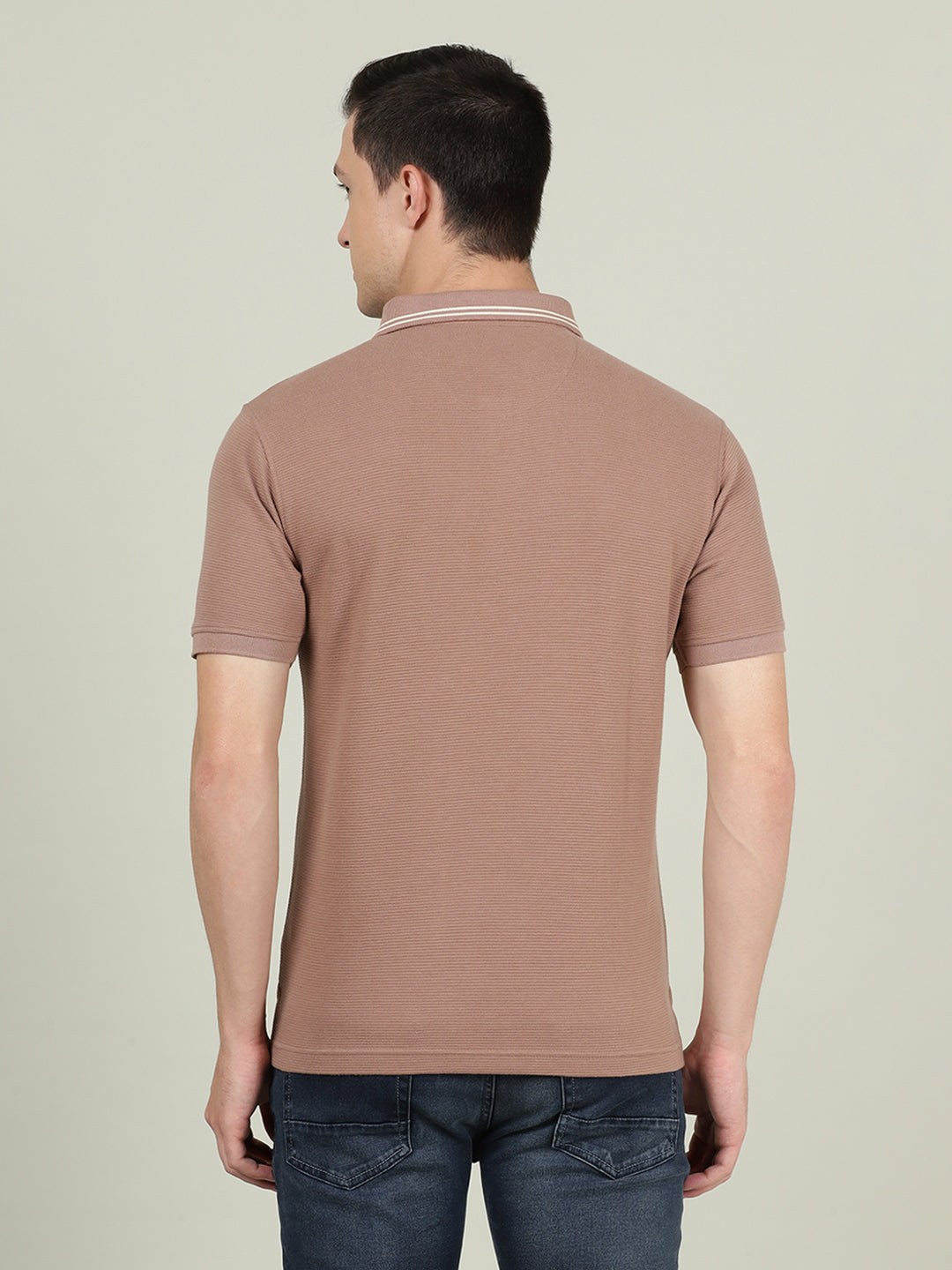 Light Brown Structure Slim Fit Polo Tshirts