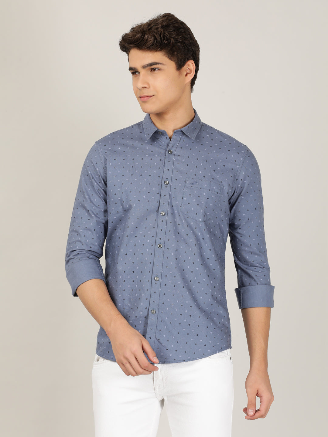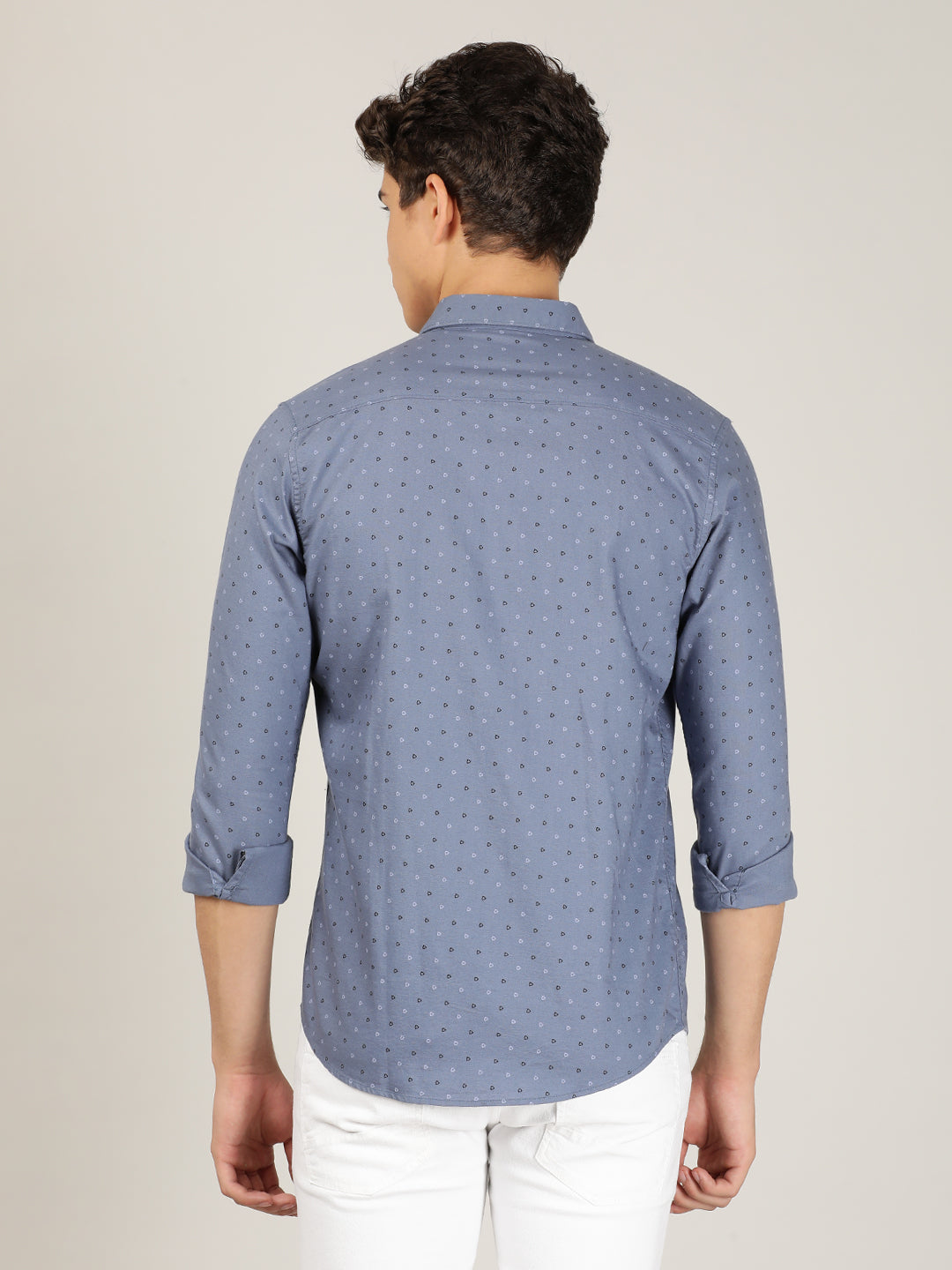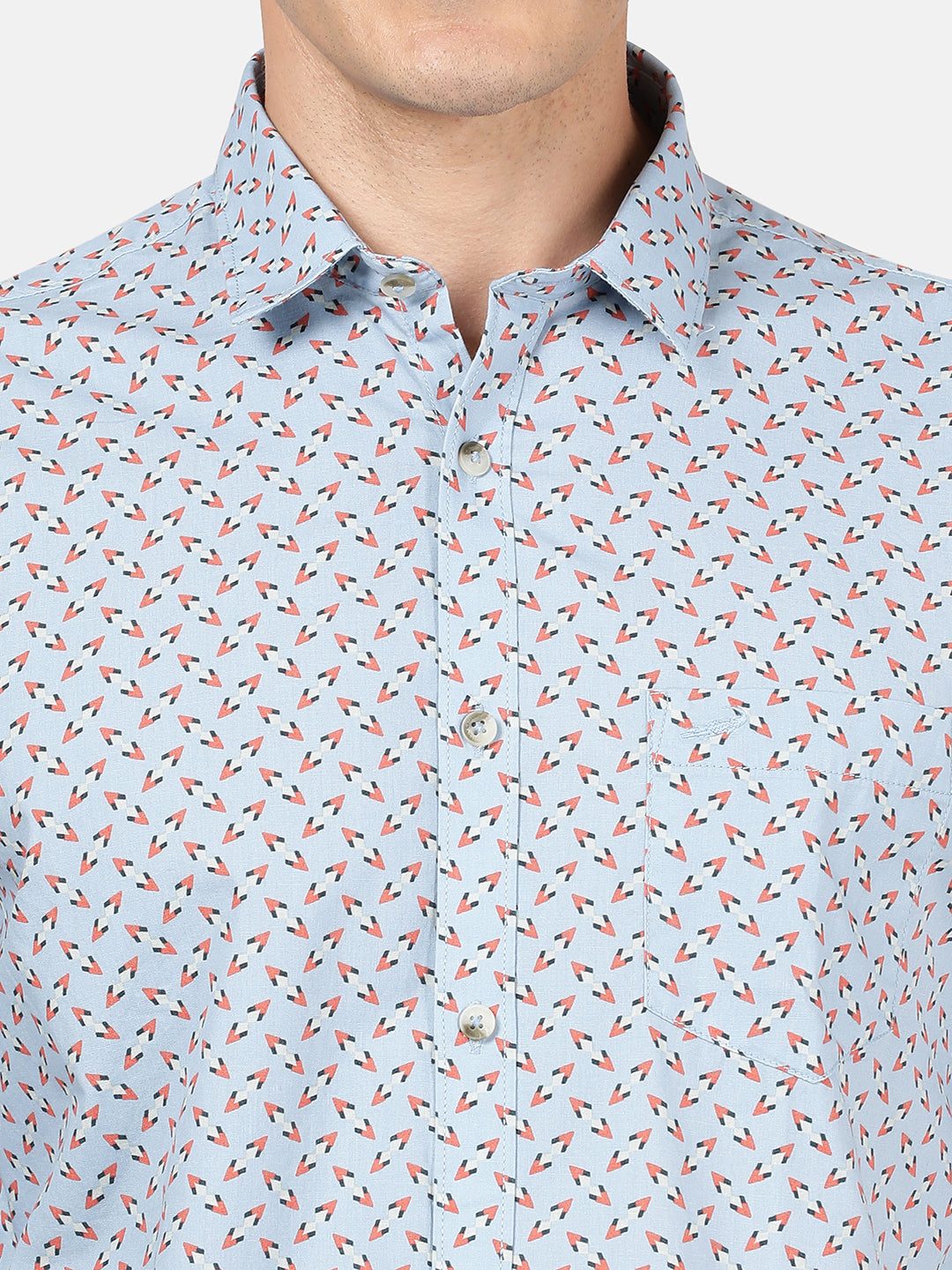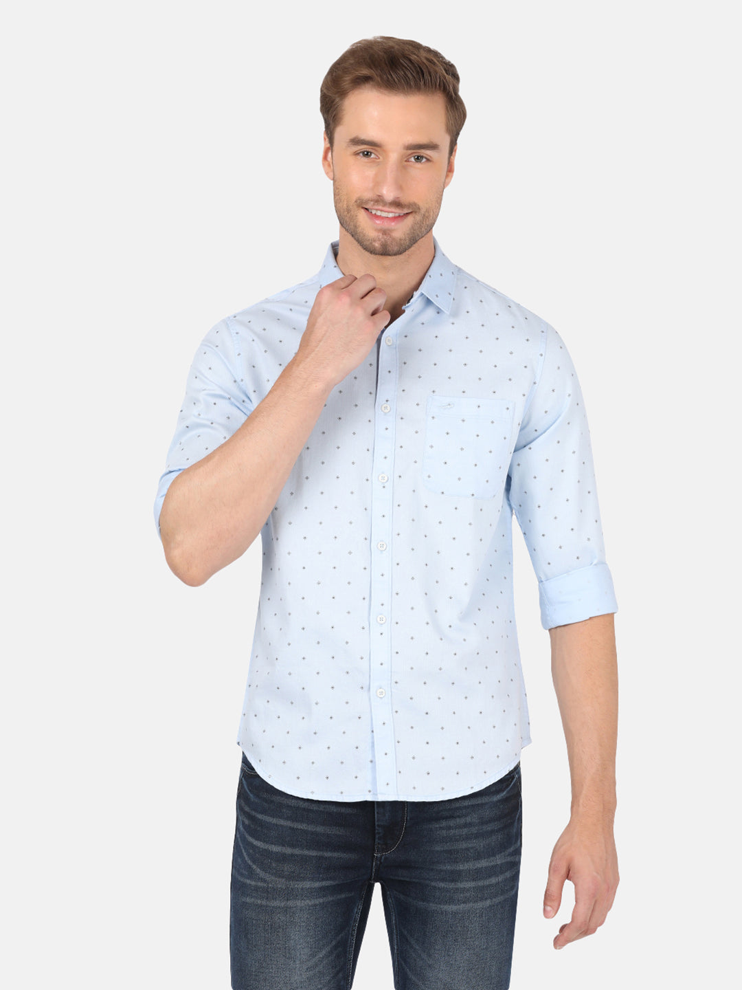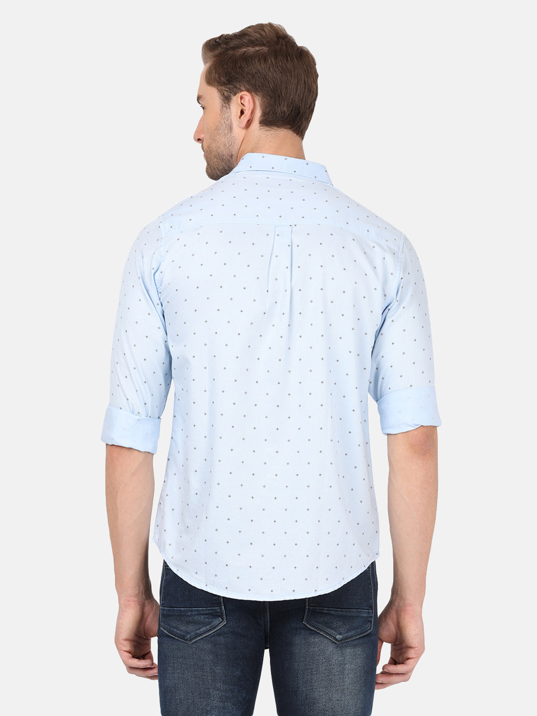 Light Blue Printed Full Sleeve 100% Cotton Shirt