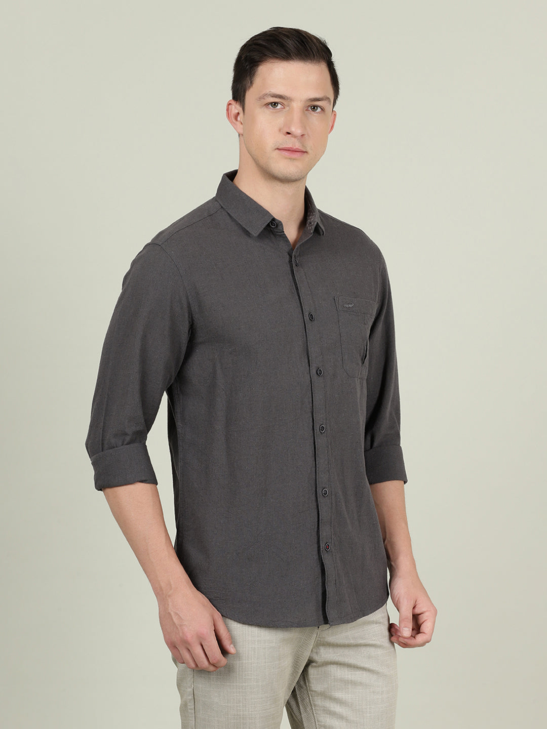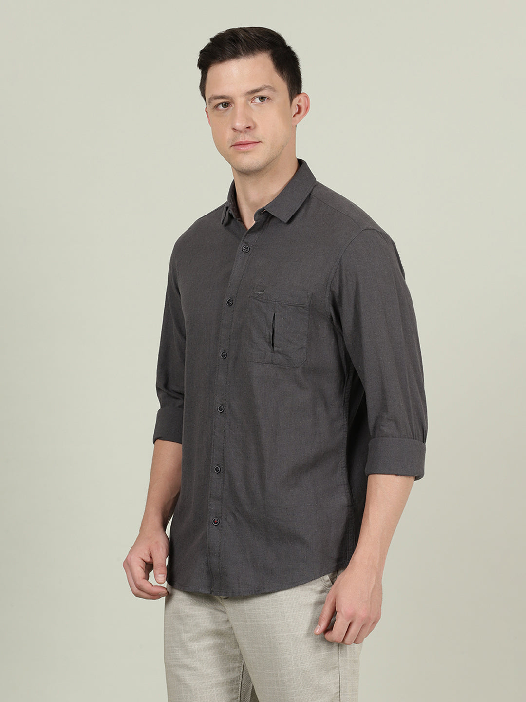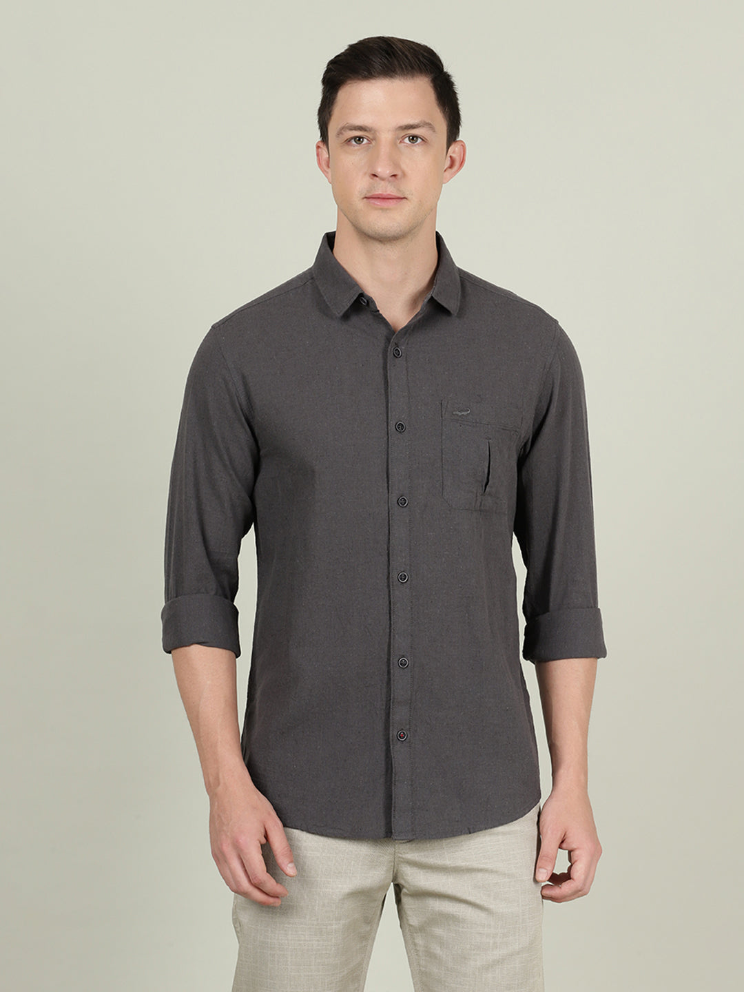 Khaki Brown Solid Full Sleeve 100% Cotton Shirt