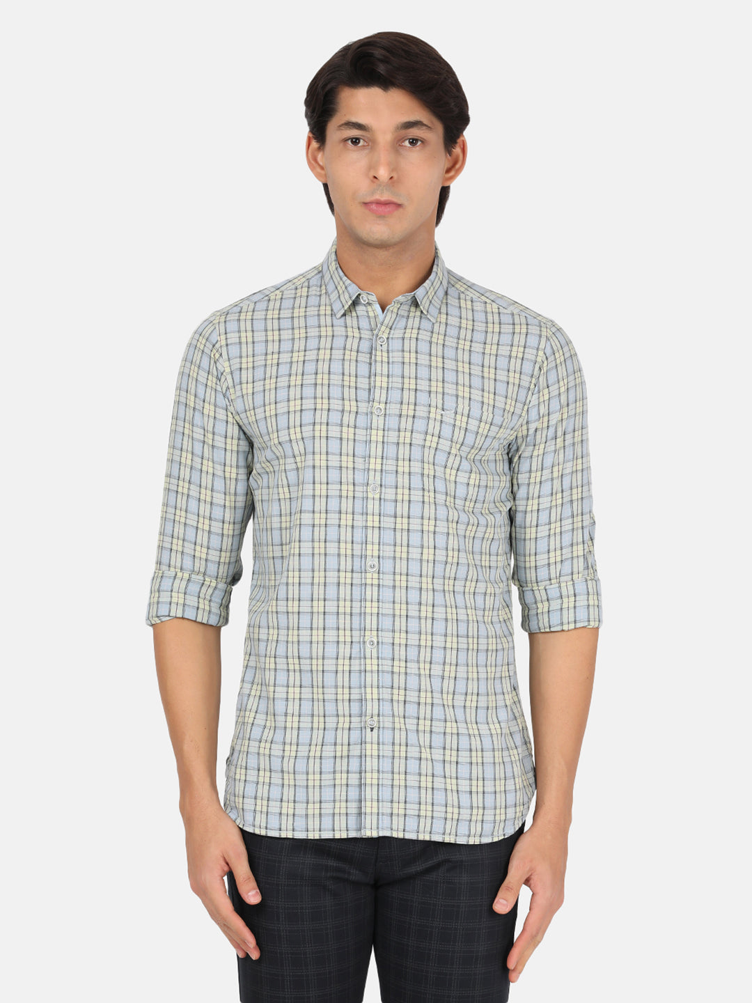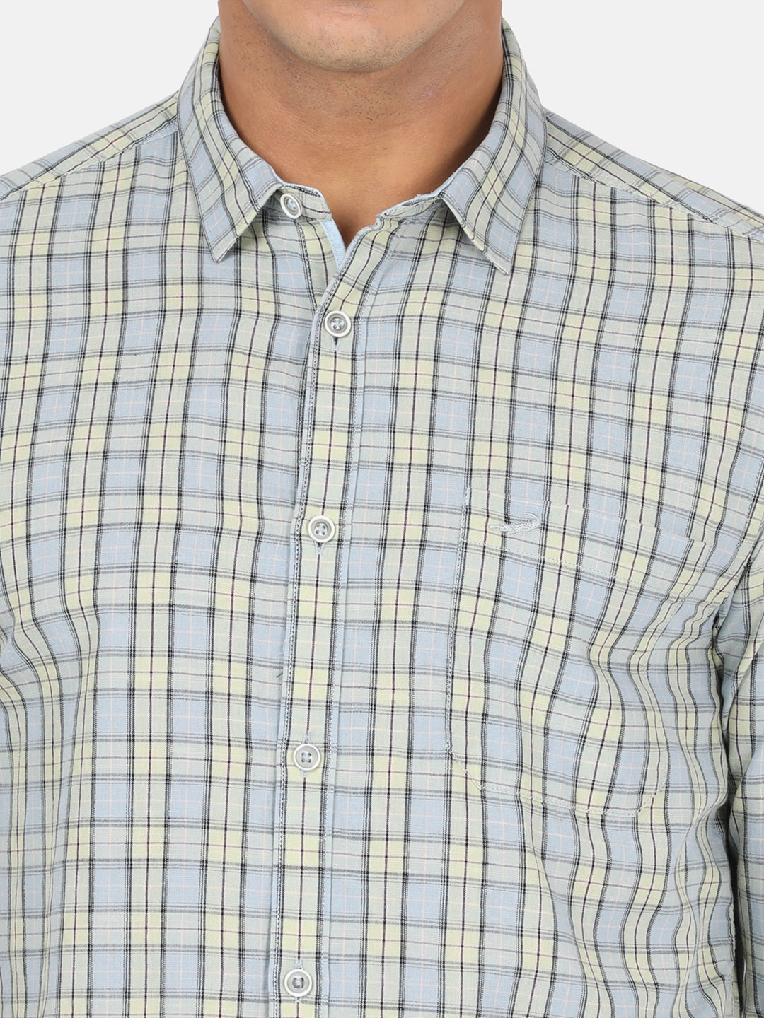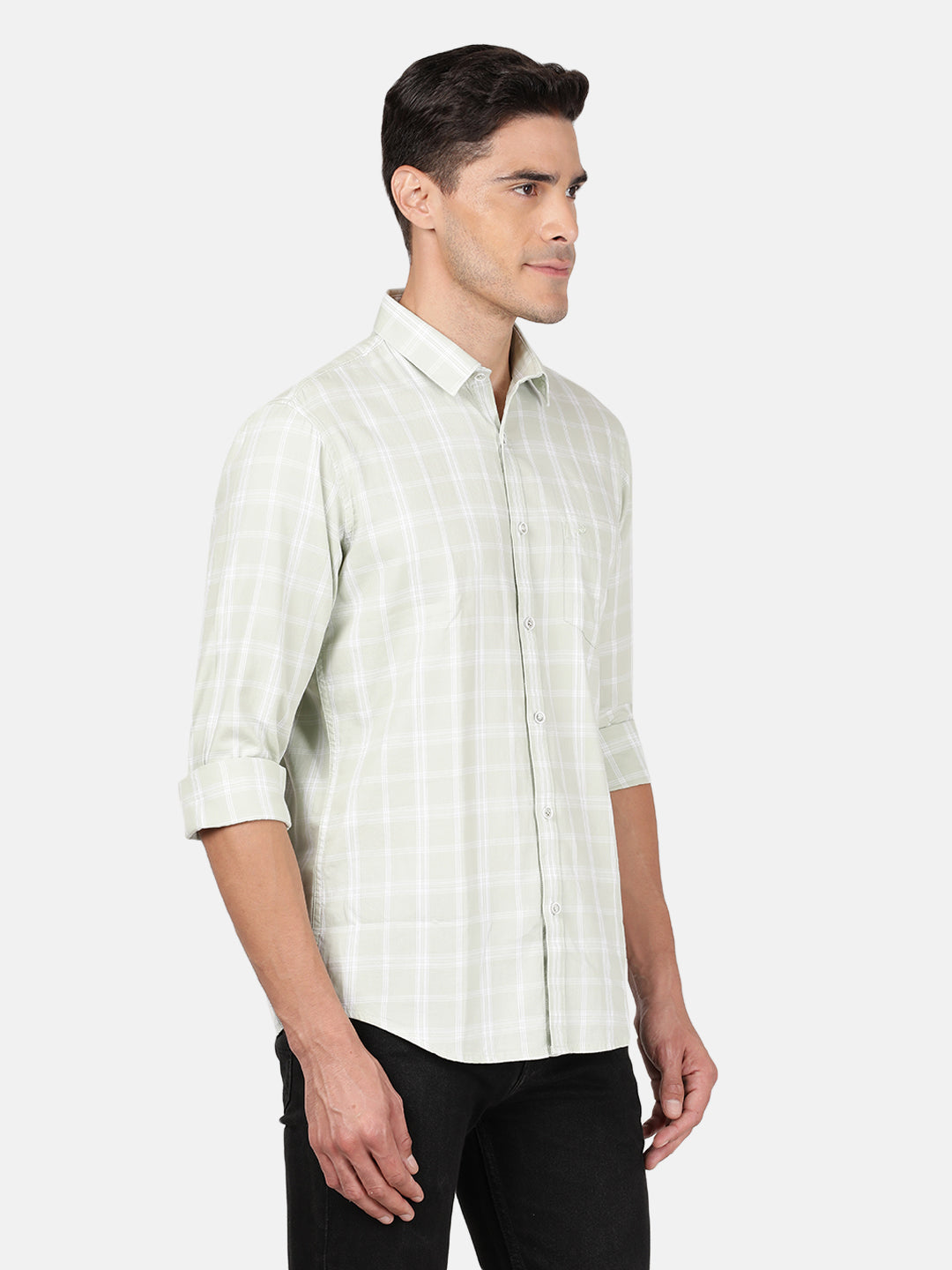 Light Green Checked Full Sleeve 100% Cotton Shirt