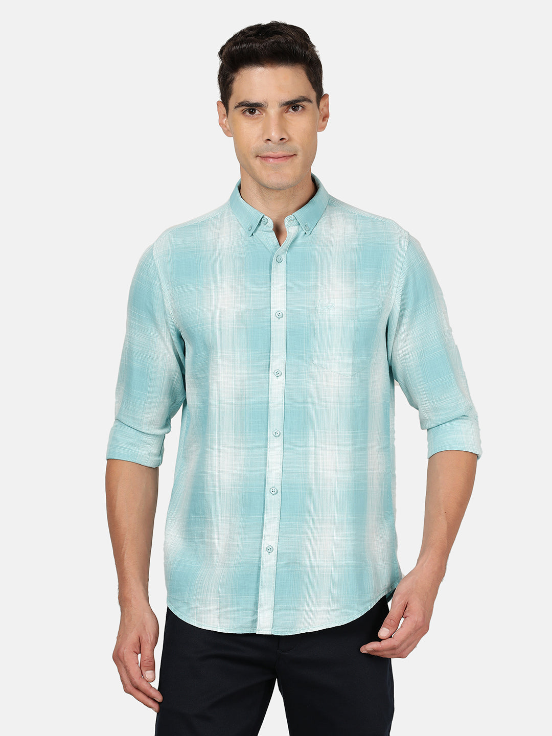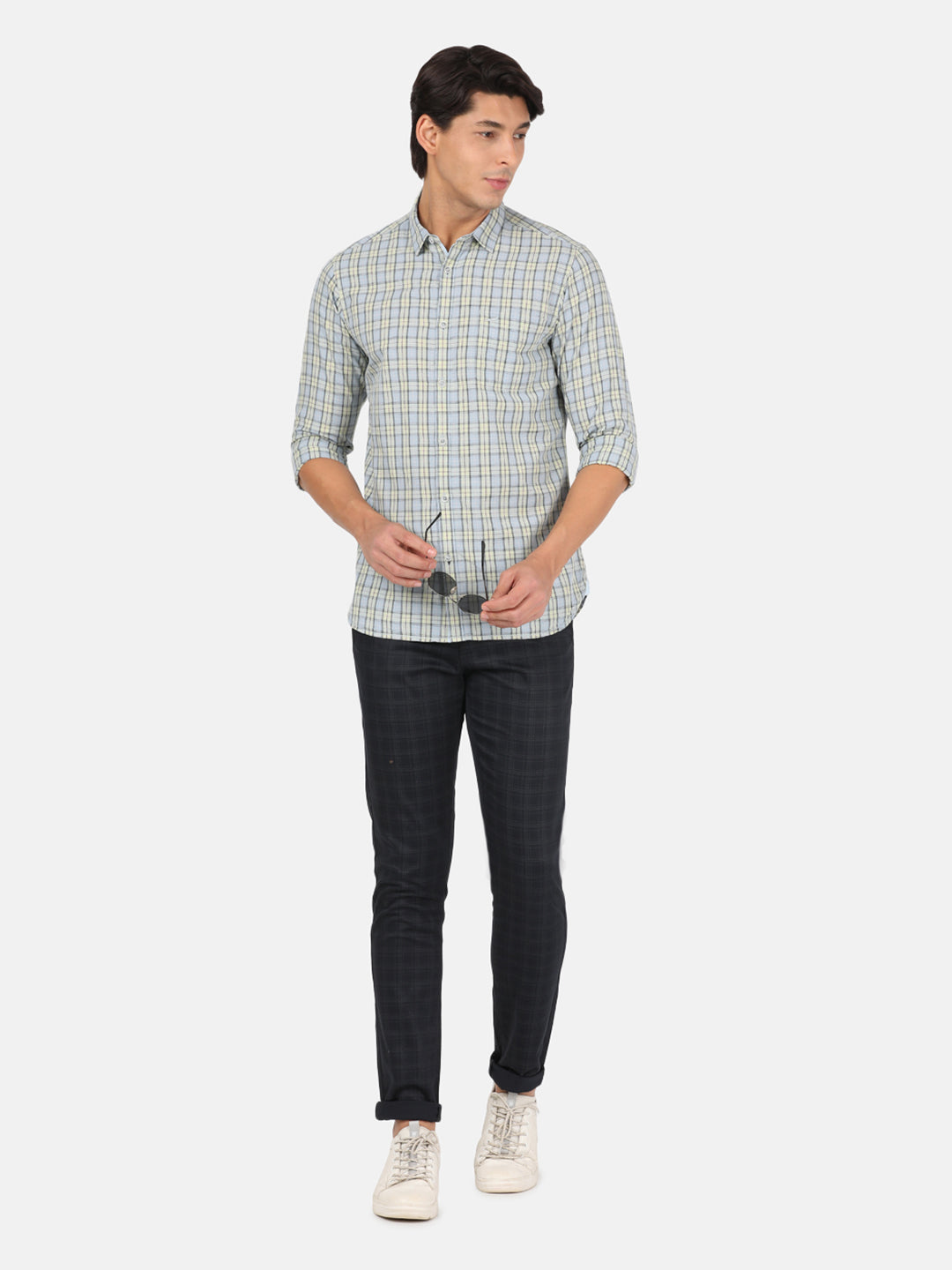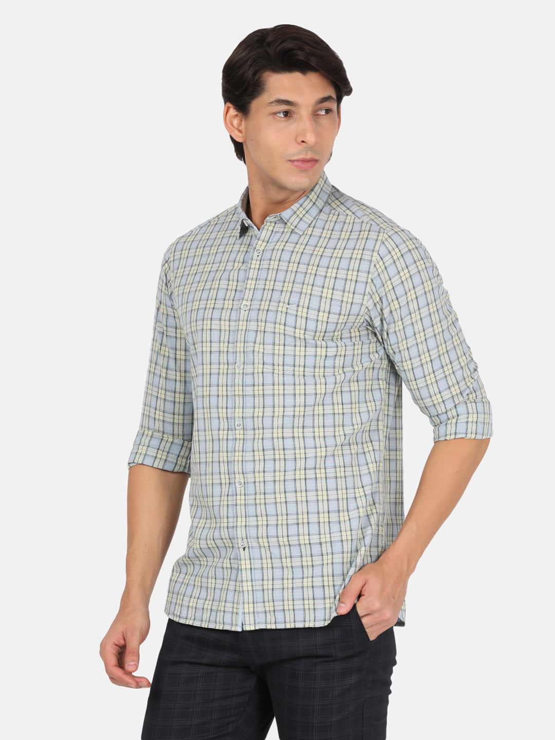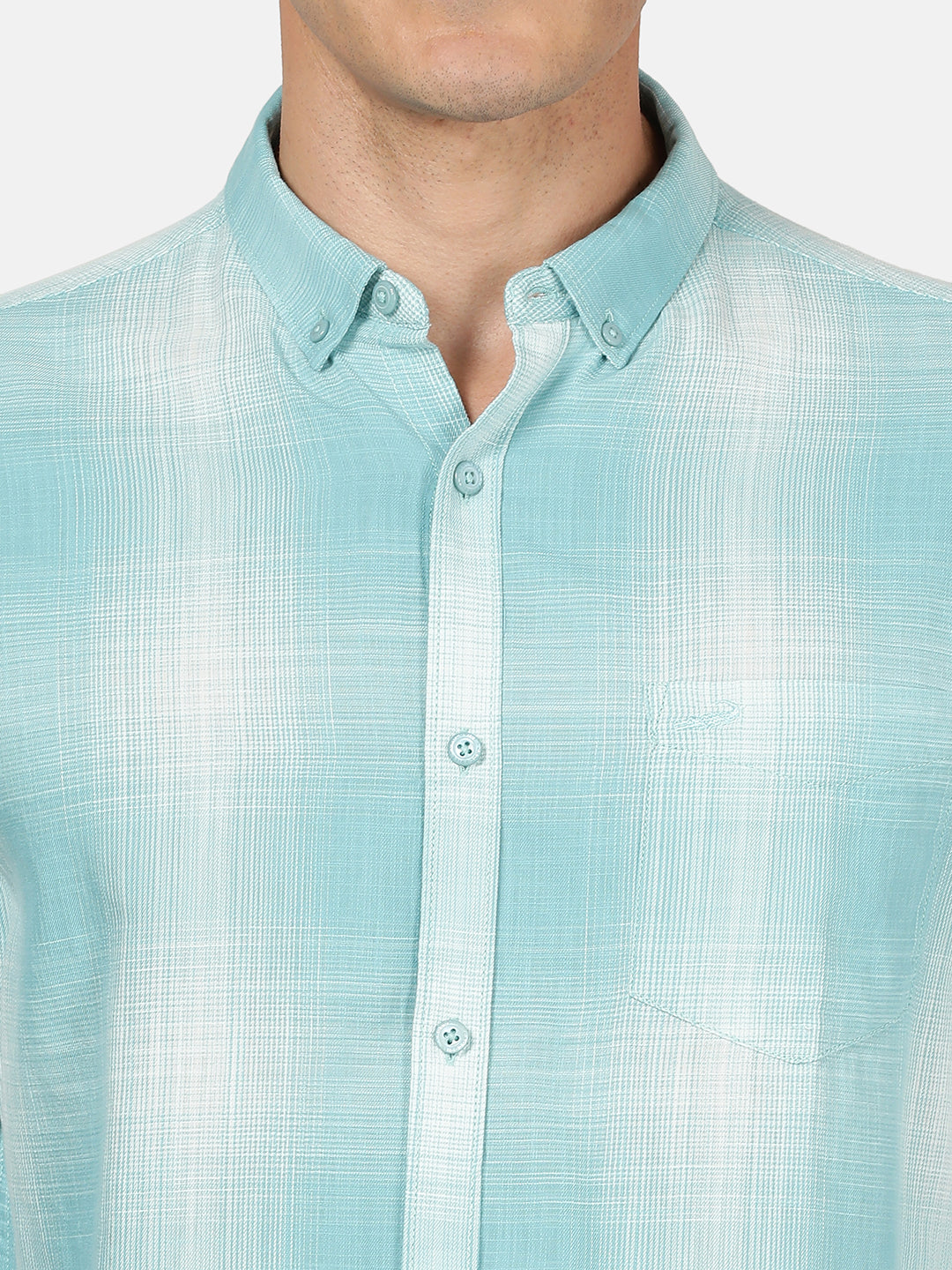Light Green Checked Full Sleeve 100% Cotton Shirt