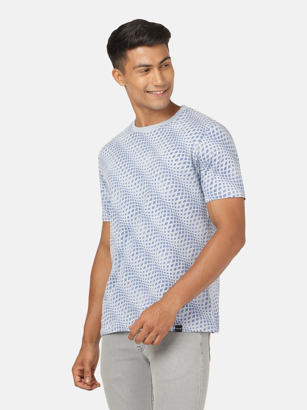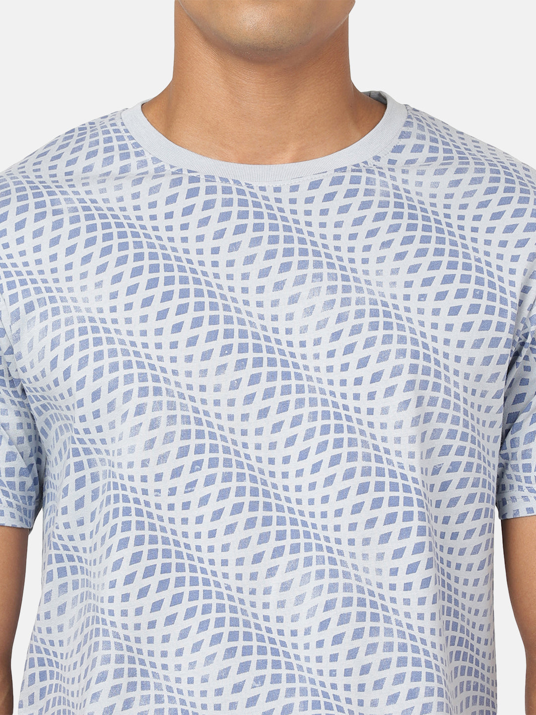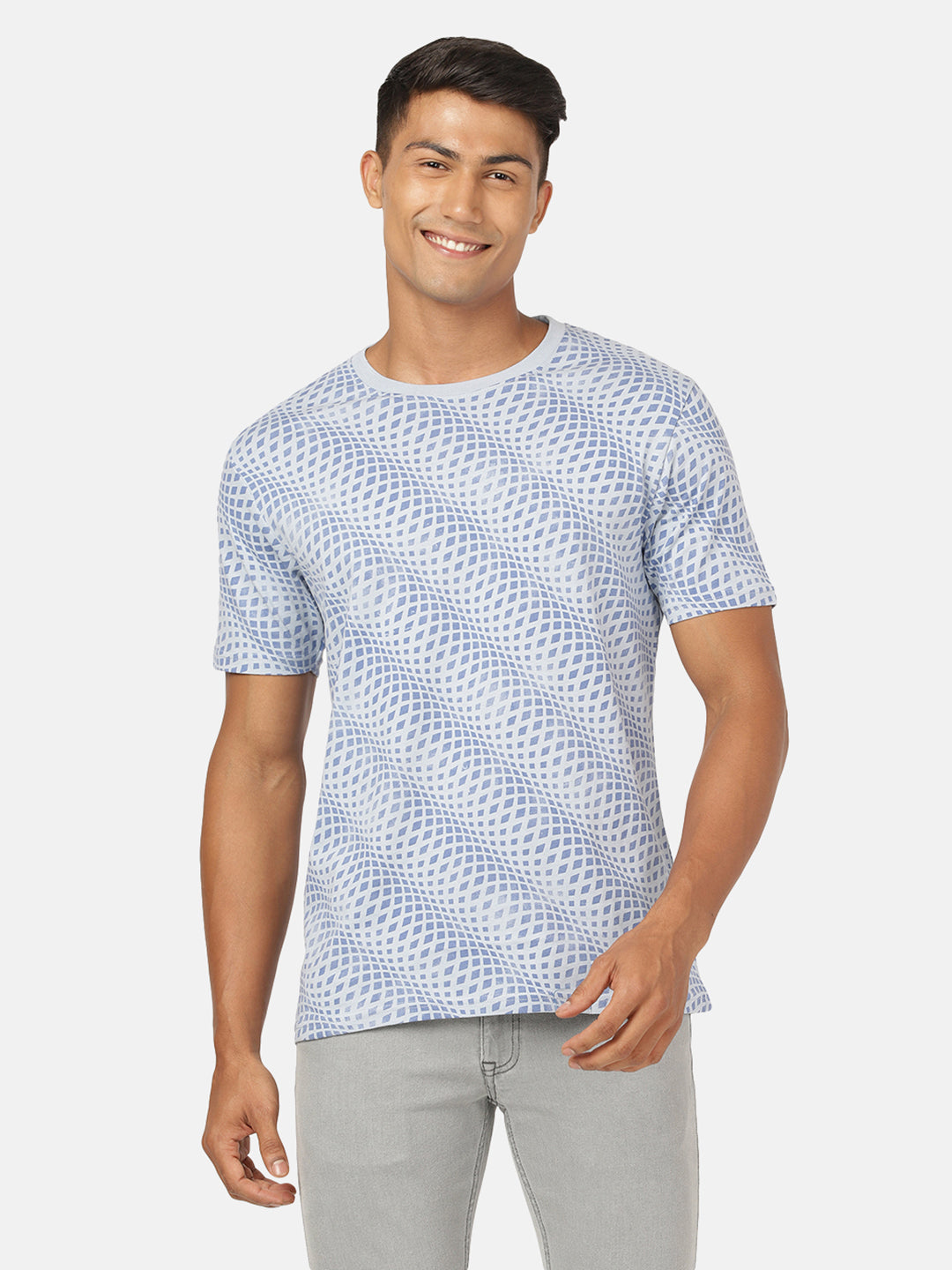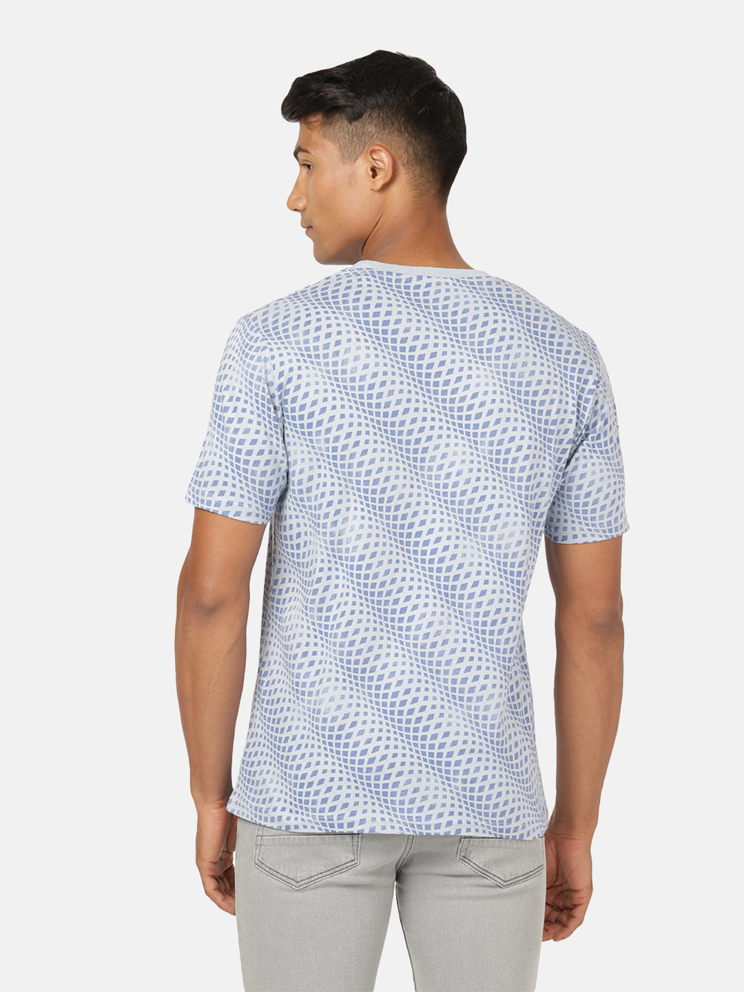 Light Blue Printed Slim Fit T-Shirt