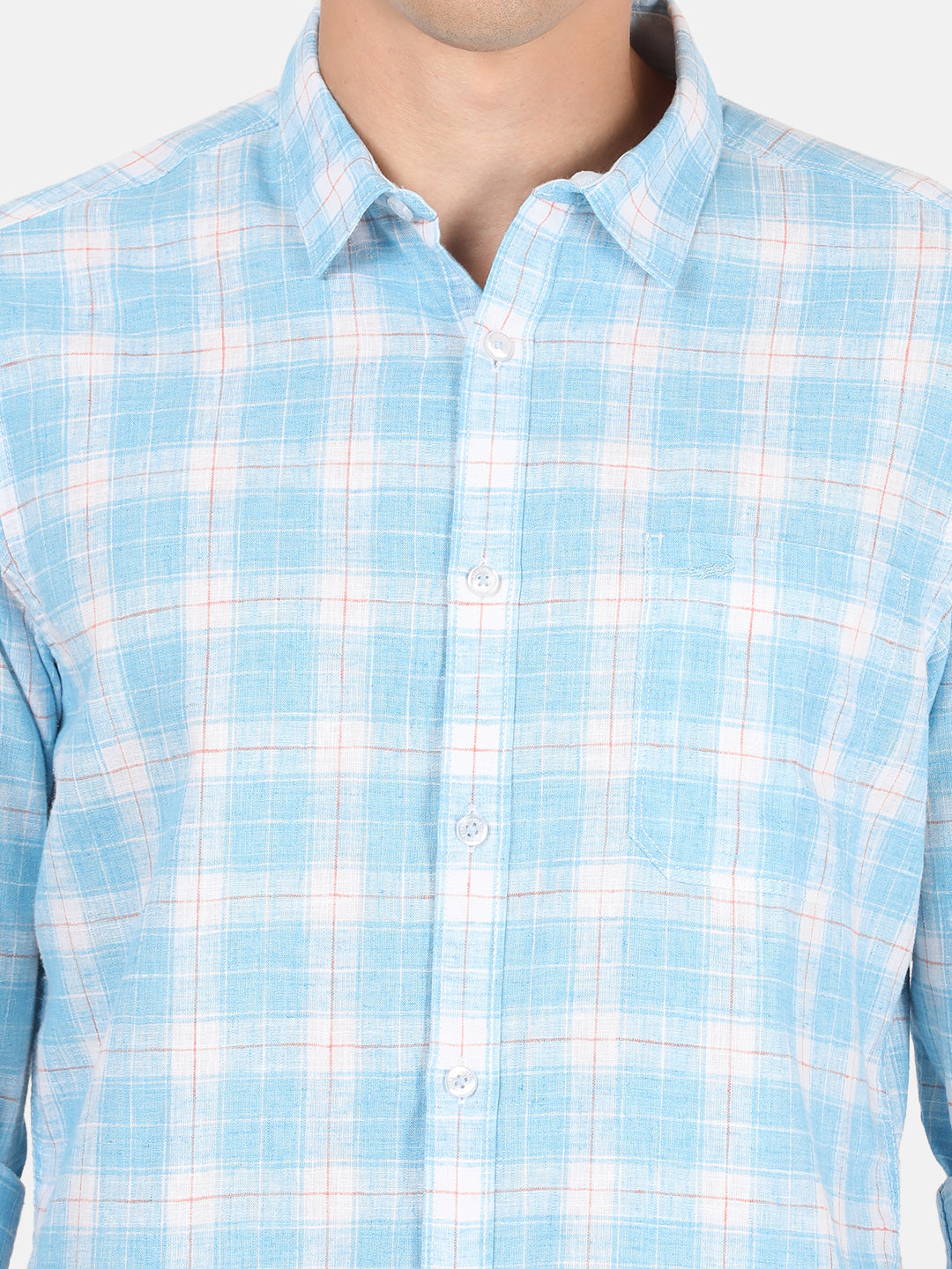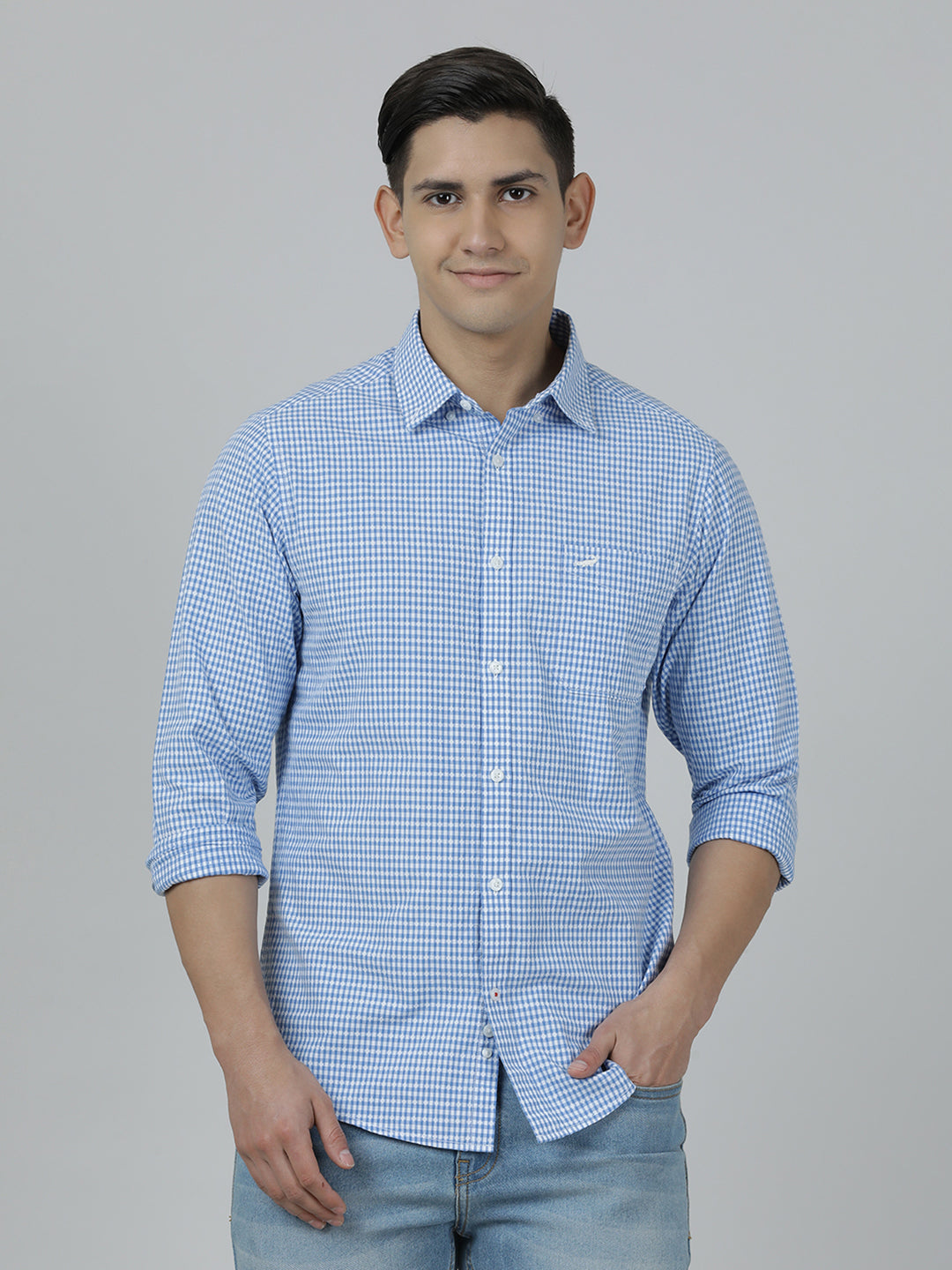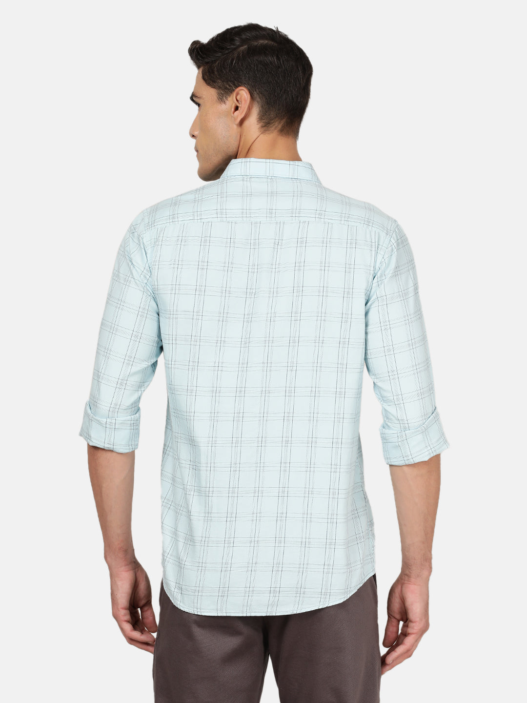 Light Blue Checked Full Sleeve 100% Cotton Shirt