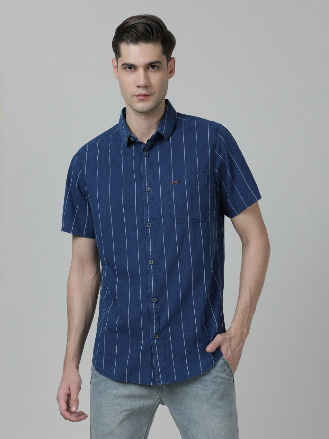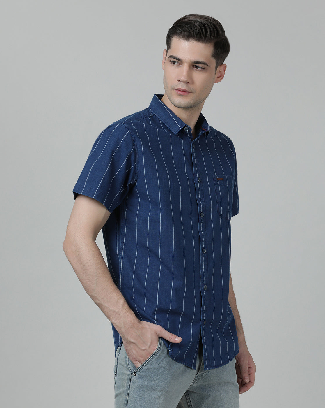 Indigo Navy Striped Half Sleeve 100% Cotton Shirt