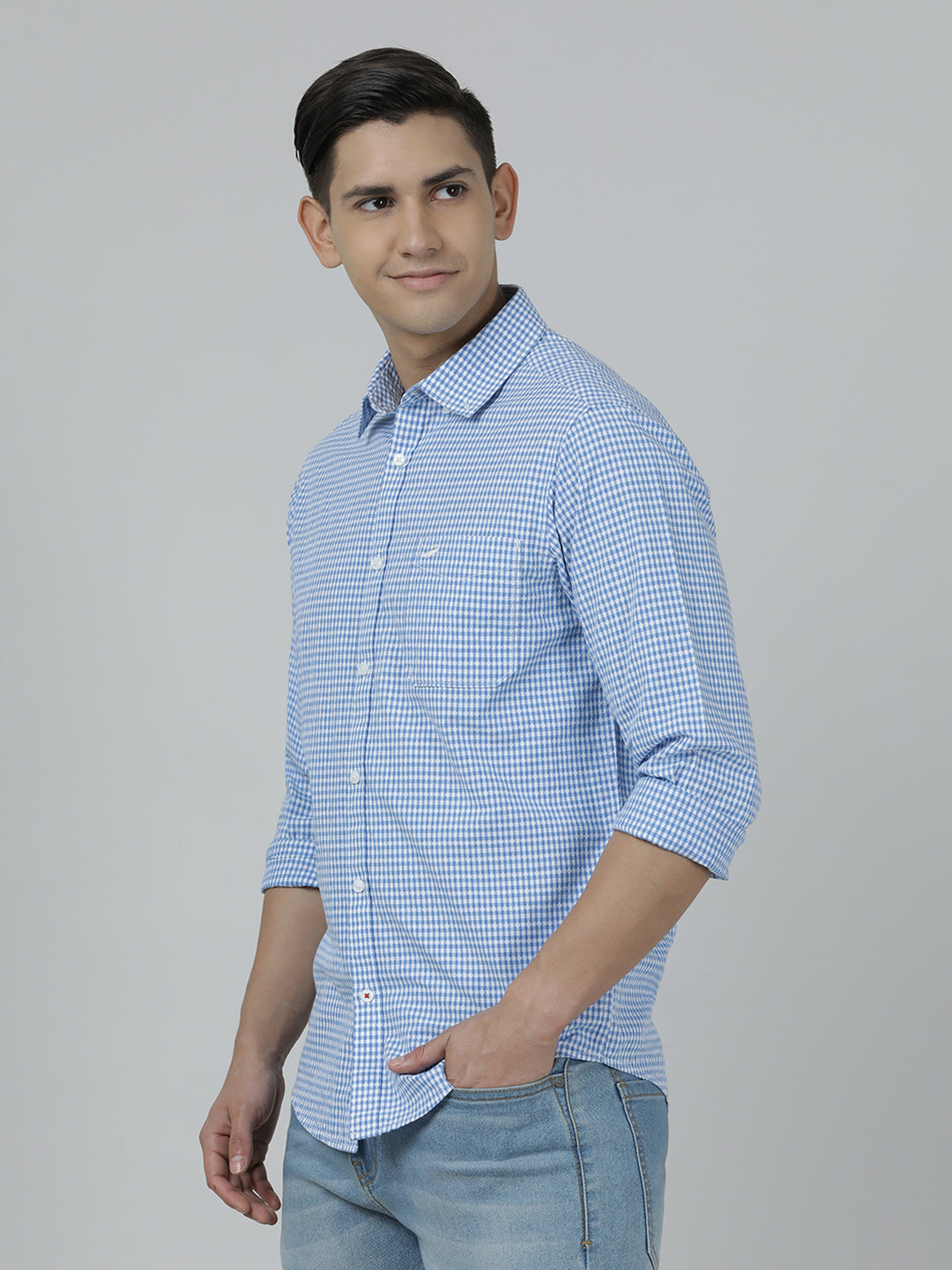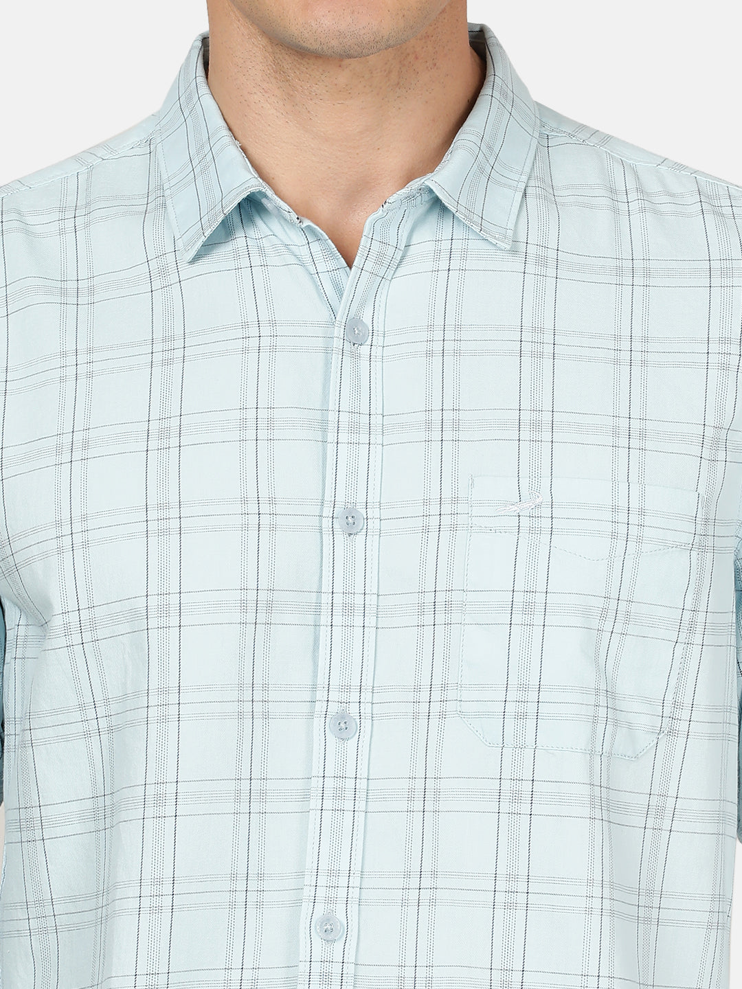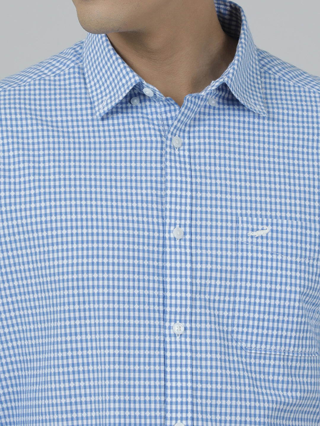 Light Blue Checked Casual Full Sleeve 100% Cotton Shirt