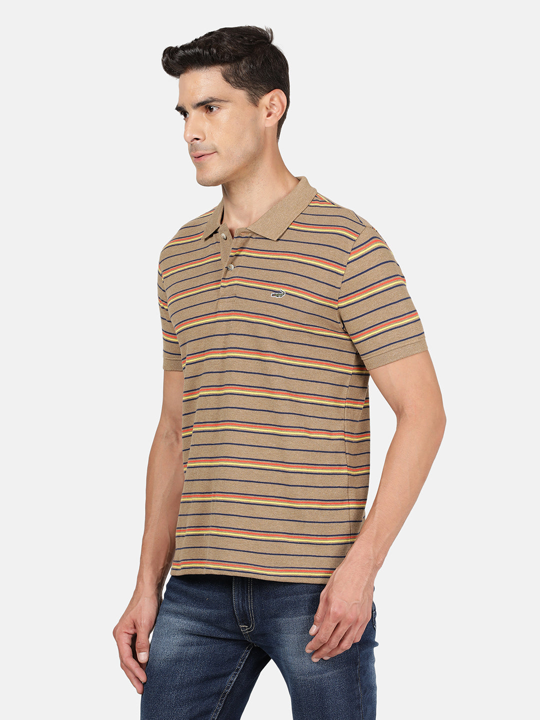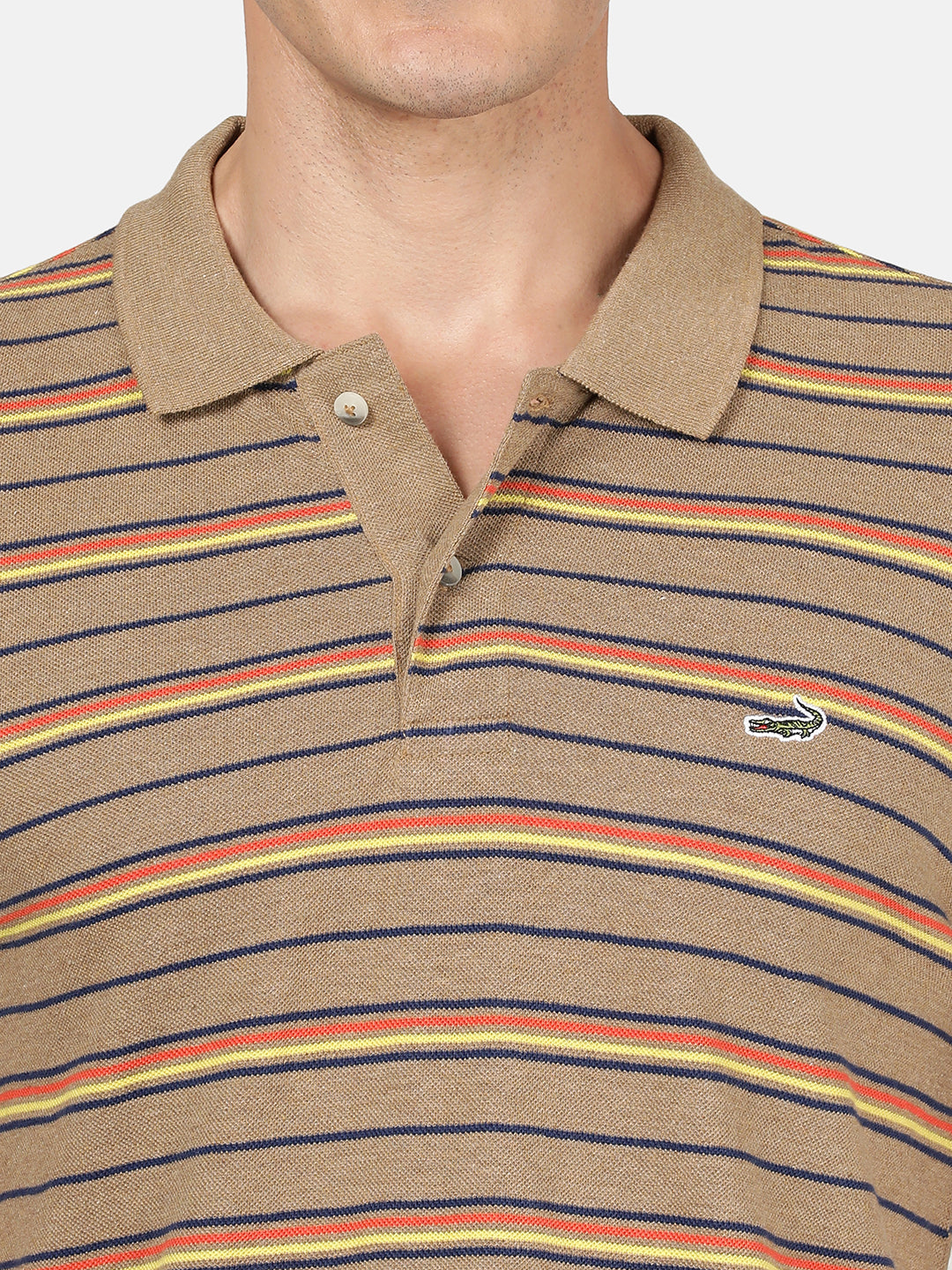 Light Brown Striped Polo T-Shirt
