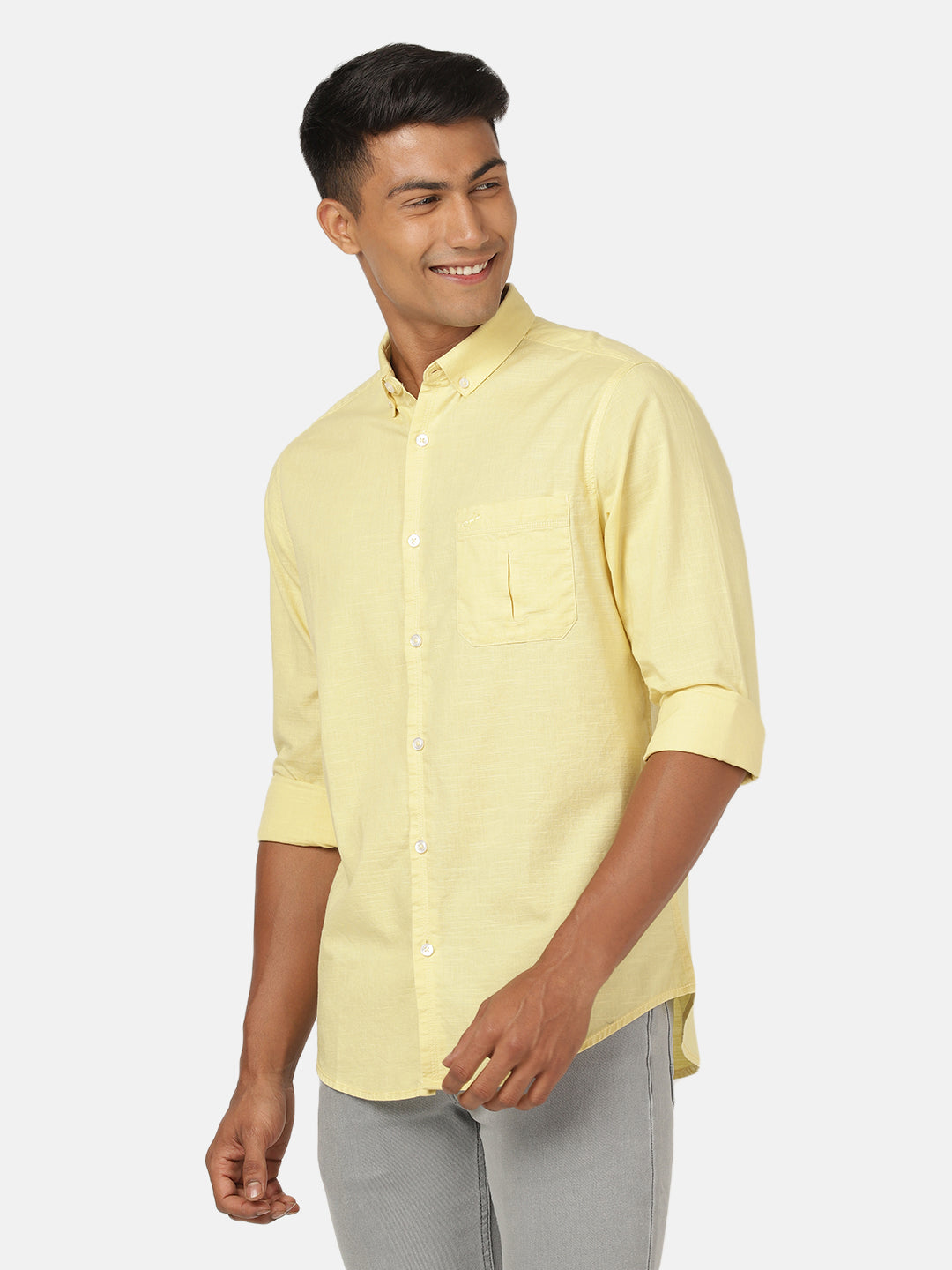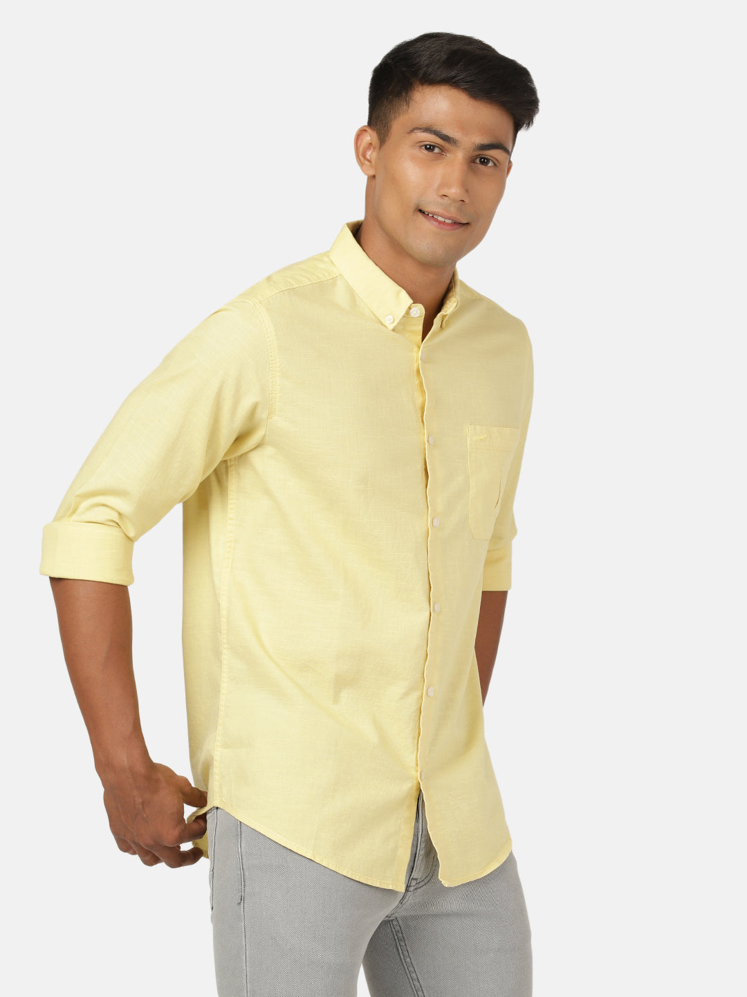 Lemon Yellow Solid Full Sleeve 100% Cotton Shirt