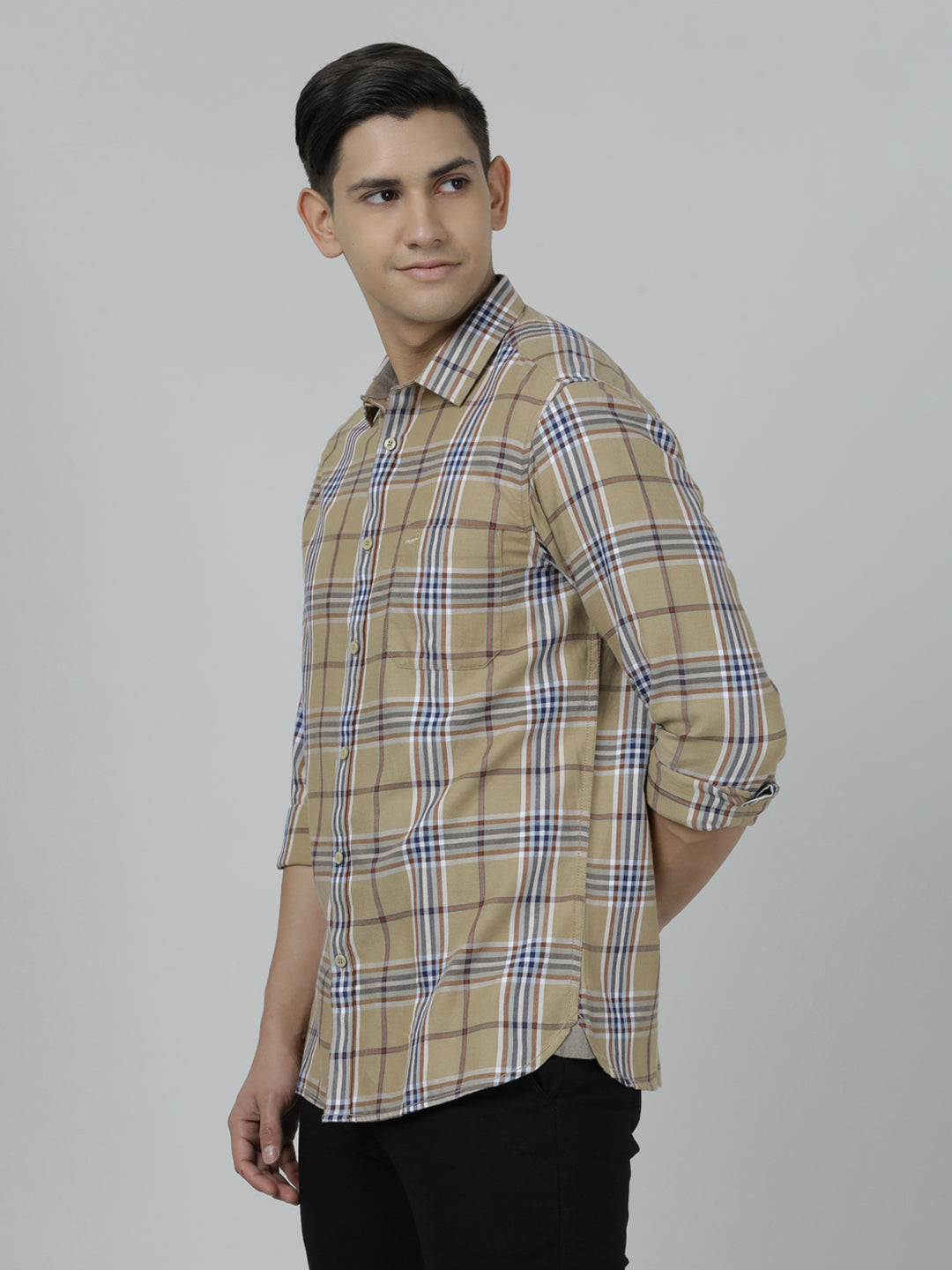 Khaki Brown Checked Full Sleeve Casual Shirt