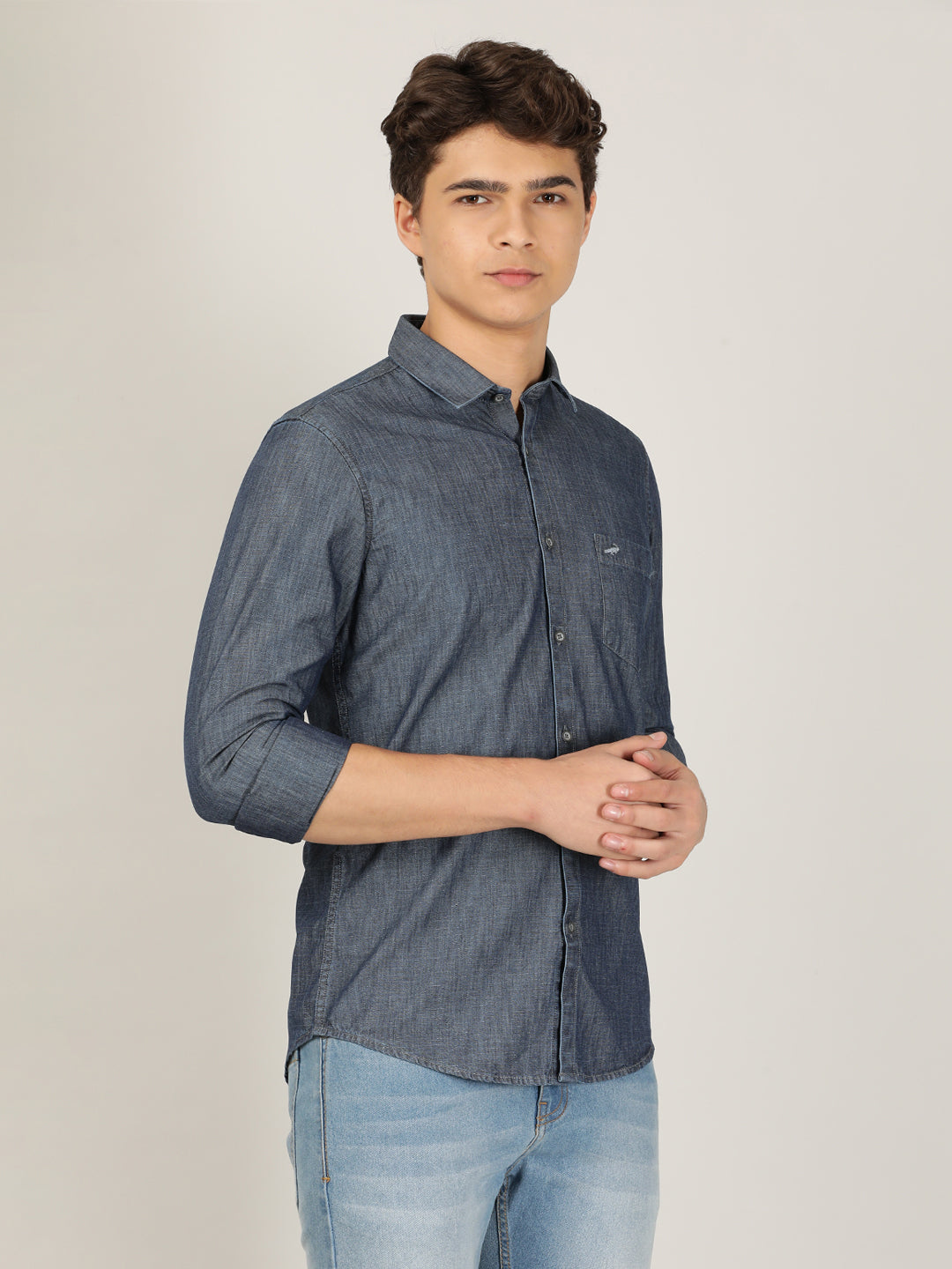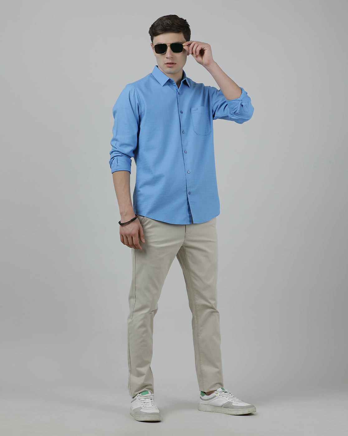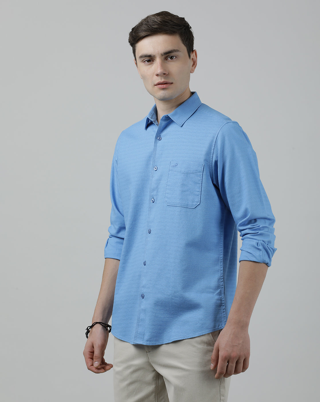 Light Blue Solid Full Sleeve 100% Cotton Casual Shirt