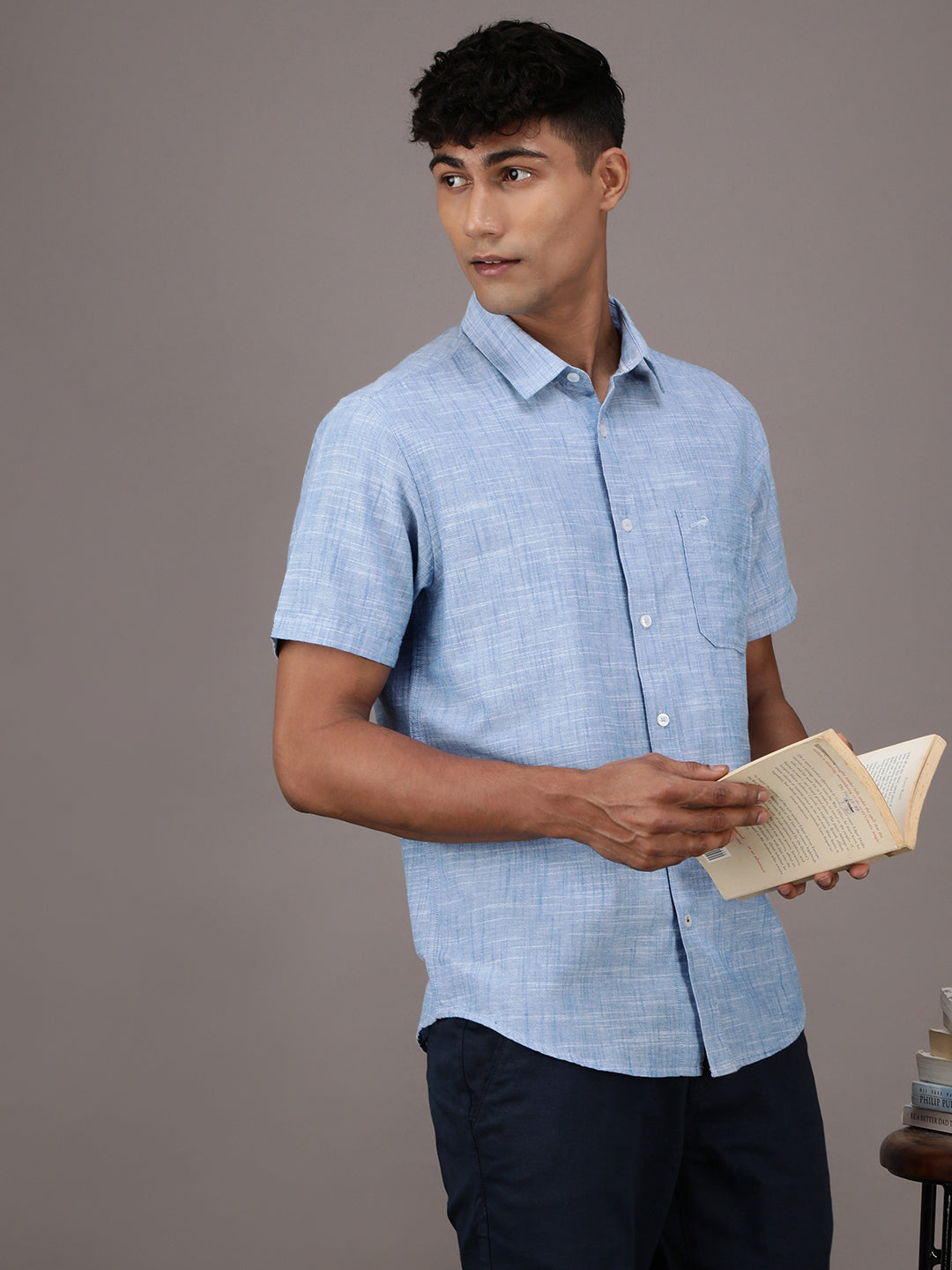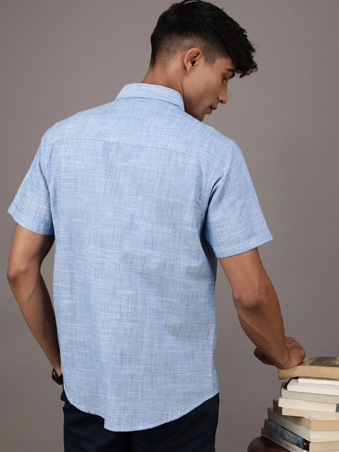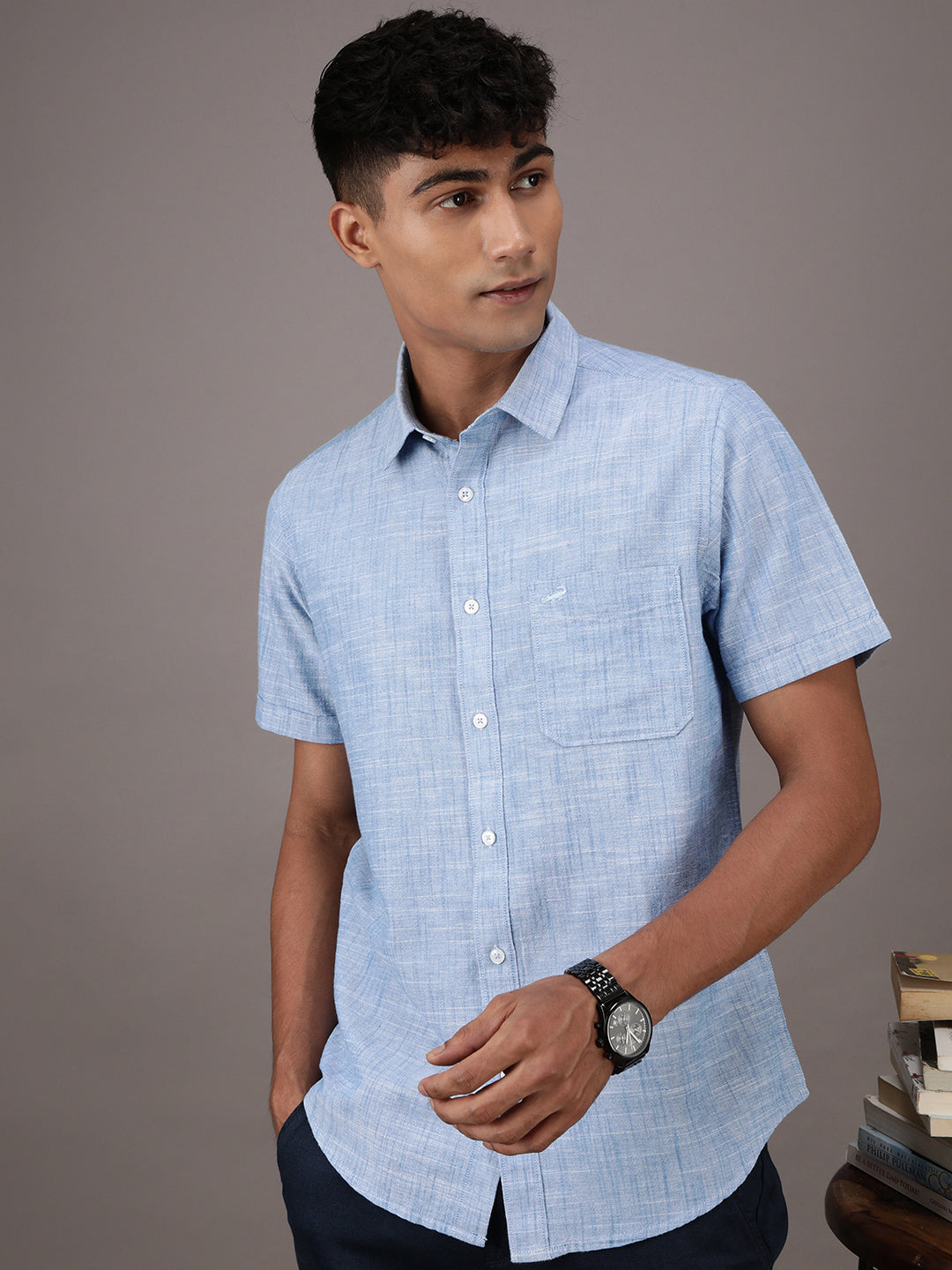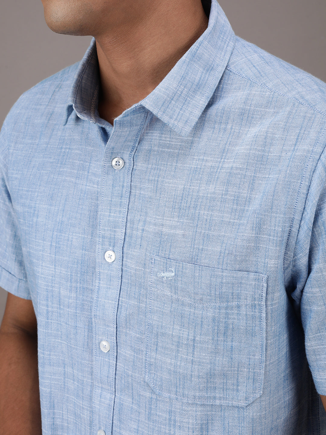 Light Blue Solid Half Sleeve 100% Cotton Shirt