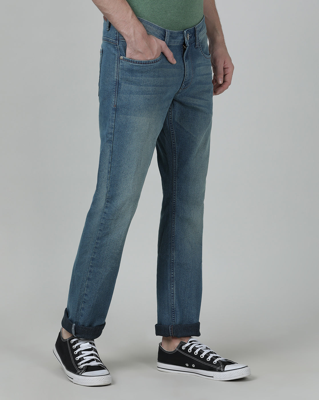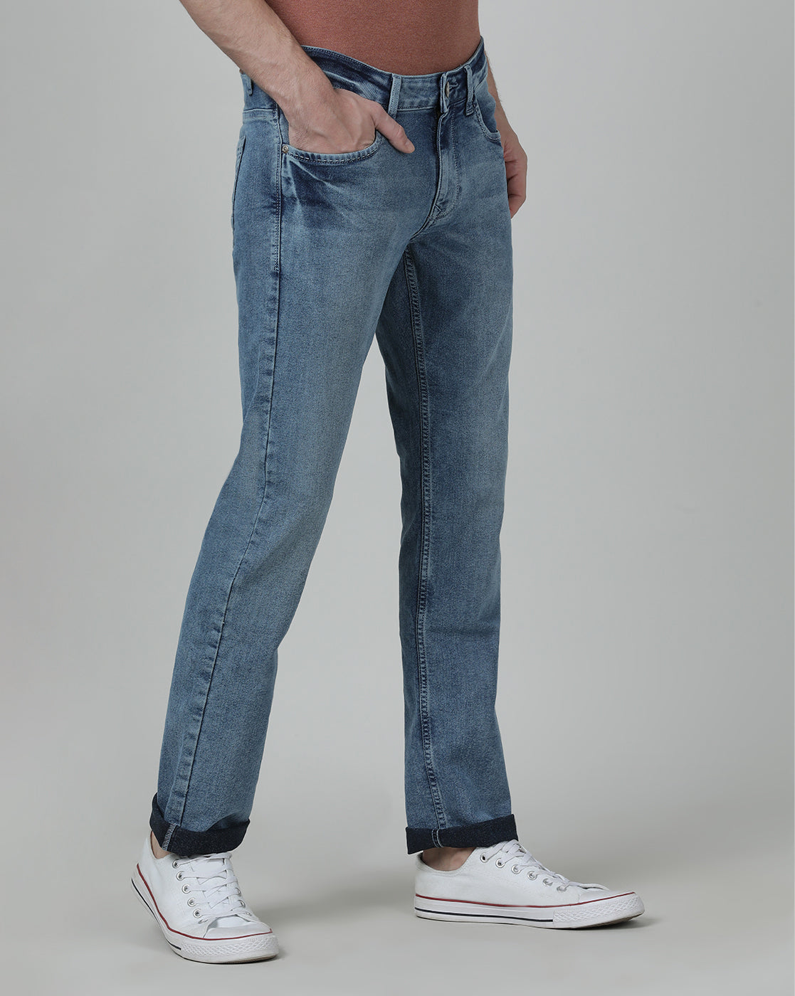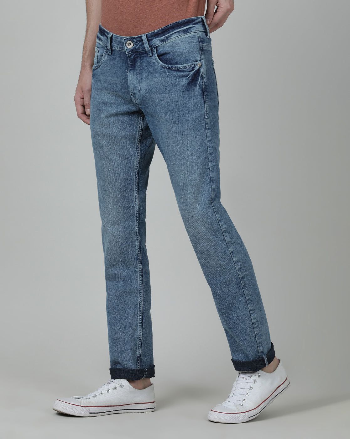 Light Blue Solid Mid Rise Slim Fit Jean